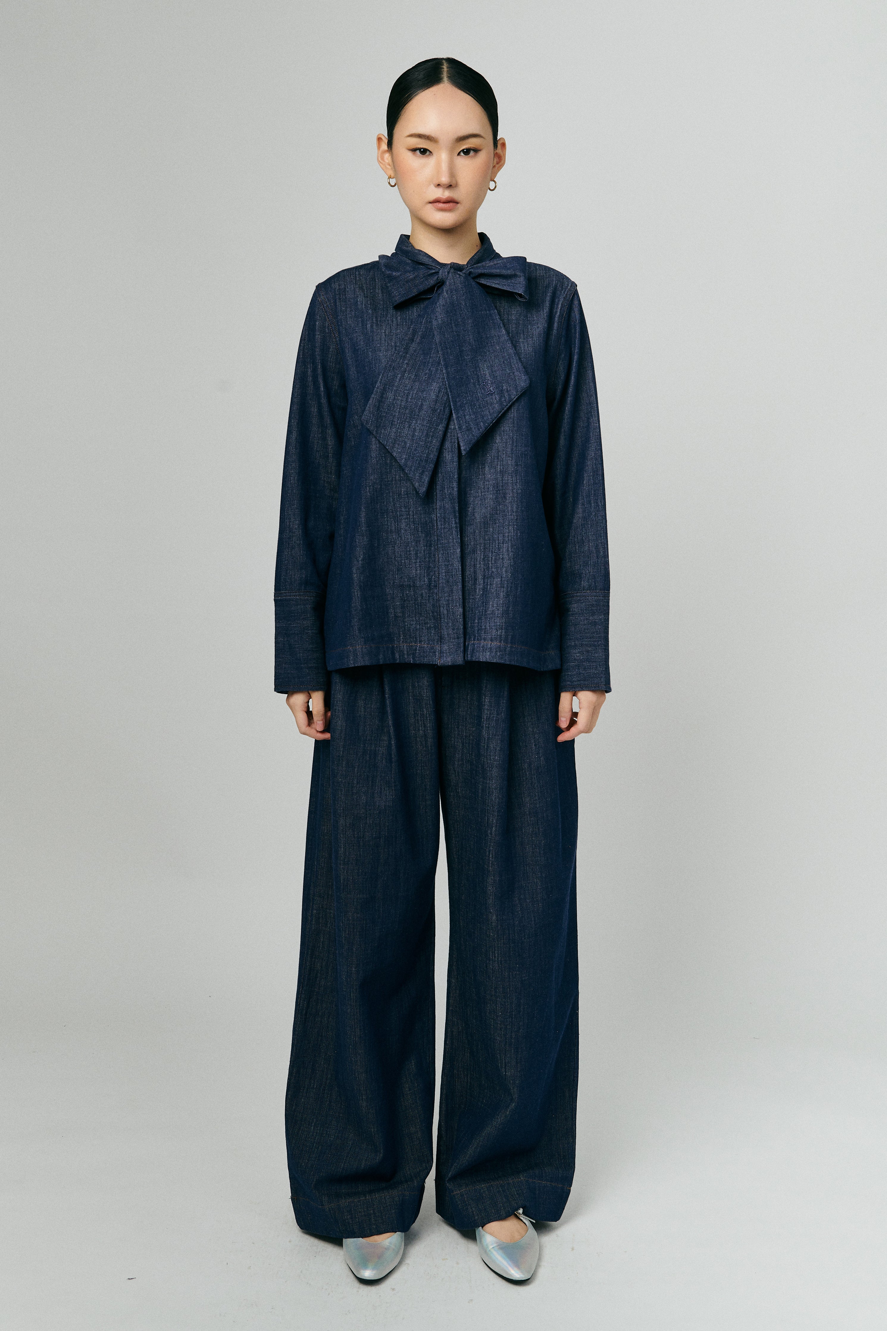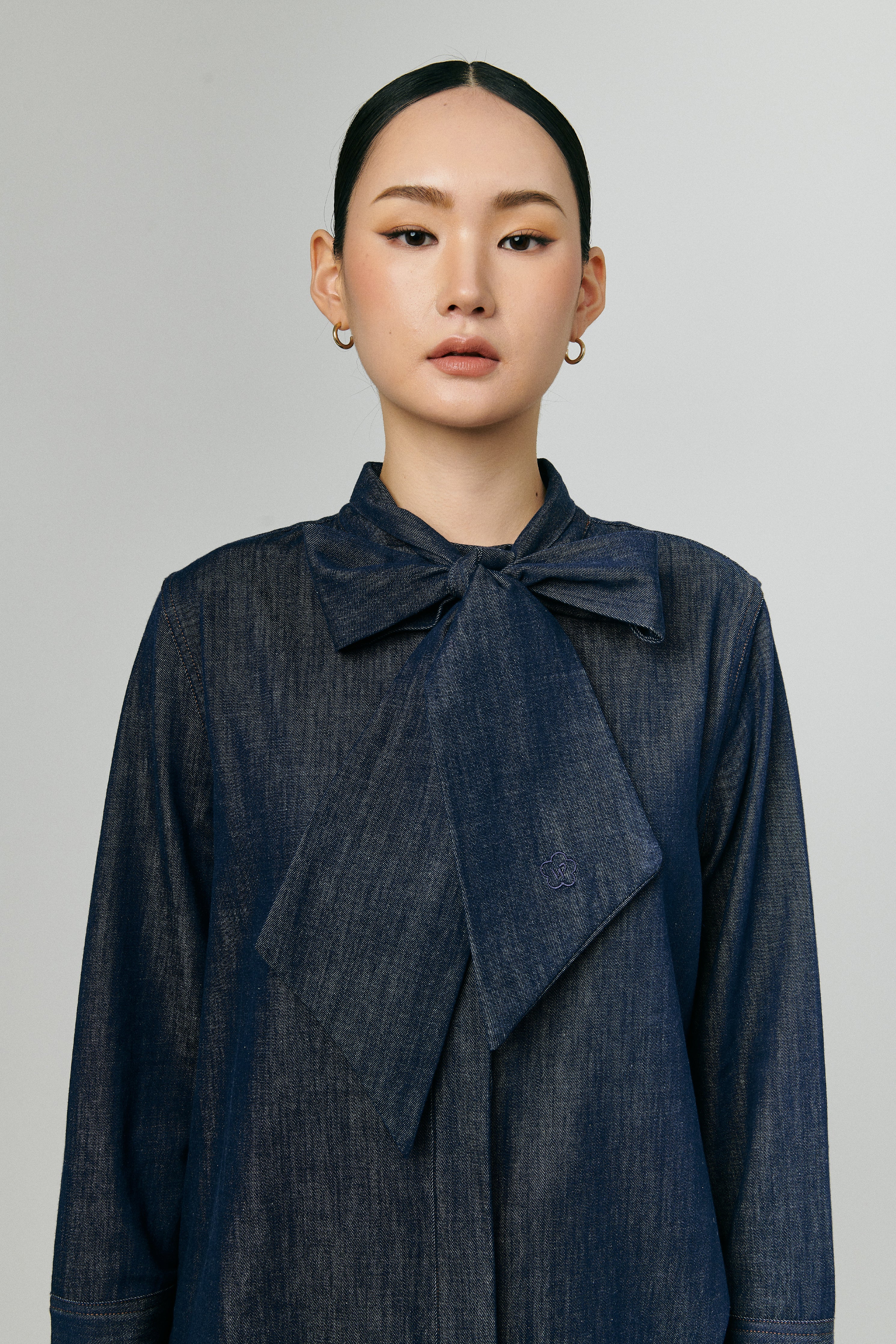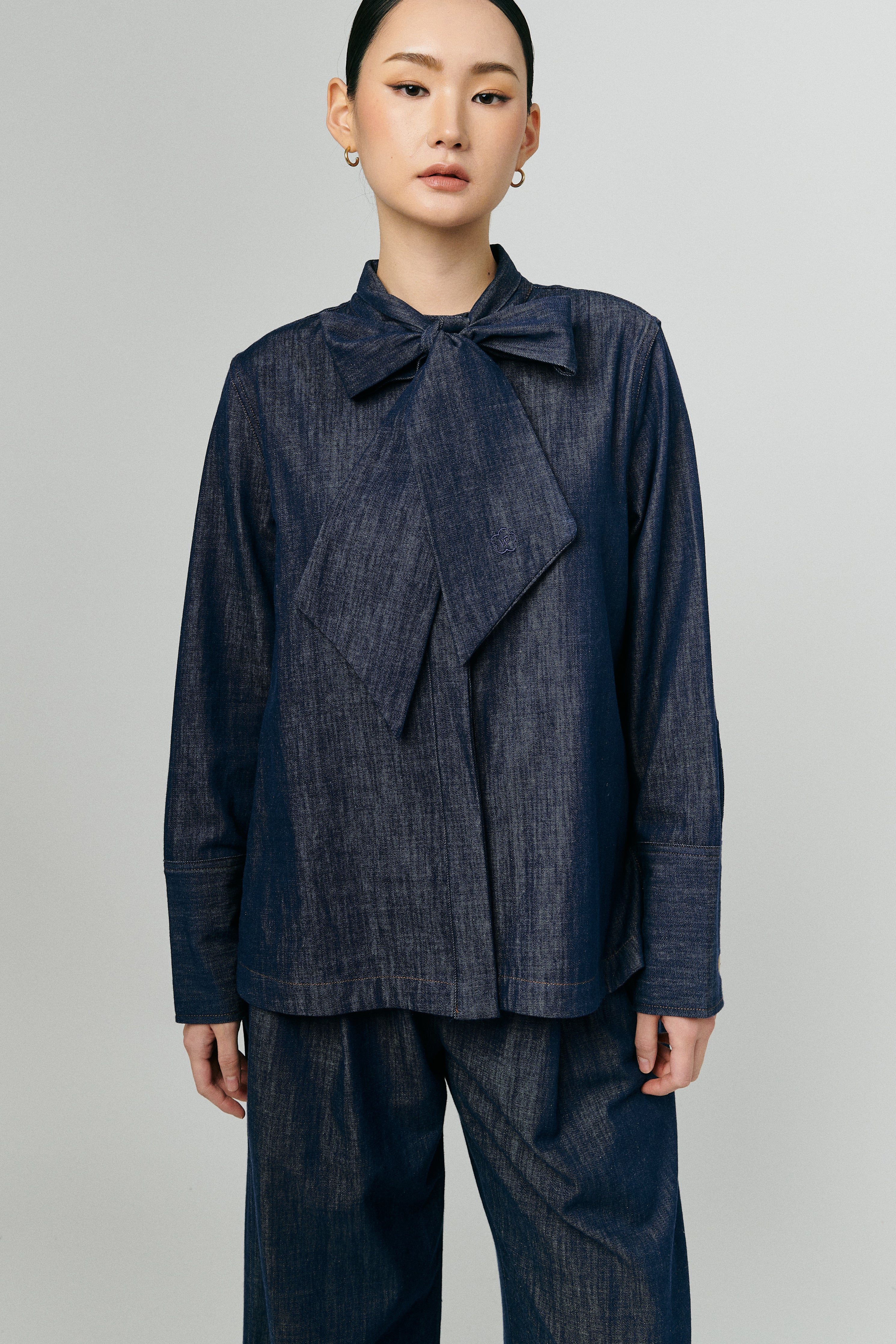 Atelier Denim Bow Shirt in Indigo