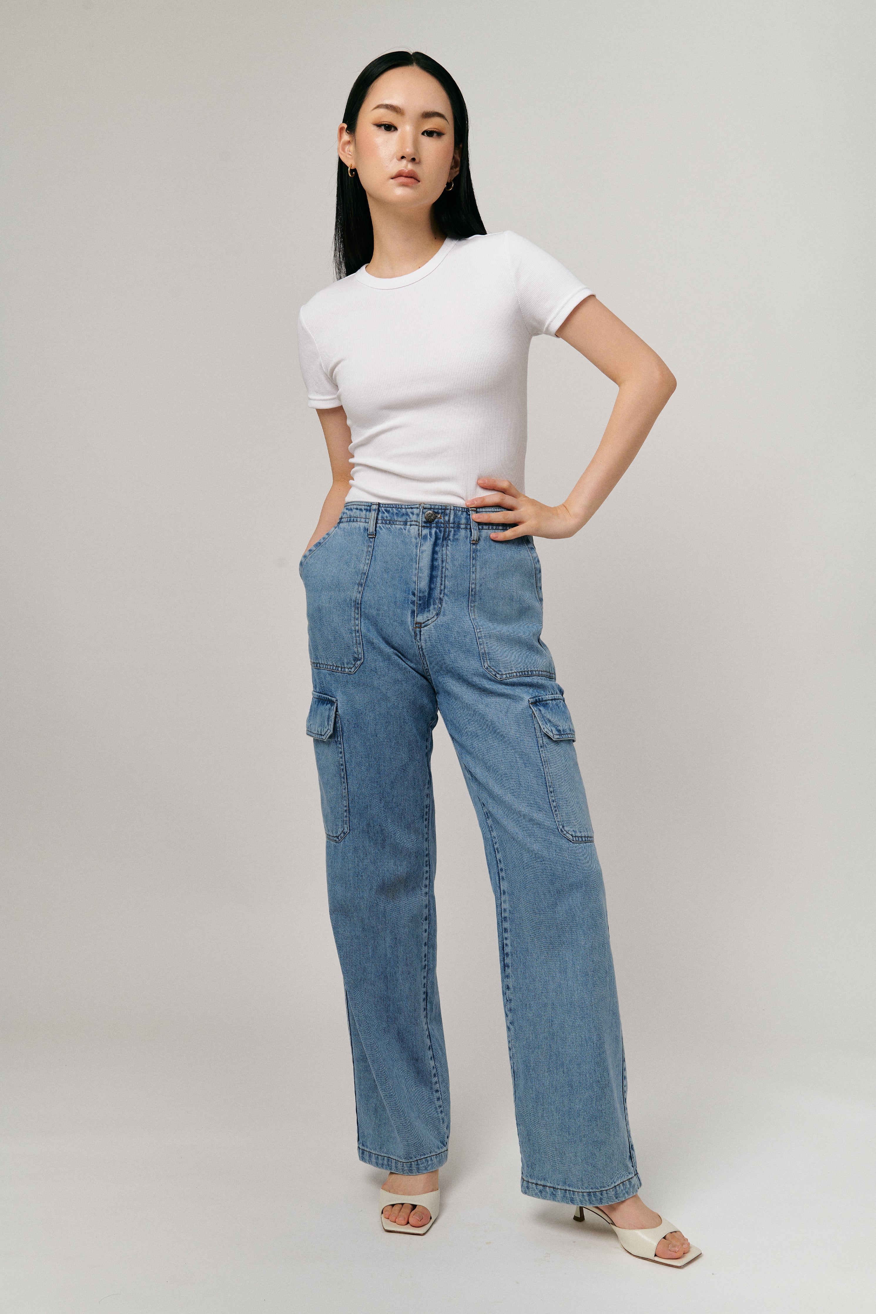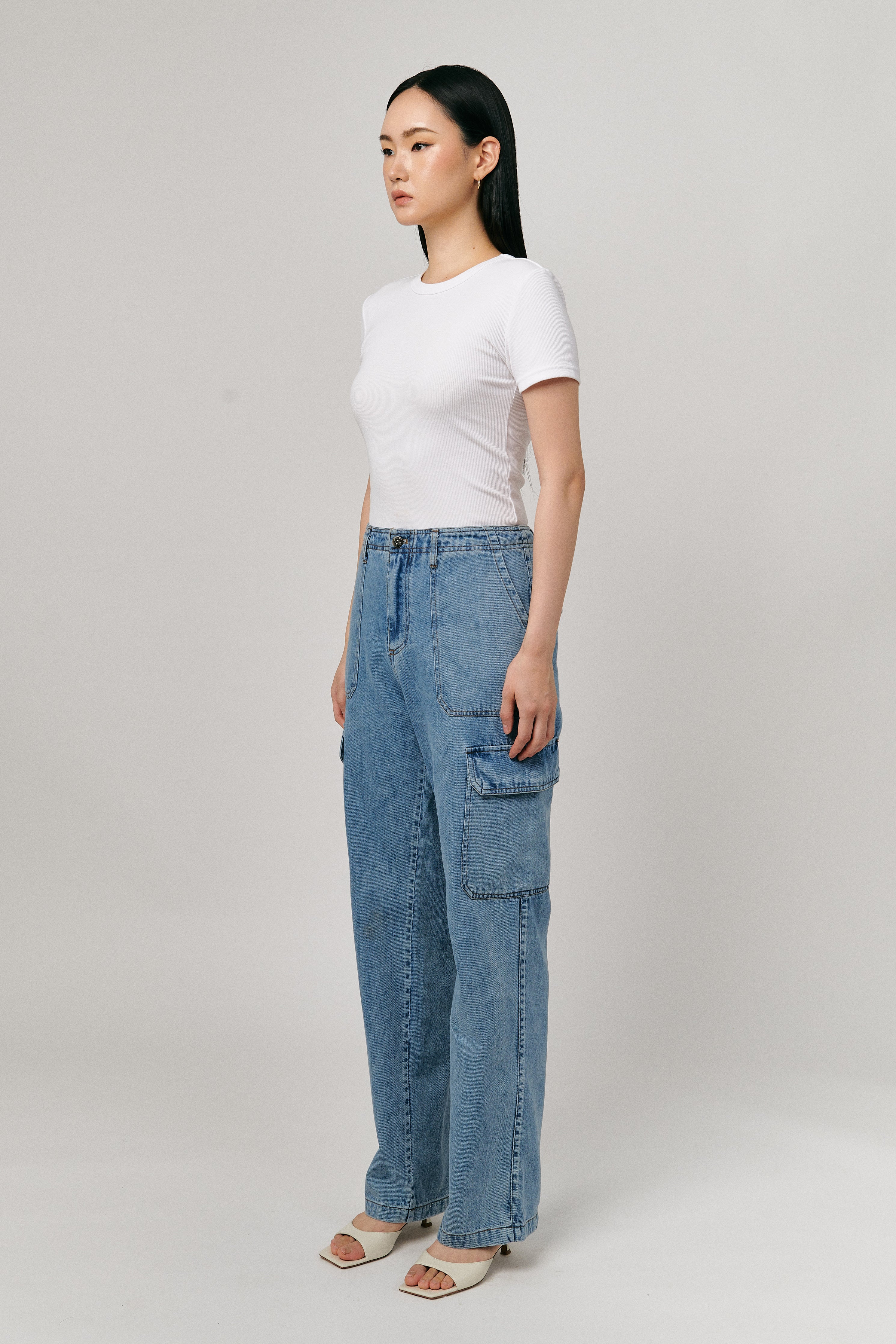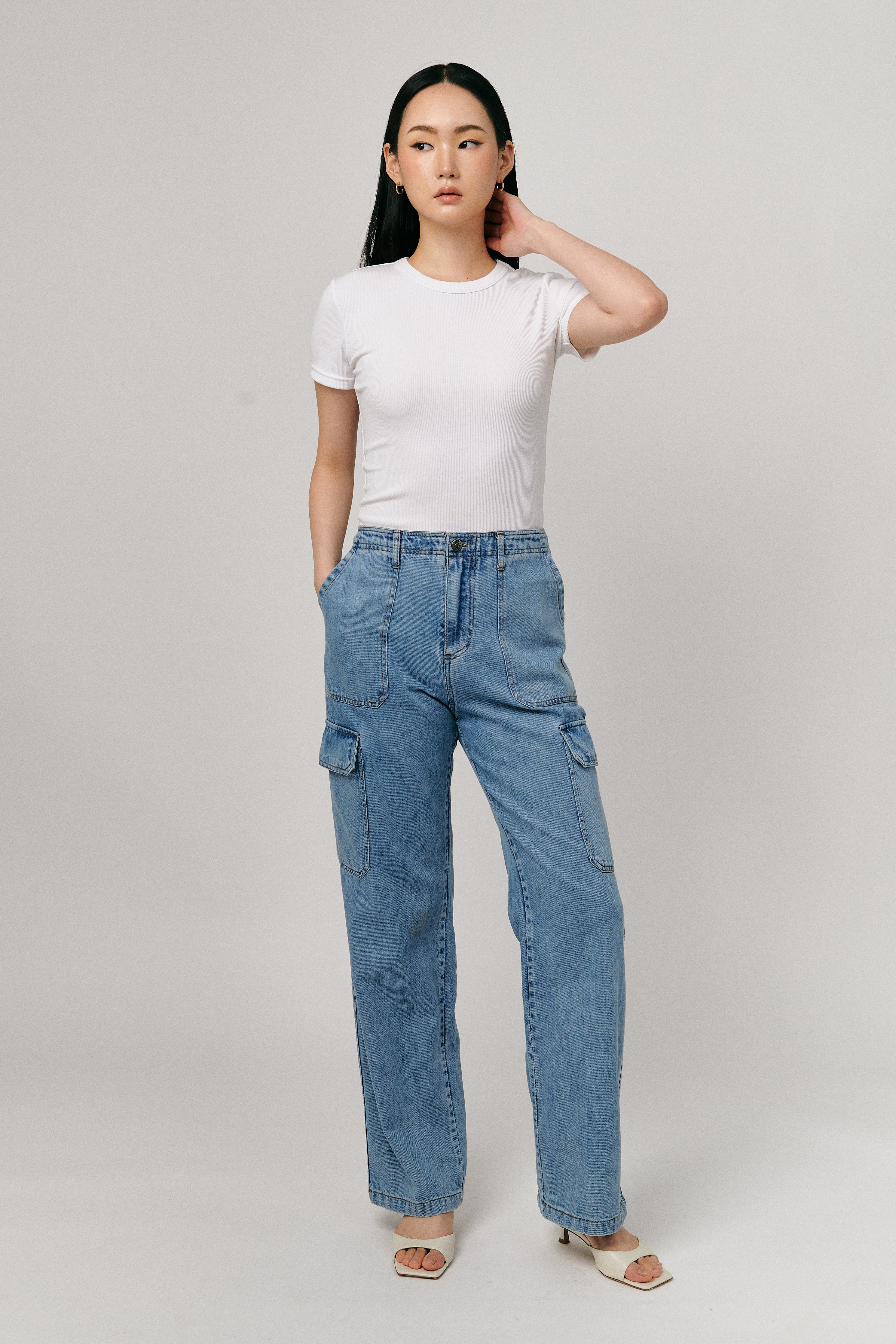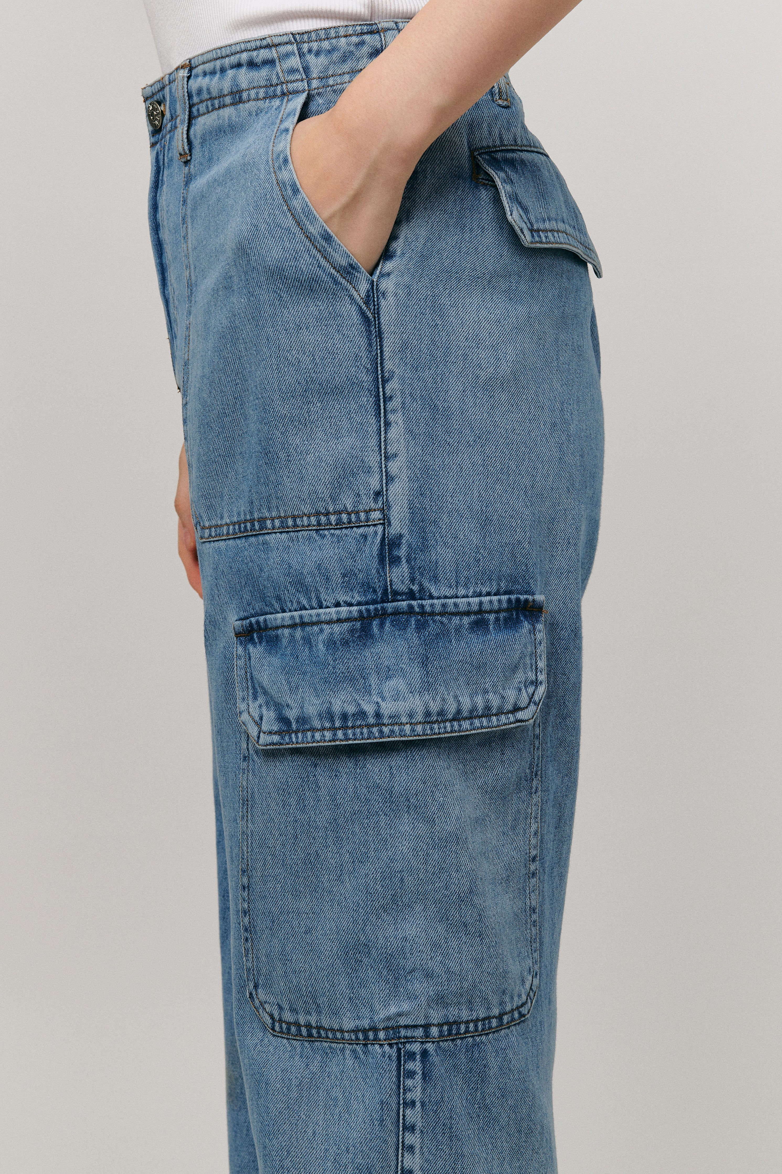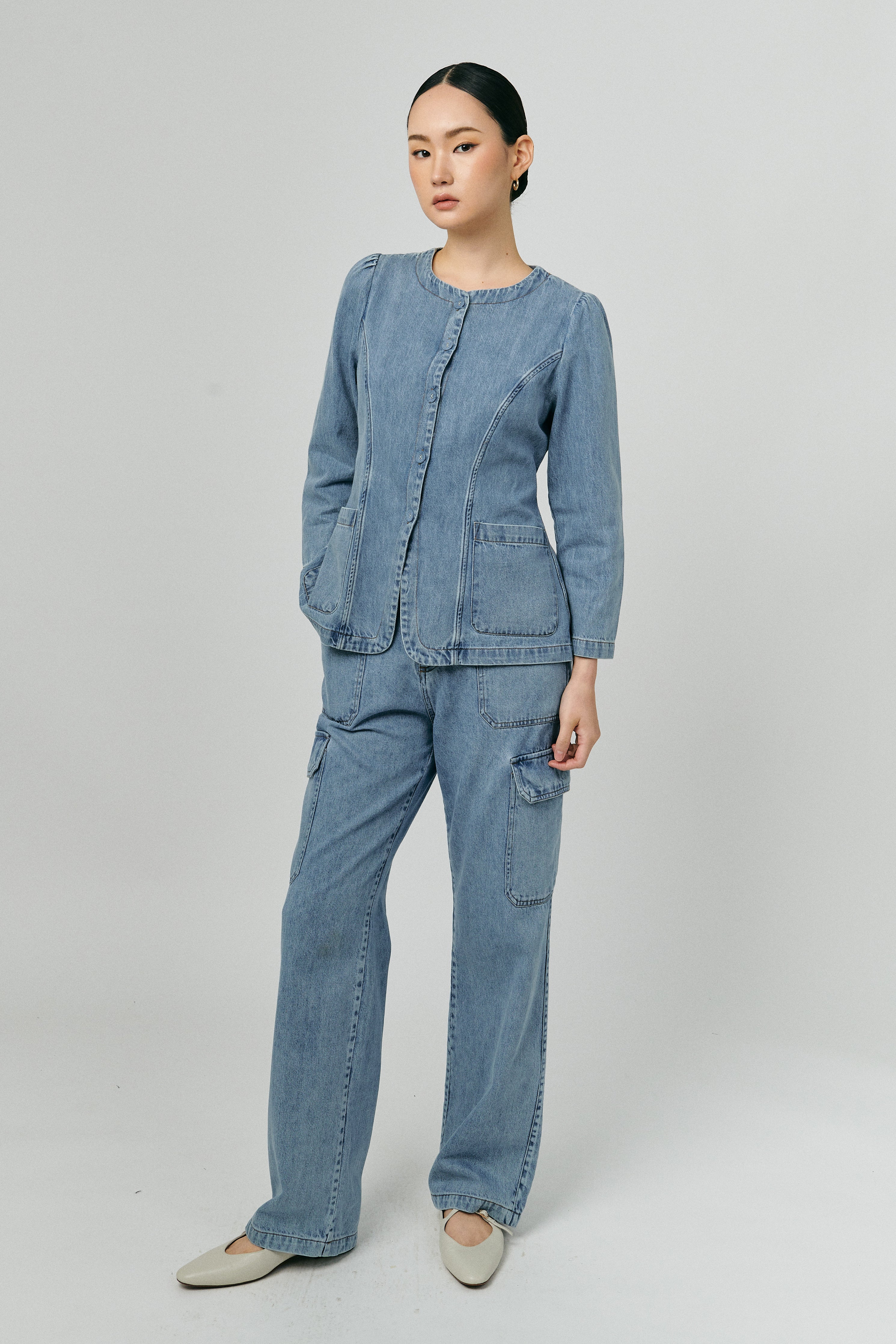 For those in pursuit of utility, rendered in cotton denim. Featuring two side pockets, two patch pockets, and two back pockets. Finished with the signature Whimsigirl metal logo button.