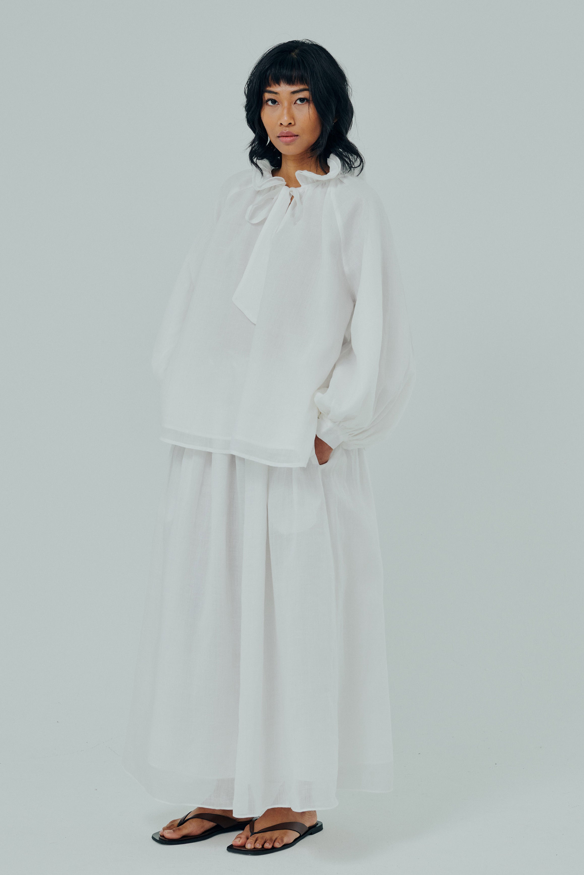 Clio Hand-Stitched Honeycomb Blouse in Ecru