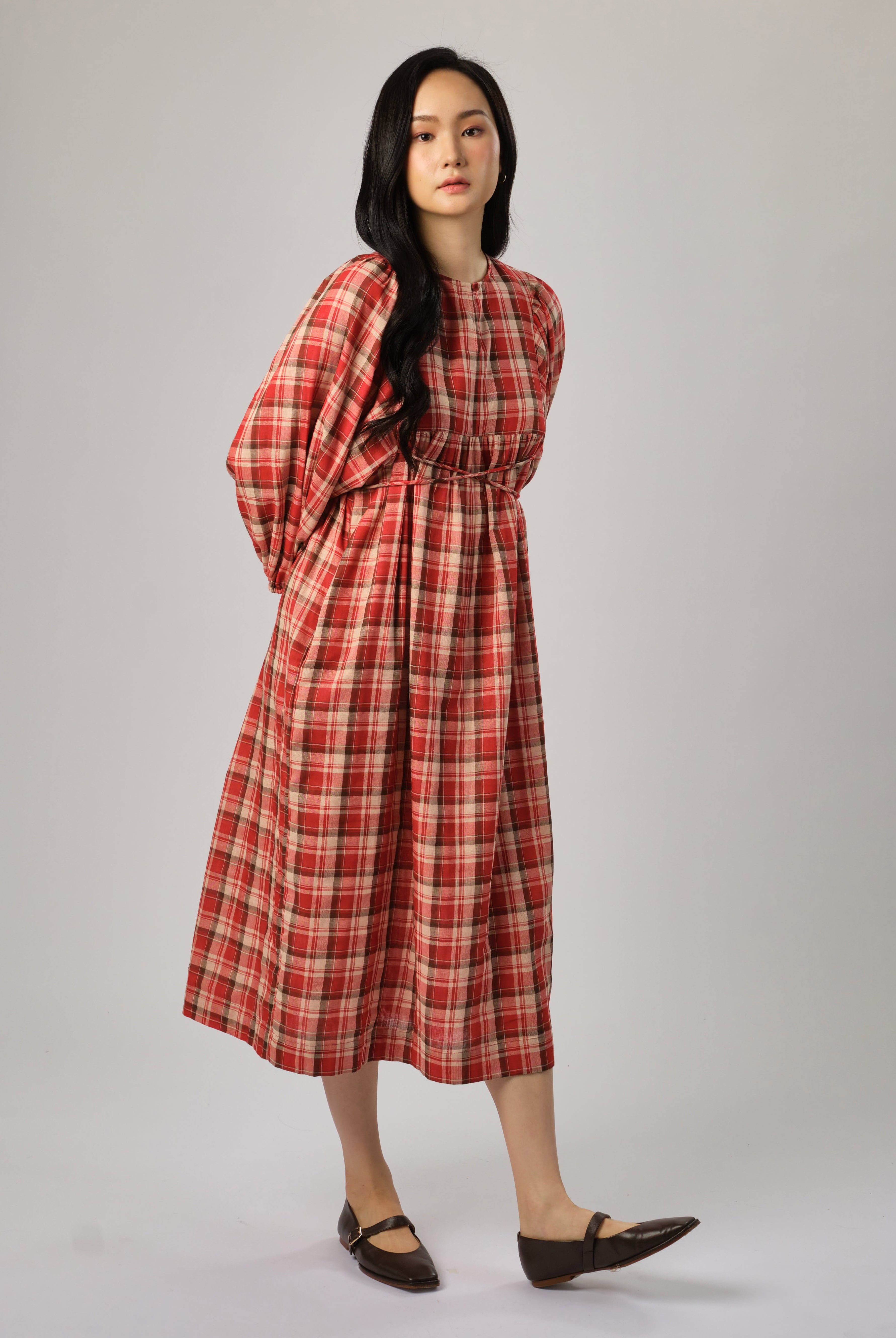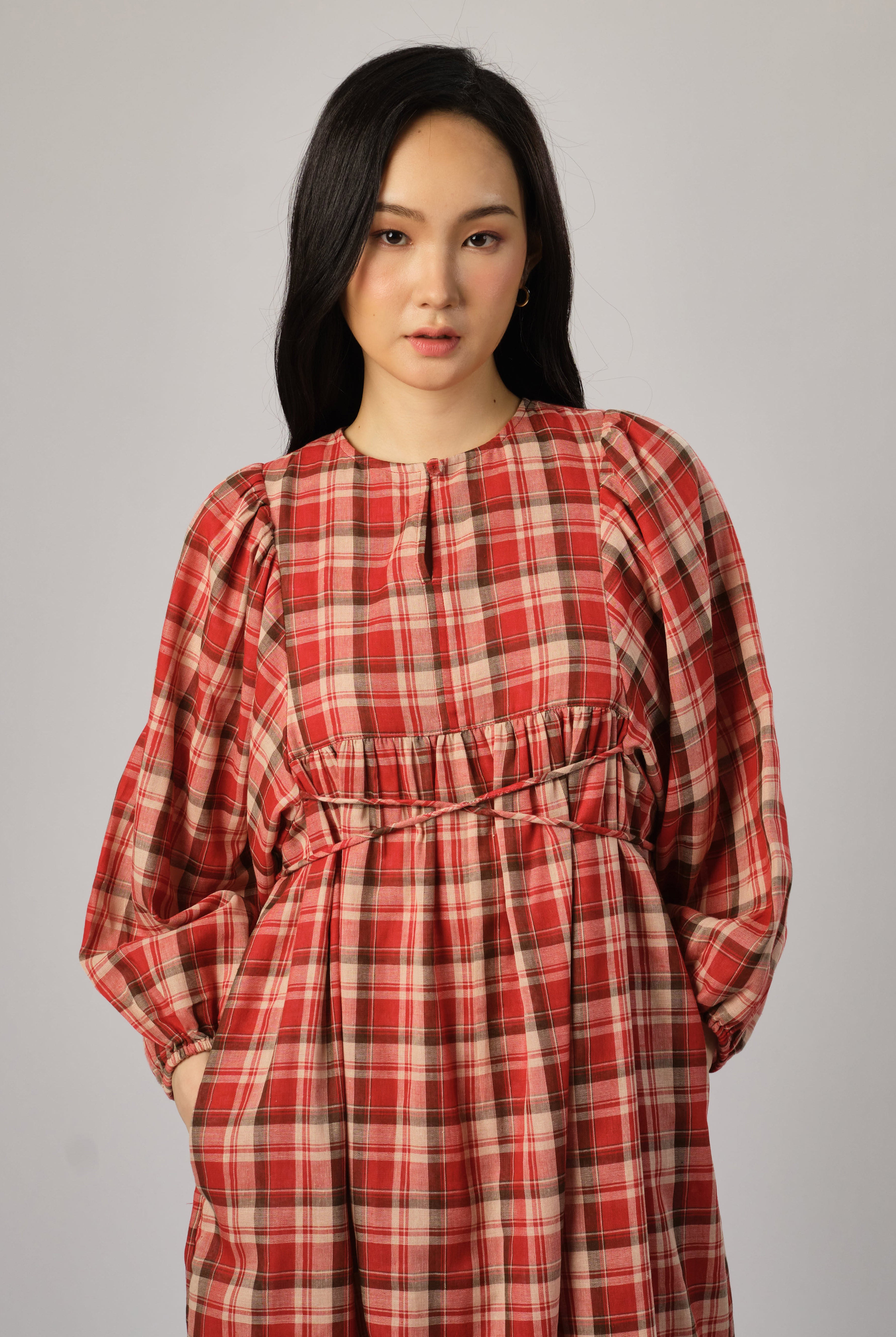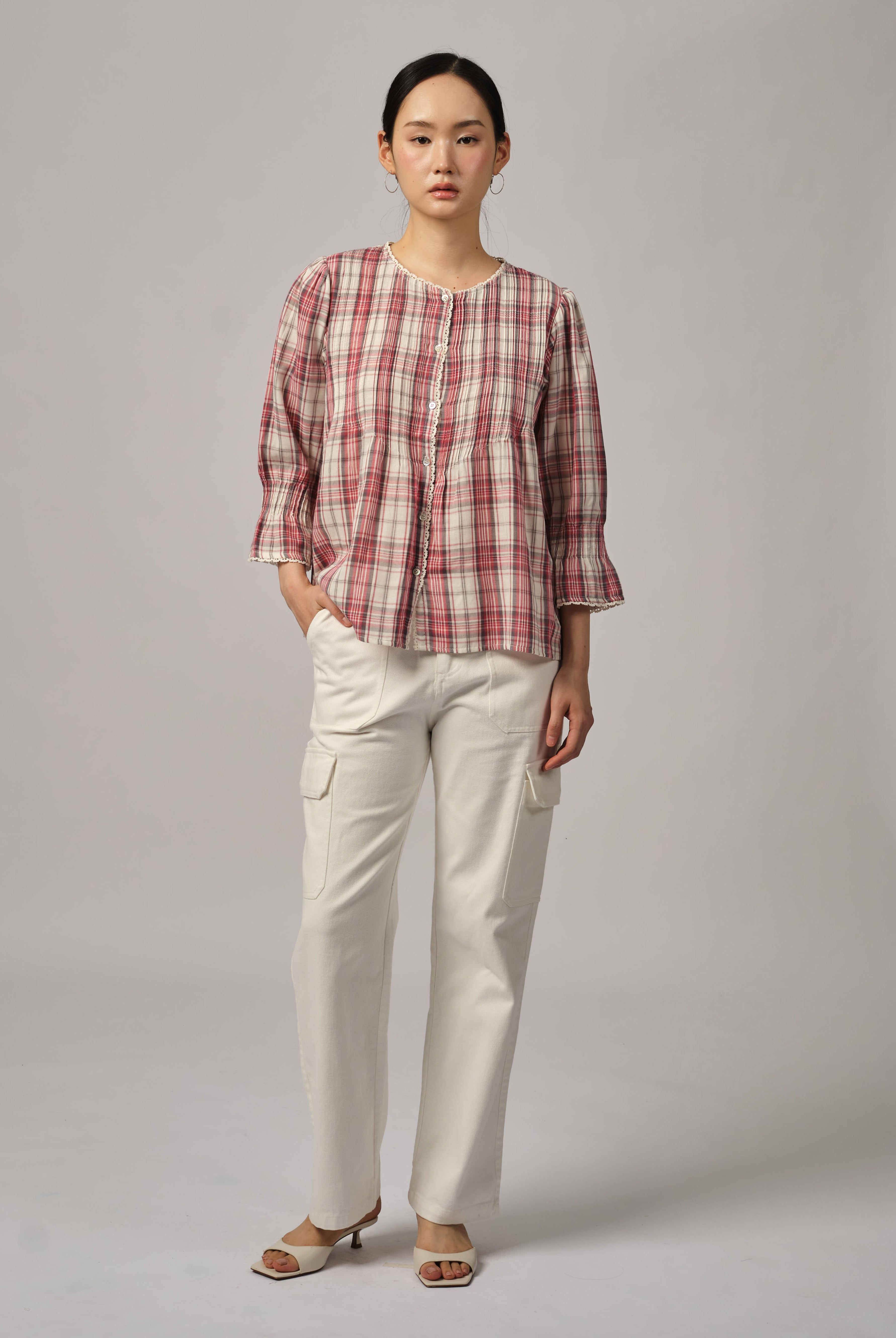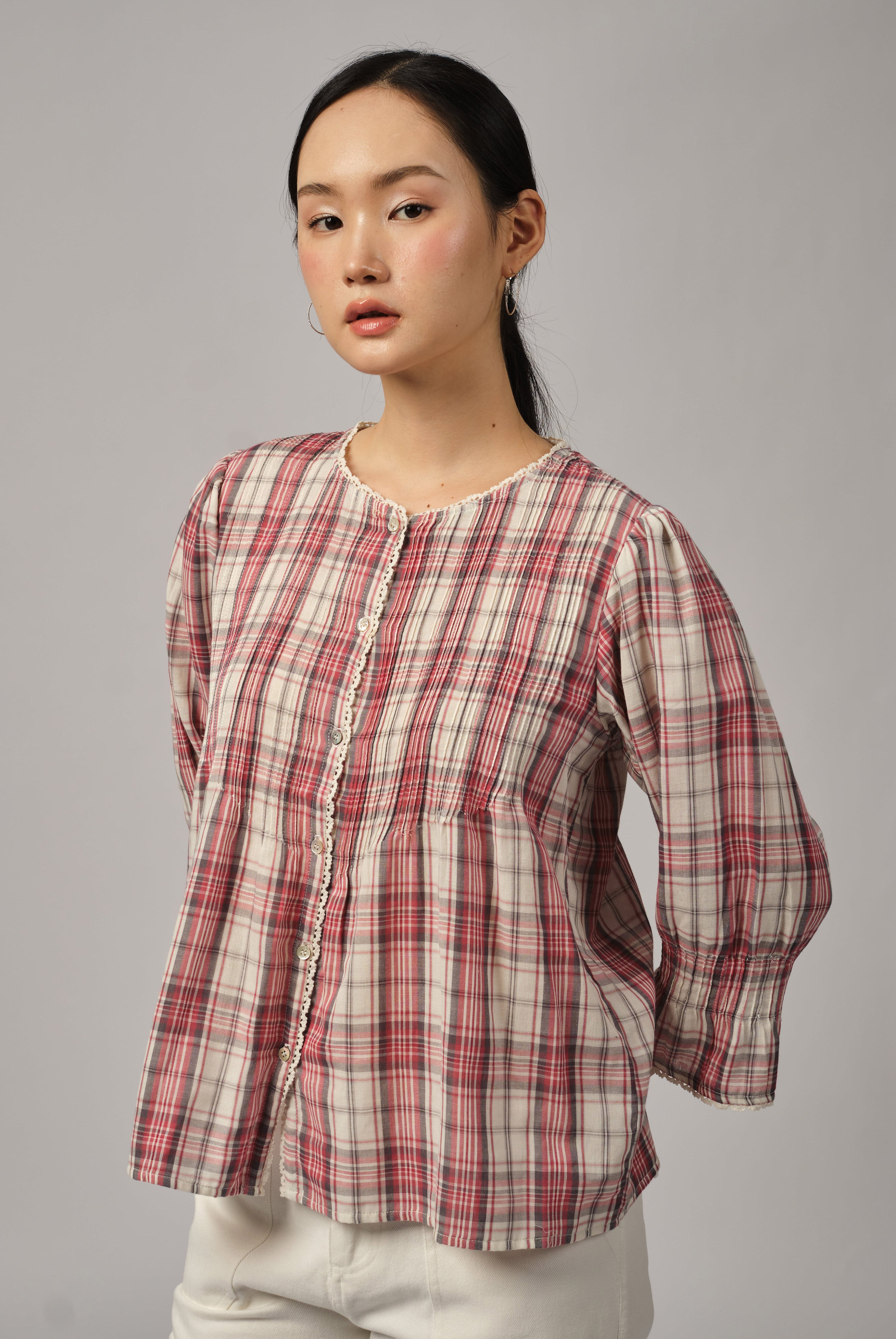 Statement Plaid Button-Back Shirt in Cherry Bark