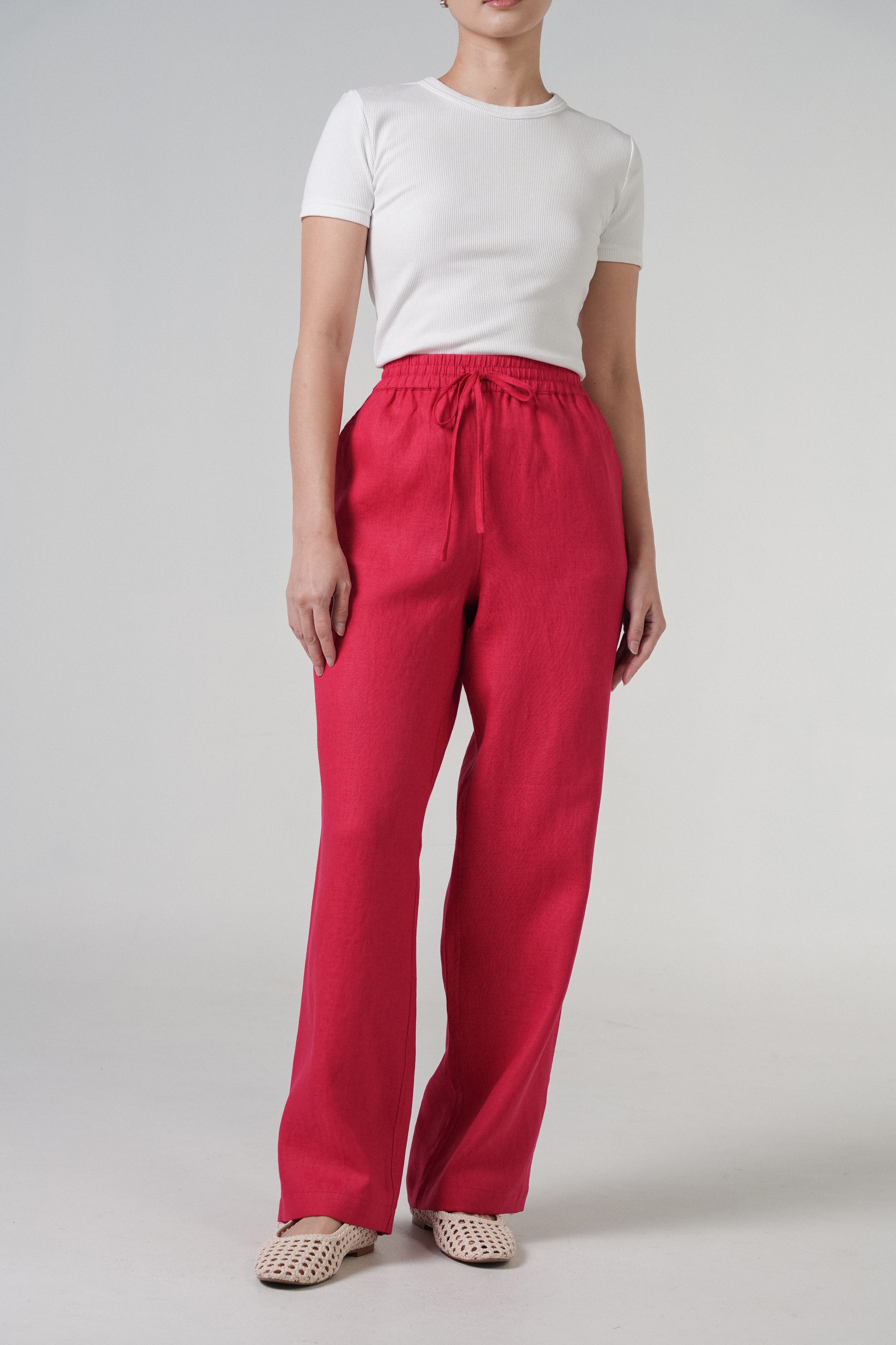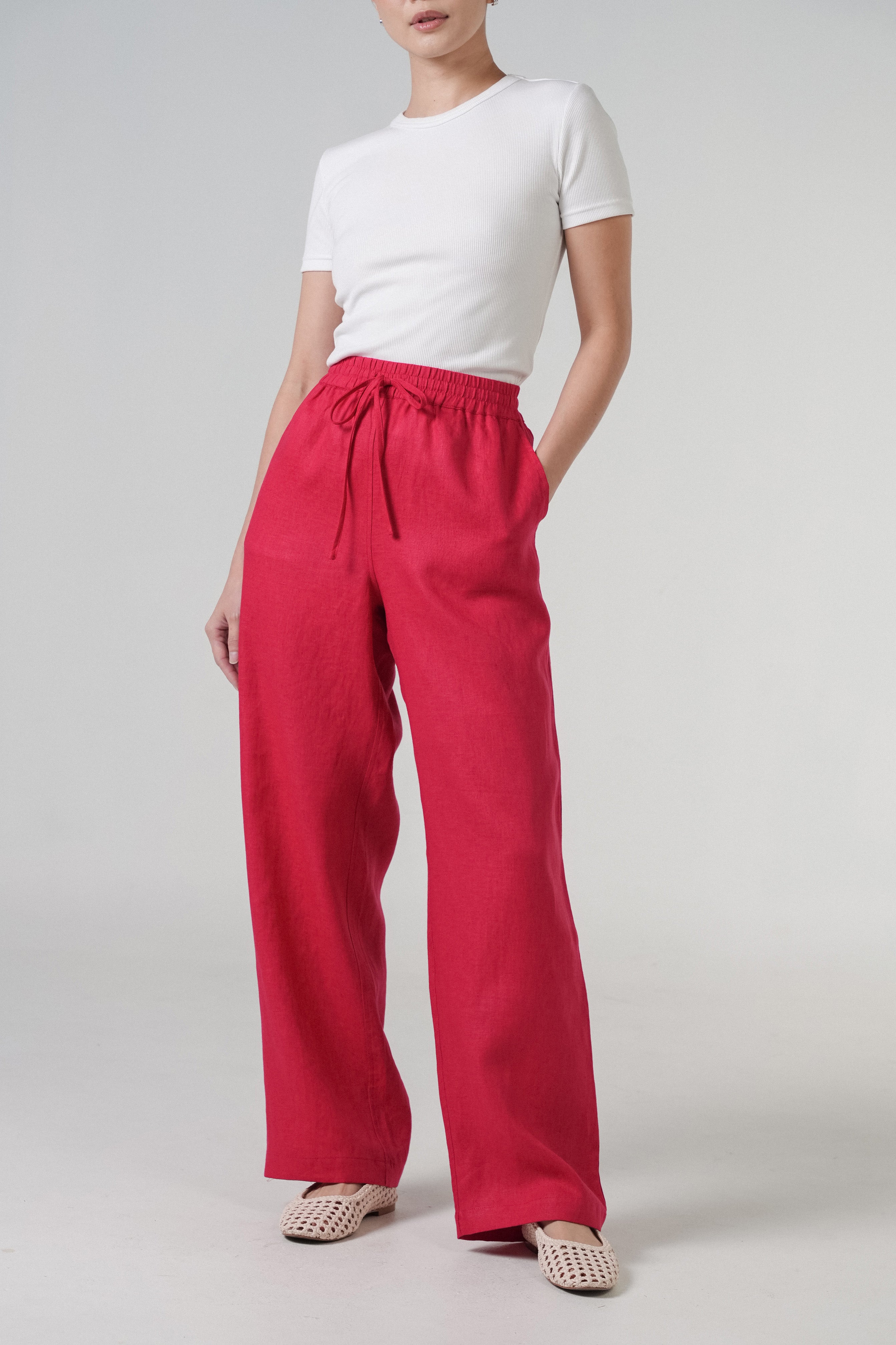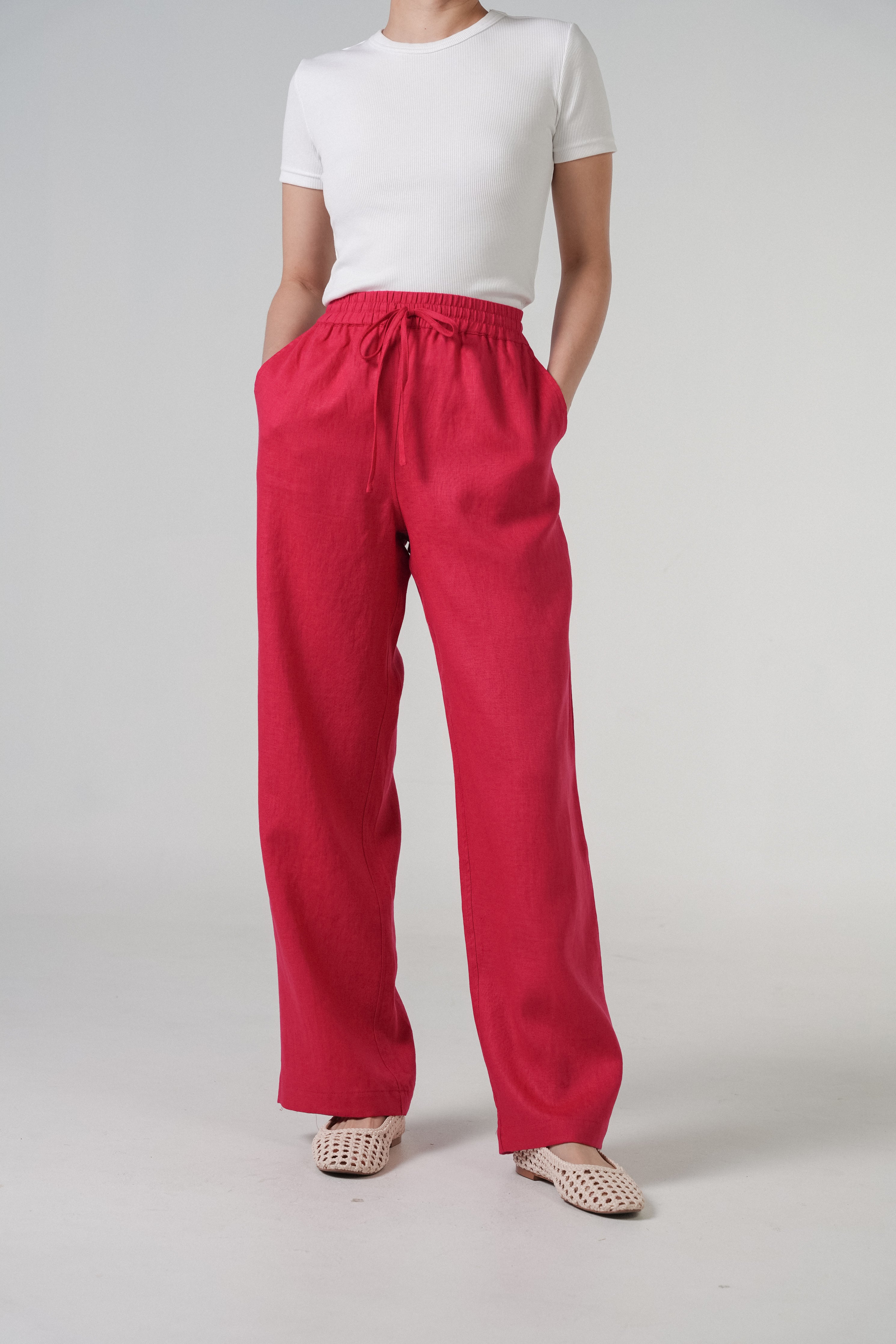 A straight cut fit, designed with a flexible drawstring waistband. Rendered in 100% linen, and finished with pockets.