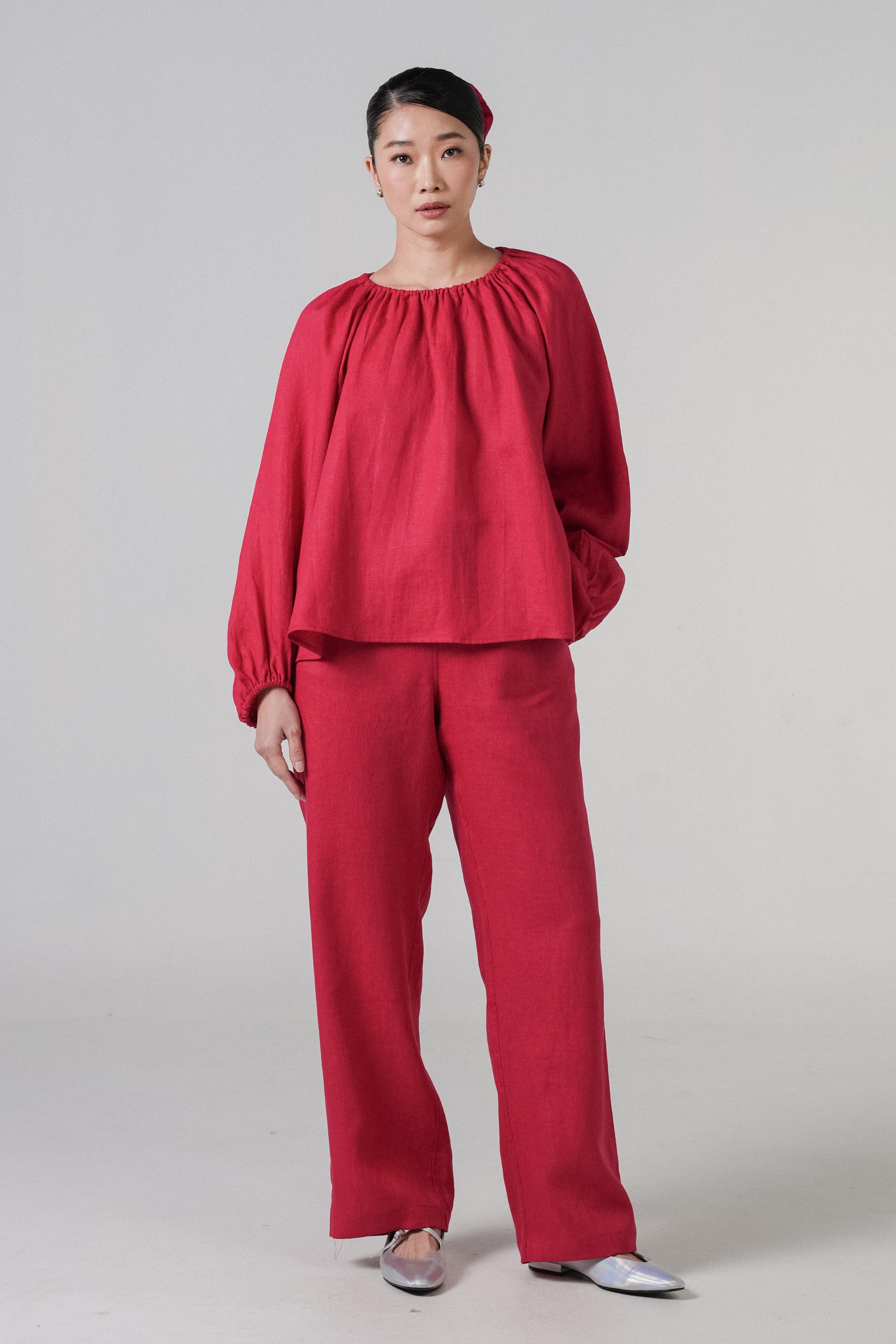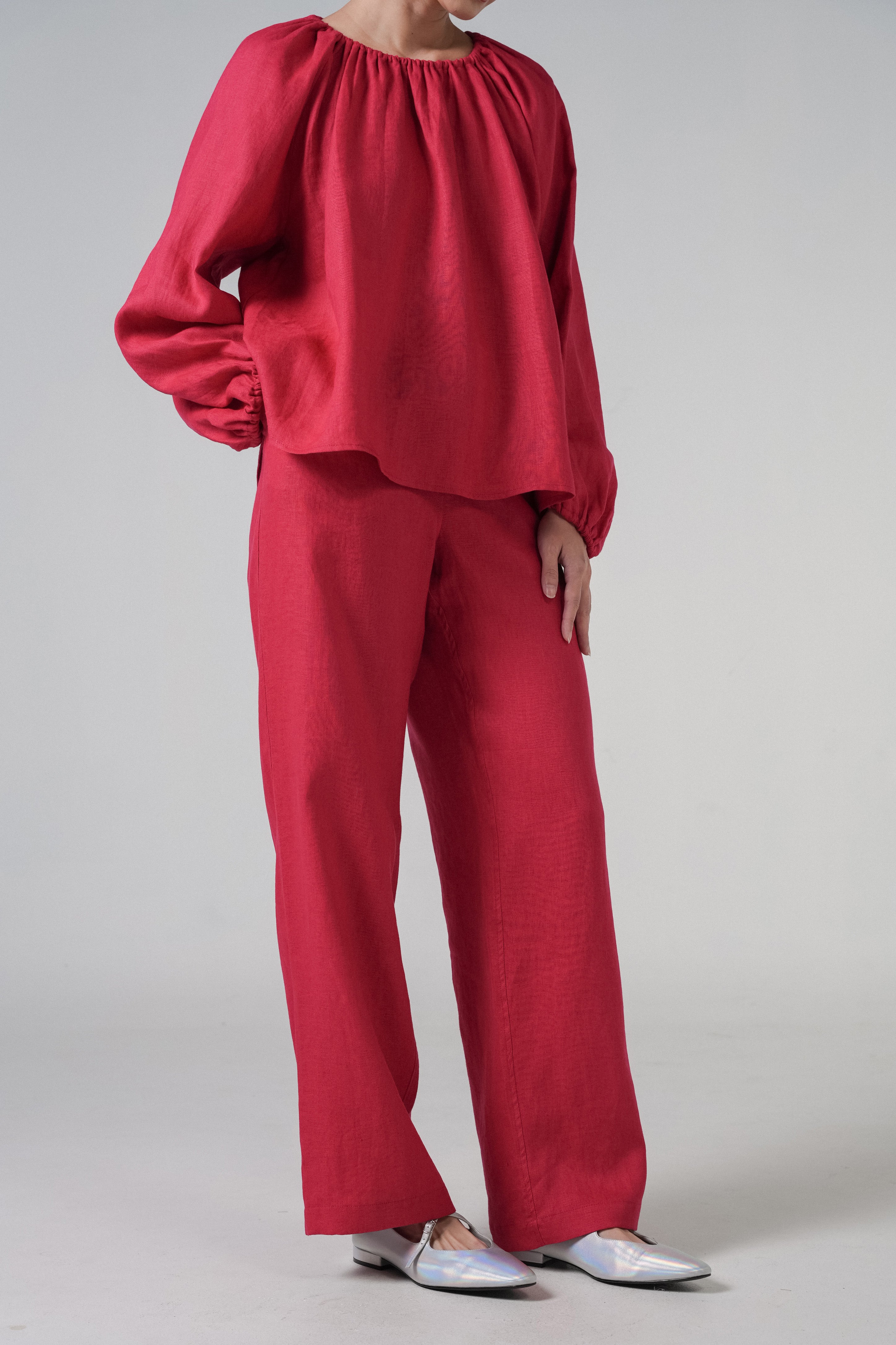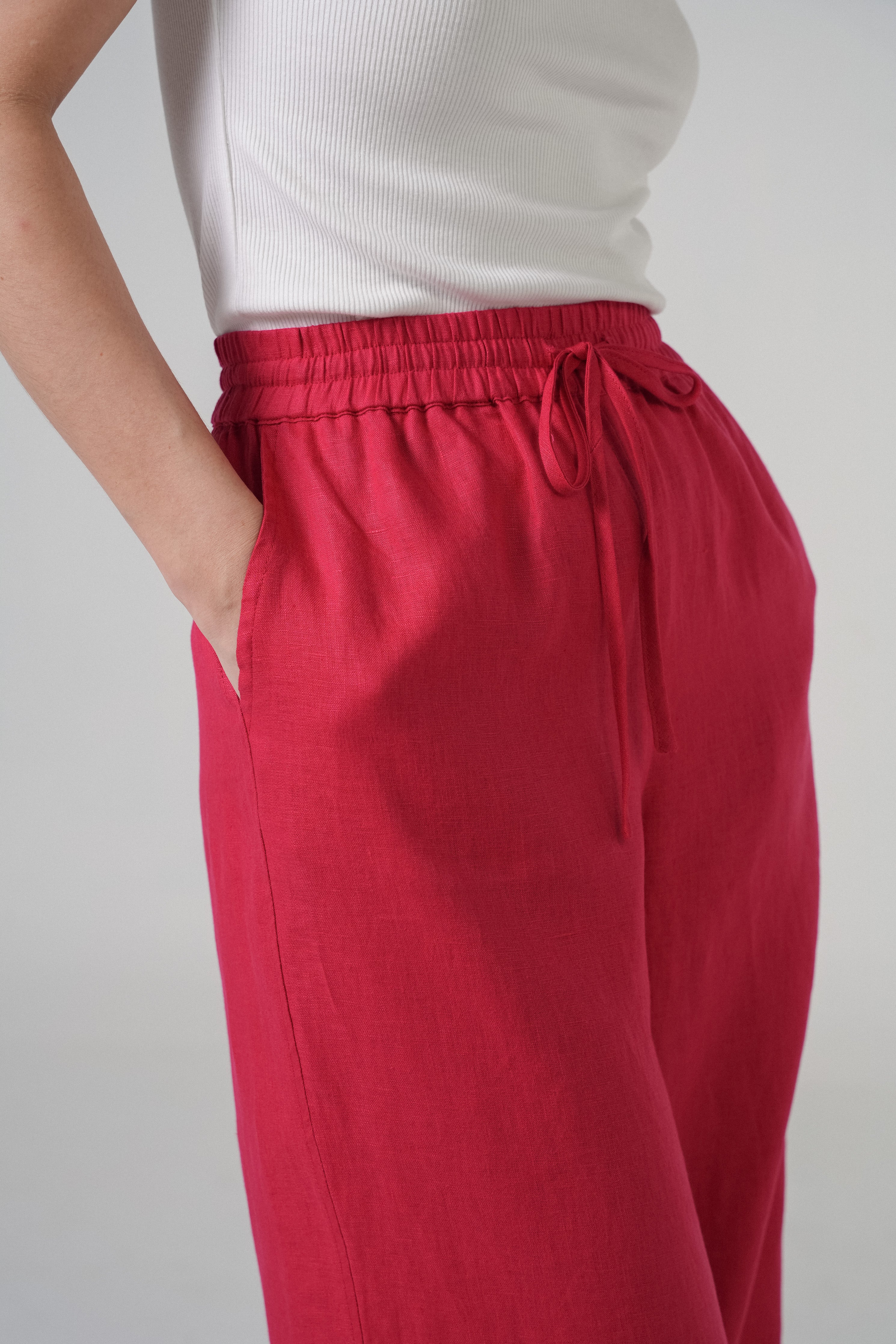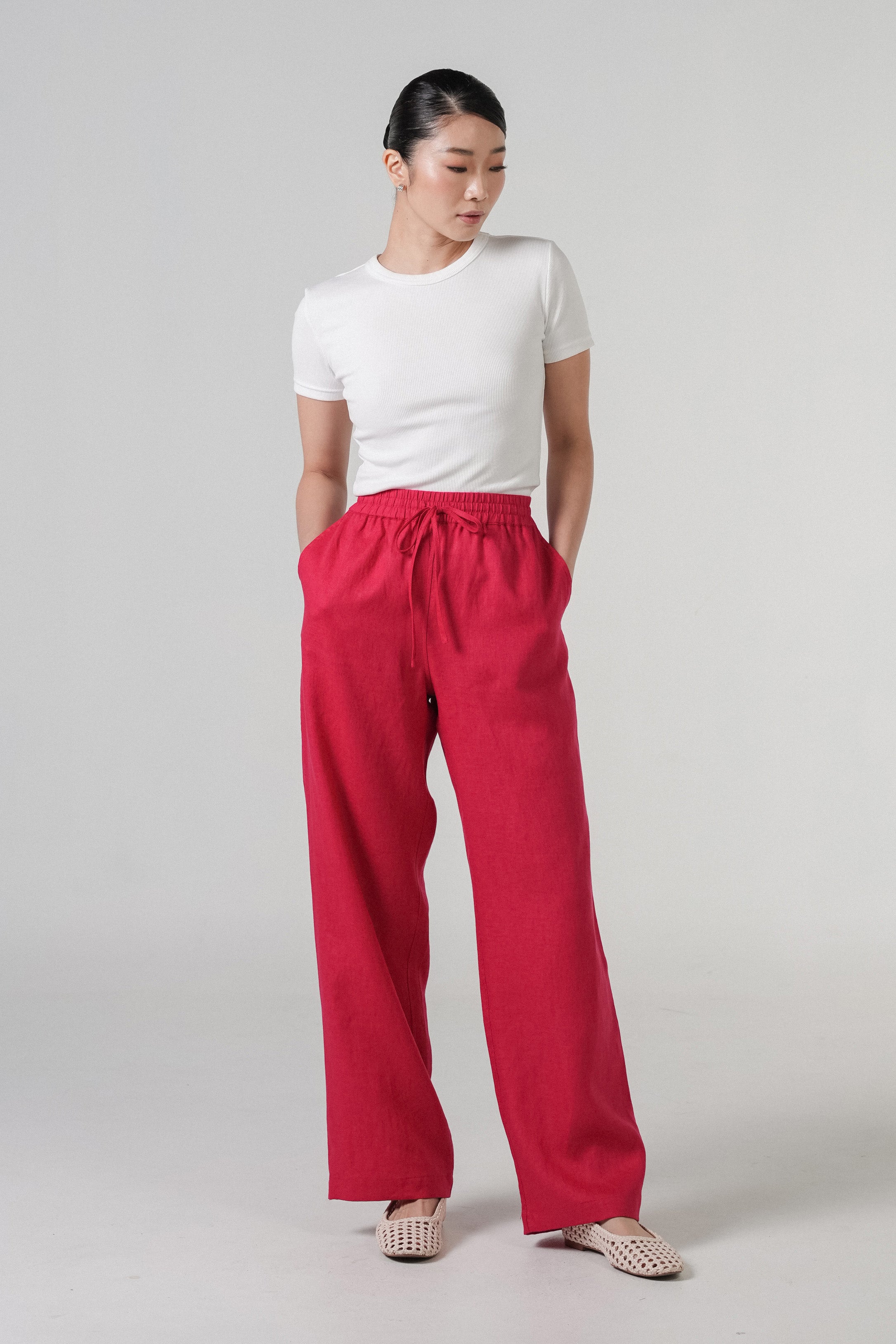 A straight cut fit, designed with a flexible drawstring waistband. Rendered in 100% linen, and finished with pockets.