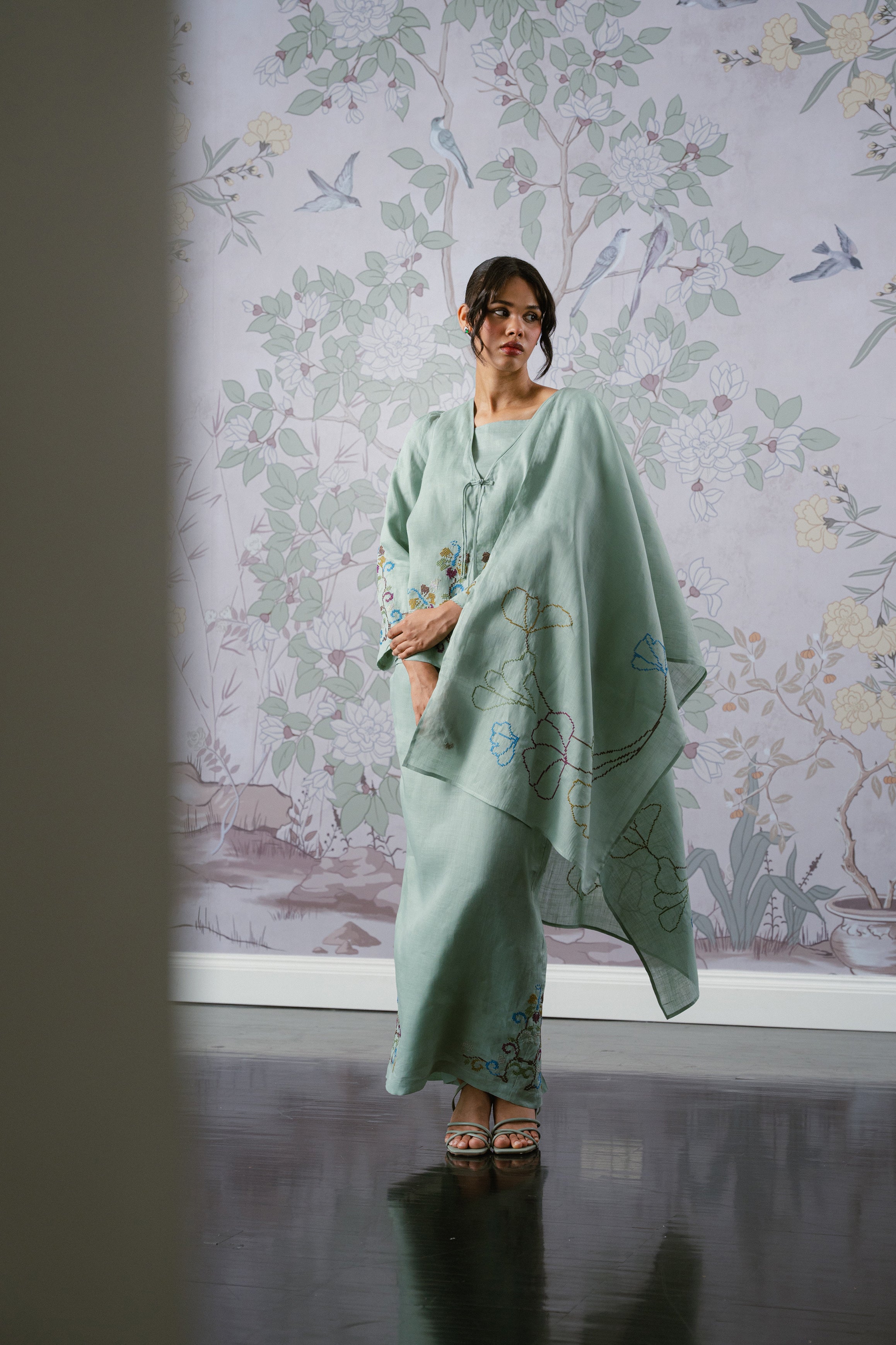 Celeste Ramie Selendang in Sage