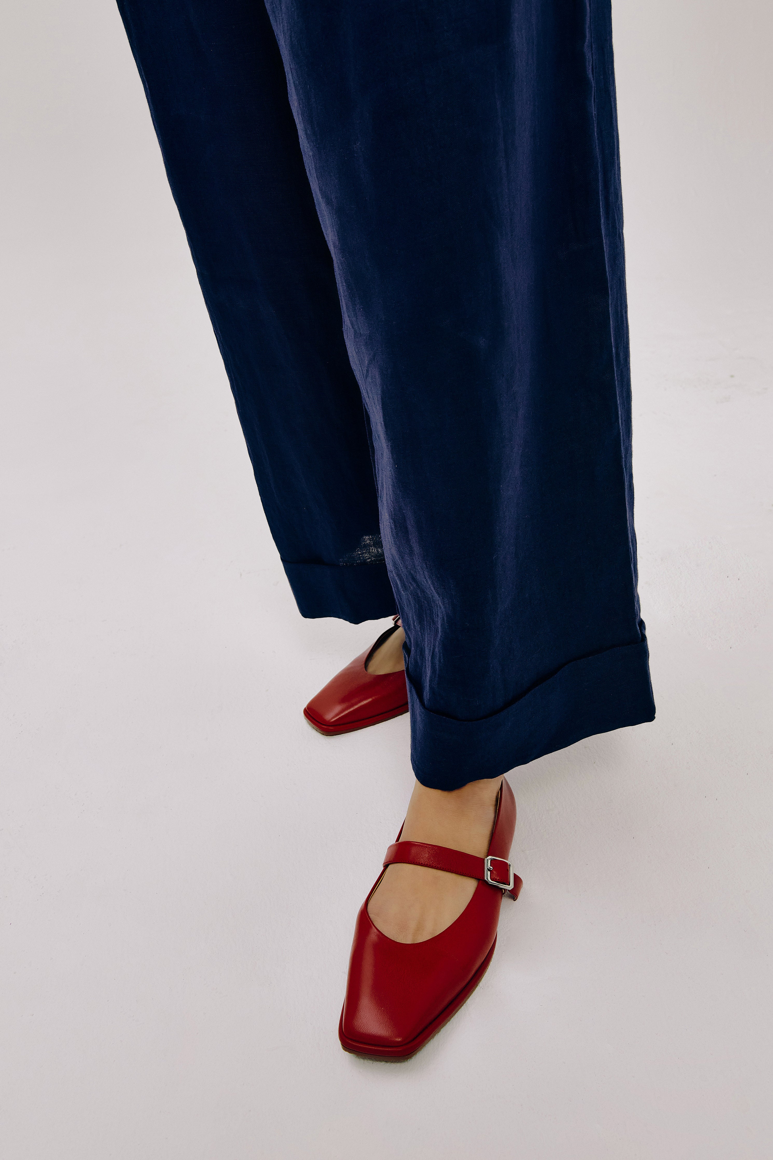A classic, leather Mary Jane flat. Designed with a secure instep strap and soft sheep skin lining. A low heel for all-day comfort. Finished with a brass pin buckle.