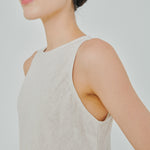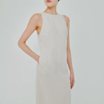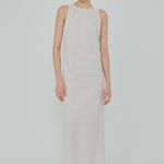 Regular fit sleeveless dress, cut on the bias for a flattering drape. Rendered in linen.