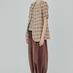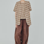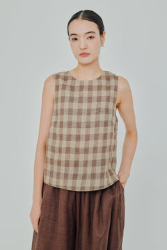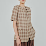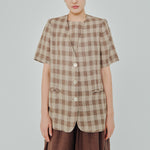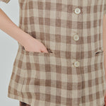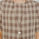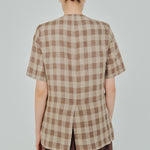 Midtown Short-Sleeve Linen Blazer in Brown Gingham