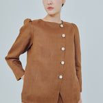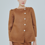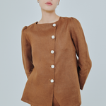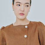 A relaxed fit, with asymmetric front button closure and high square neckline. Rendered in linen, and lined in cotton.