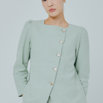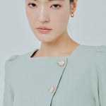 A relaxed fit, with asymmetric front button closure and high square neckline. Rendered in linen, and lined in cotton.