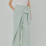 Wide-leg trousers, with a side zip and tie closure. Rendered in linen, and lined in cotton.