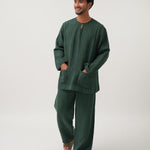 It also features 2 front pockets, for our Jejaka’s ease and mobility. The pants are loose fit, with an adjustable drawstring elastic waistband for all the festive gatherings to come. There’s also side pockets! The Musa Linen Set comes in four colours - Green, Navy, Ivory and Olive that matches seamlessly with so many Gadis Luar Biasa pieces.