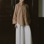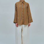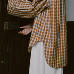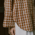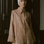 A signature silhouette, in a patterned iteration. A relaxed fit with curved hem and long sleeves with wide cuffs. Finished with a high-low silhouette.