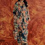 Intricate flower embroidery in multi-toned thread