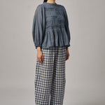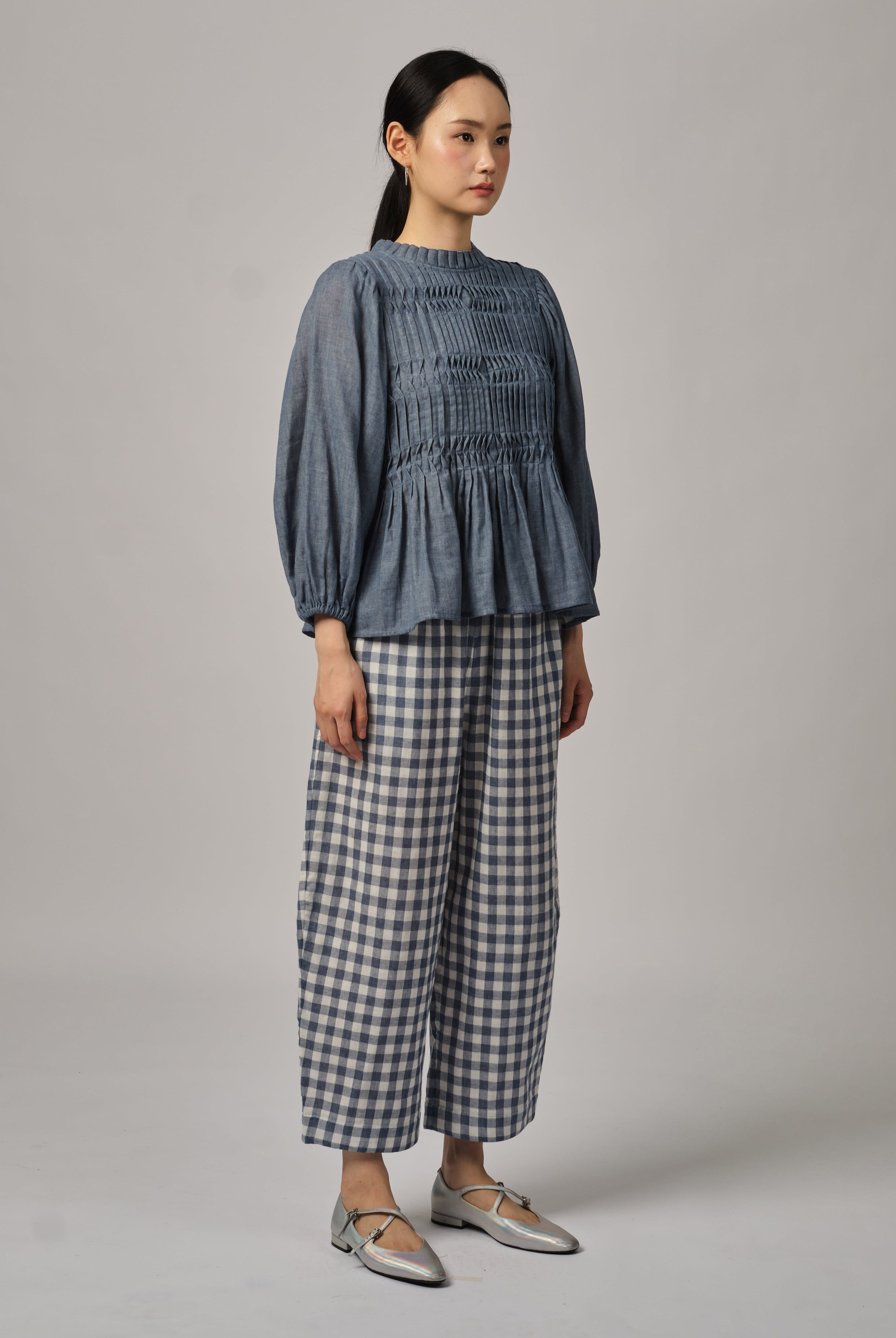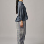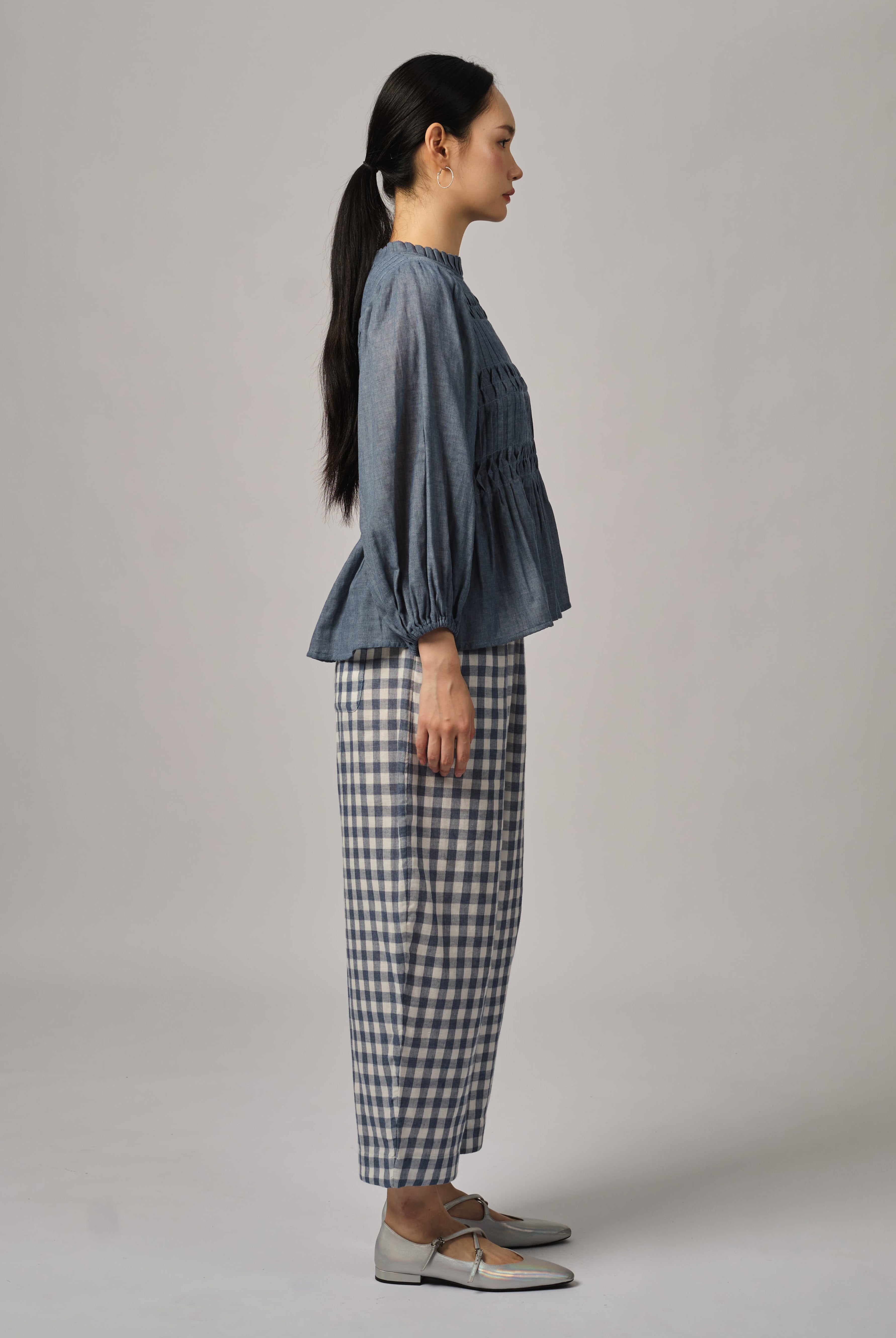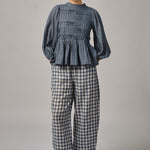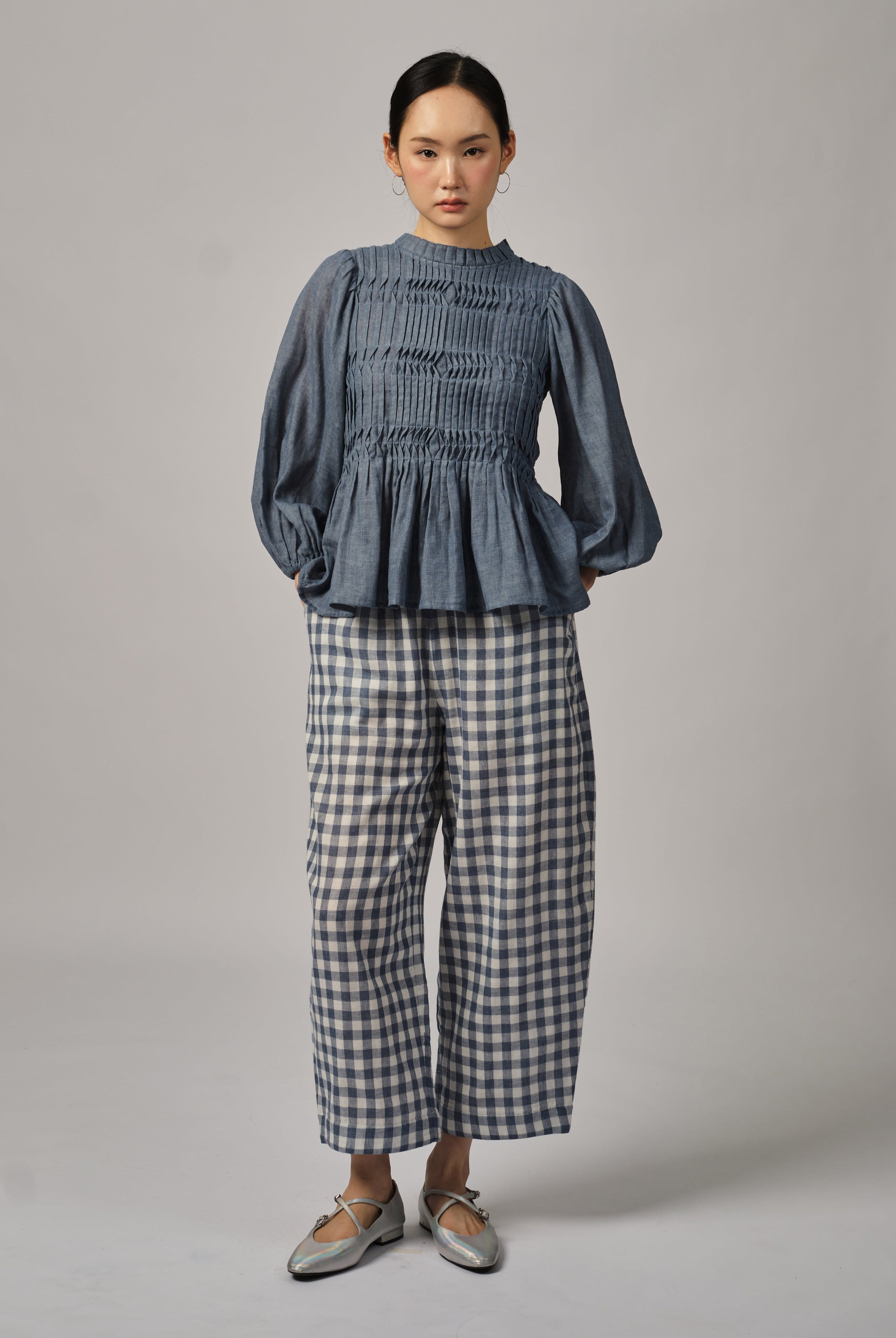 A slim barrel silhouette in cotton, with a gingham weave pattern. Features an adjustable drawstring with elastic waistband. Finished with a back and side pockets. An ankle-length cut.