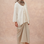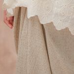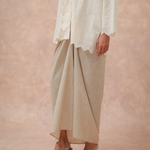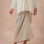 A true staple, this is a slip-on knot skirt that can be secured with a double knot. Made from textured cotton with organic motif.