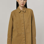 A relaxed fit that will put in the work. Rendered in cotton, with side slits and slim cut sleeves with buttoned cuffs. Finished with a Whimsigirl metal logo button.