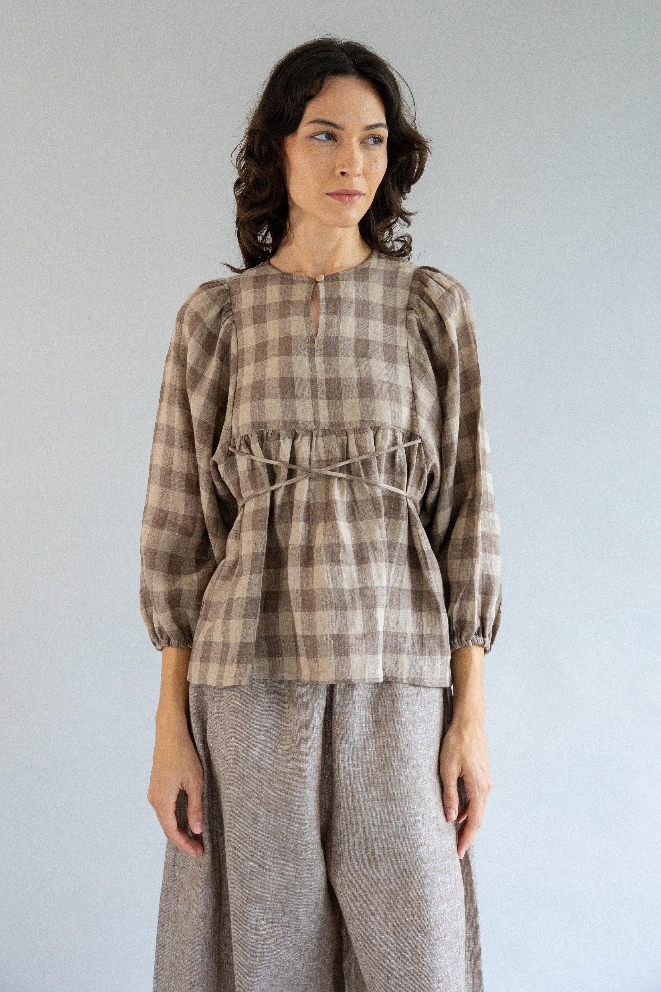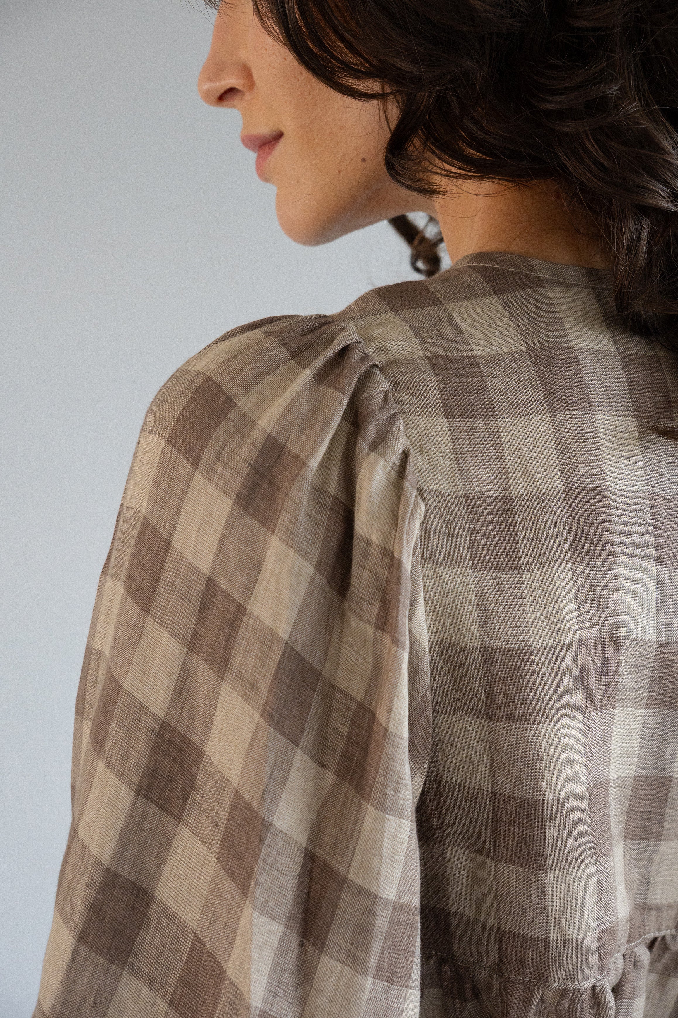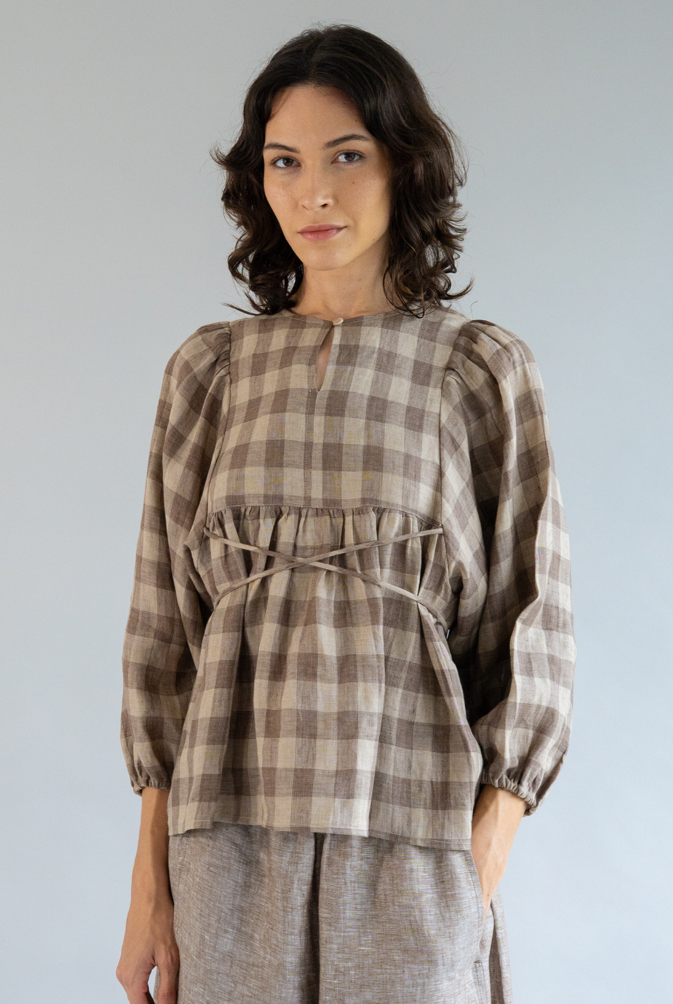 A true favourite, now in linen – featuring a gathered bust, front opening button and voluminous puffed sleeves. Finished with adjustable straps for versatility.