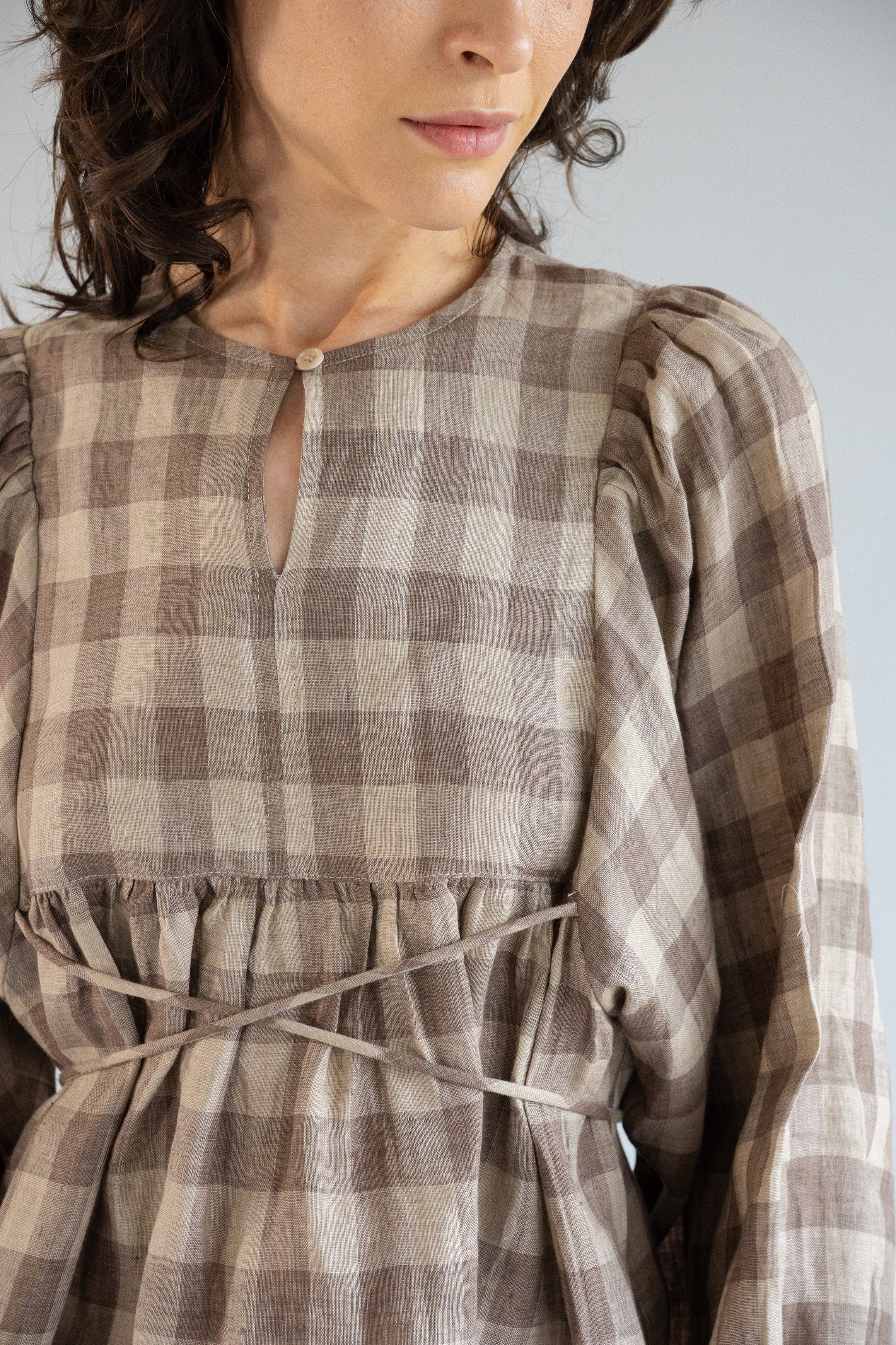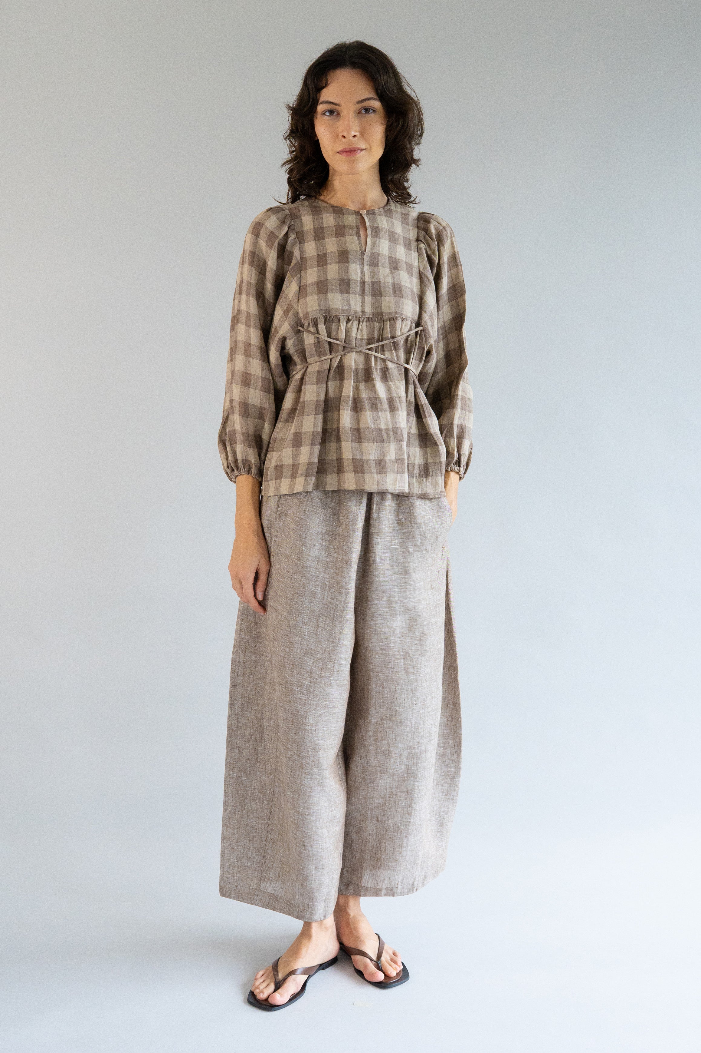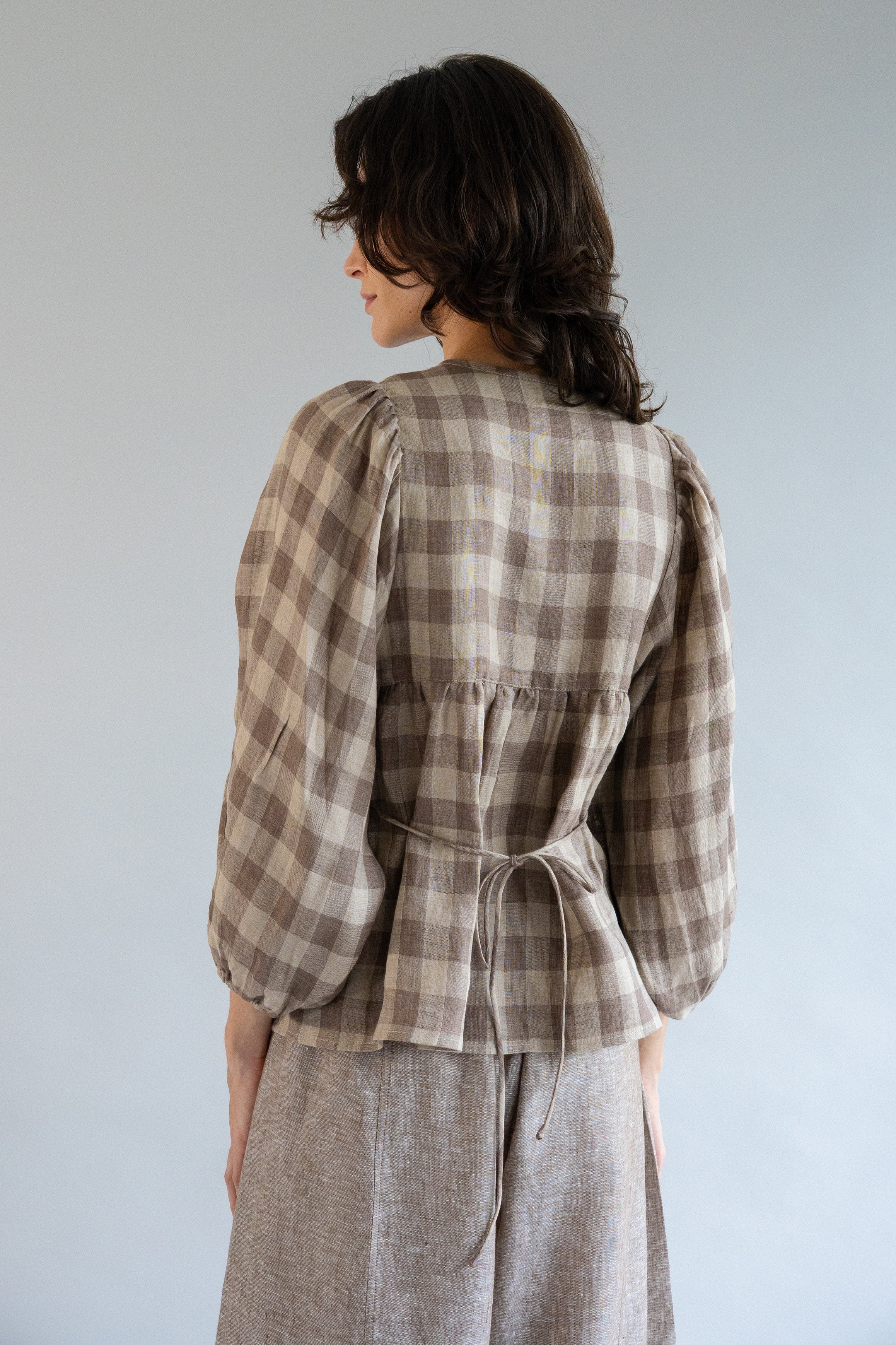 A true favourite, now in linen – featuring a gathered bust, front opening button and voluminous puffed sleeves. Finished with adjustable straps for versatility.