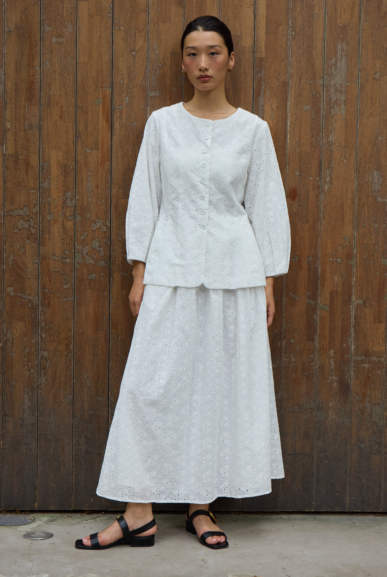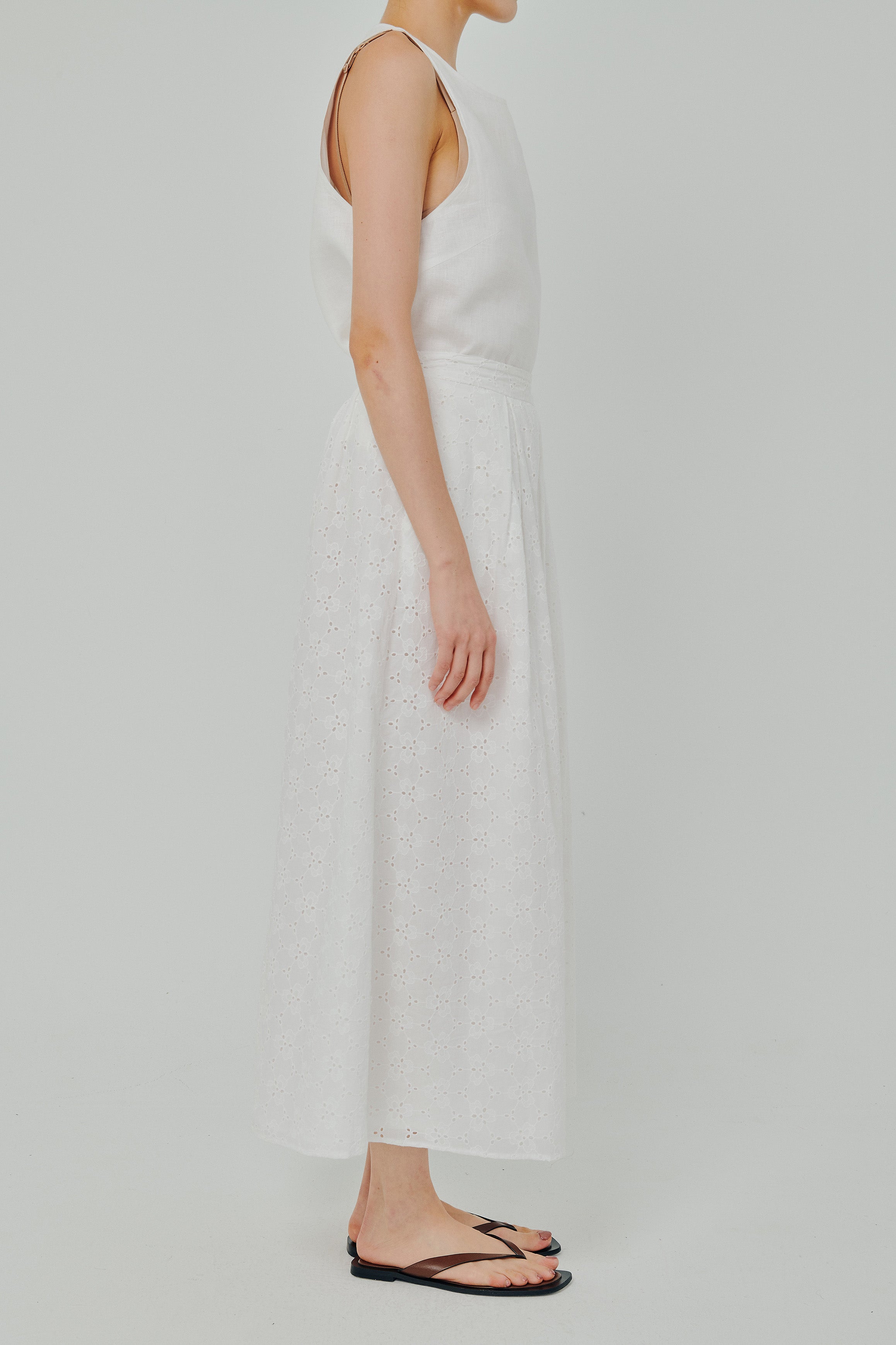 Curator Broderie Pleated Maxi Skirt in White