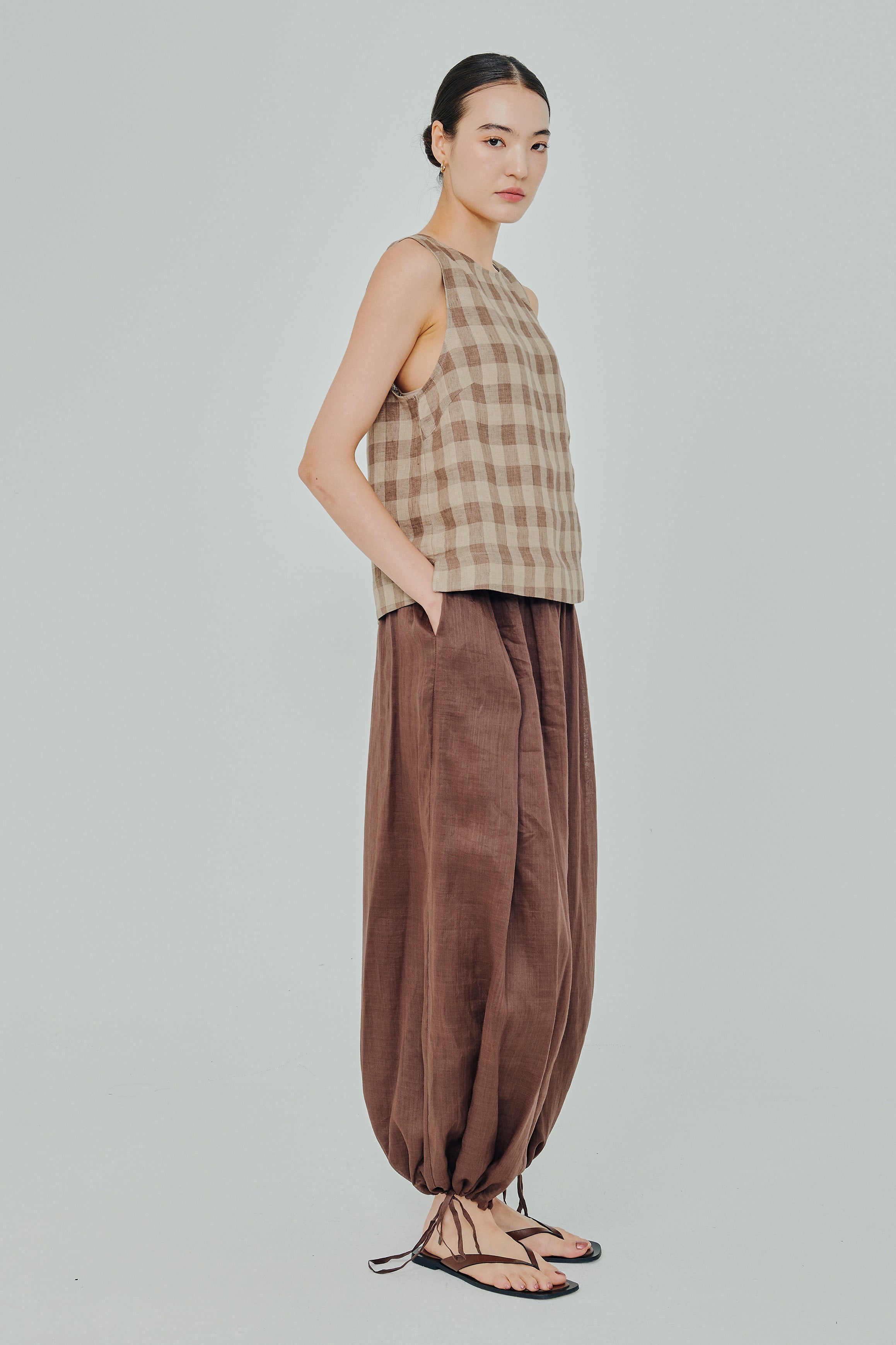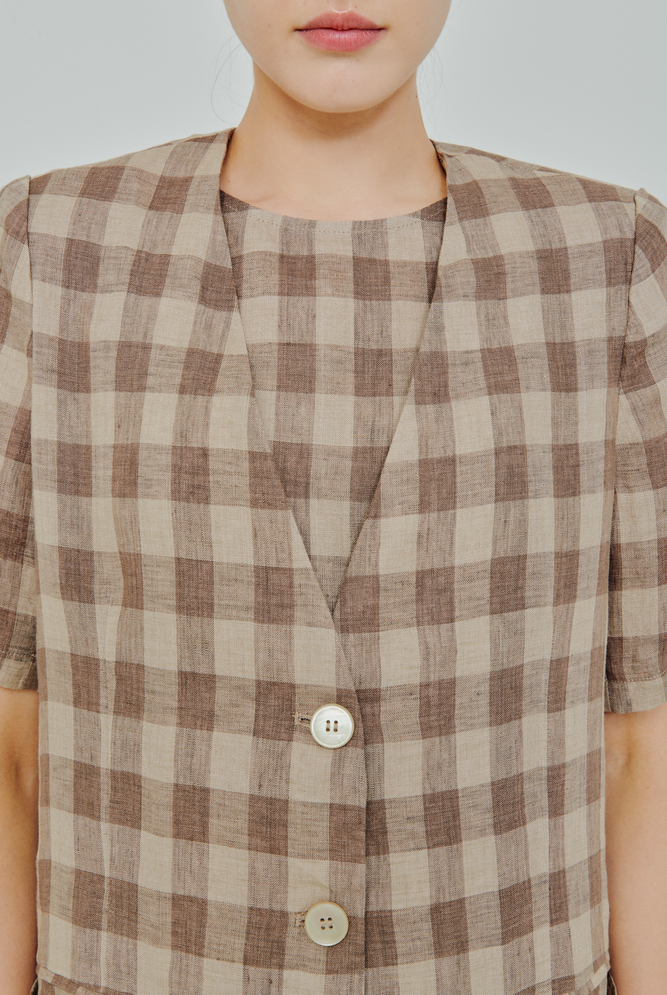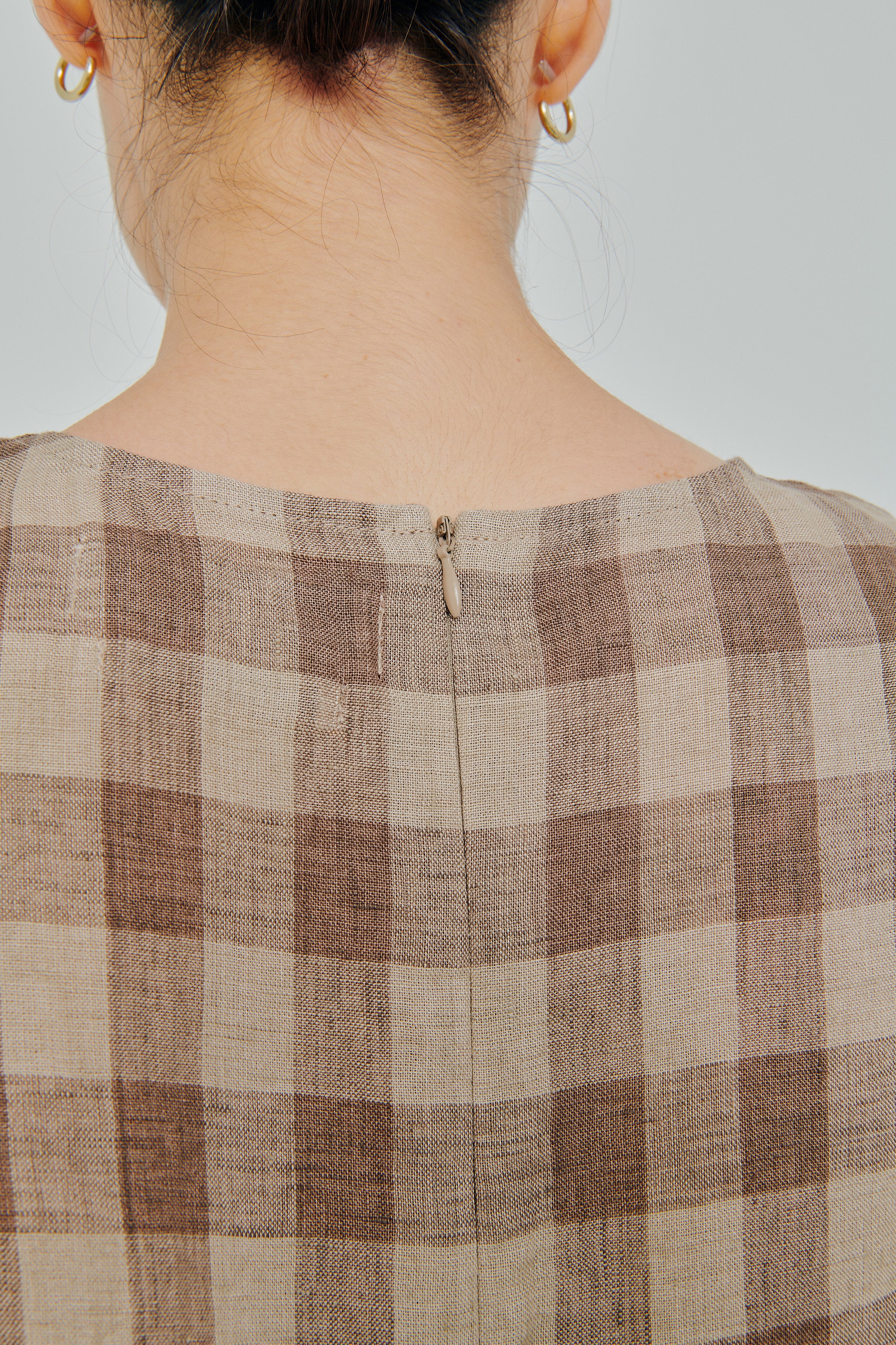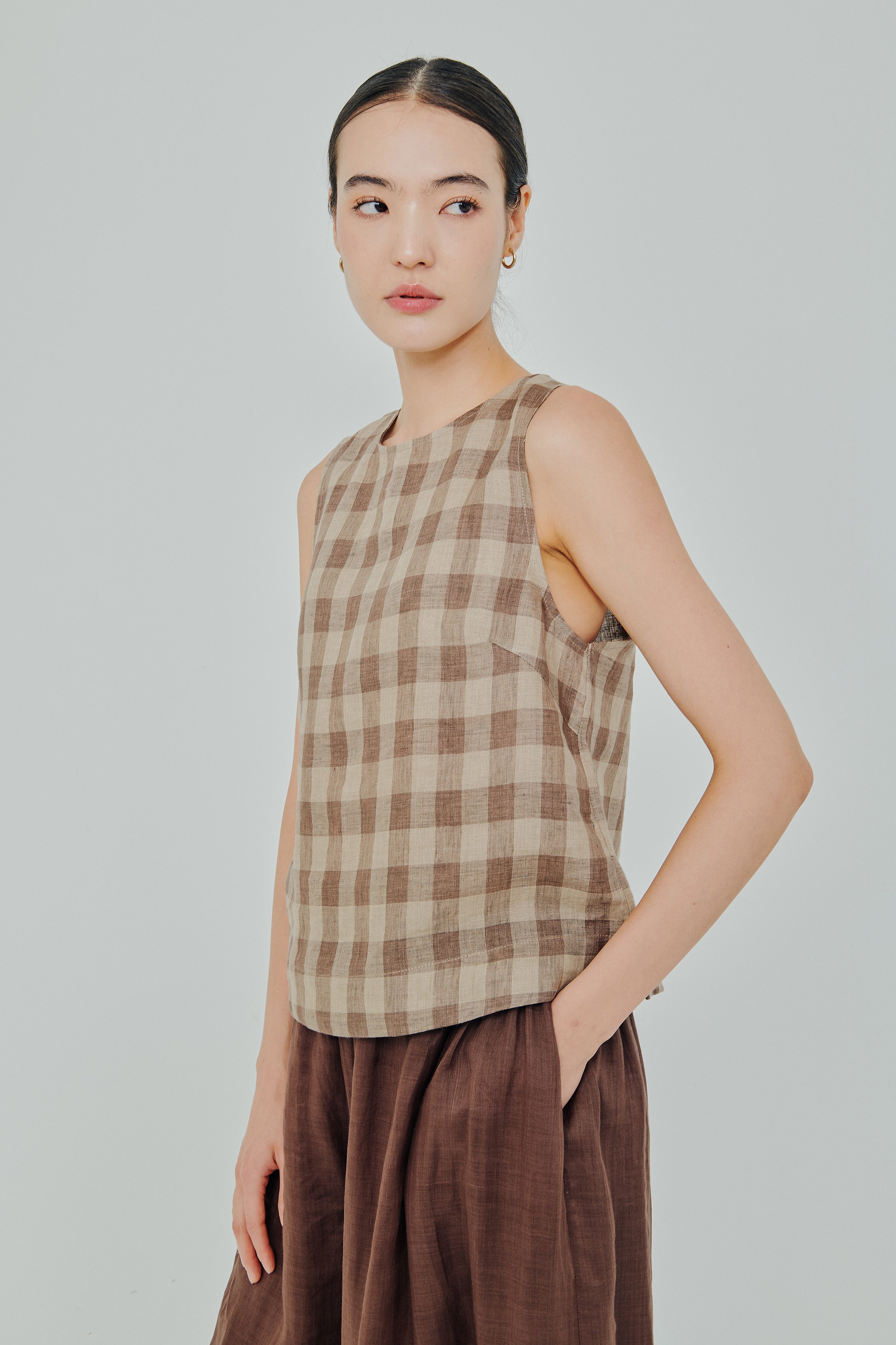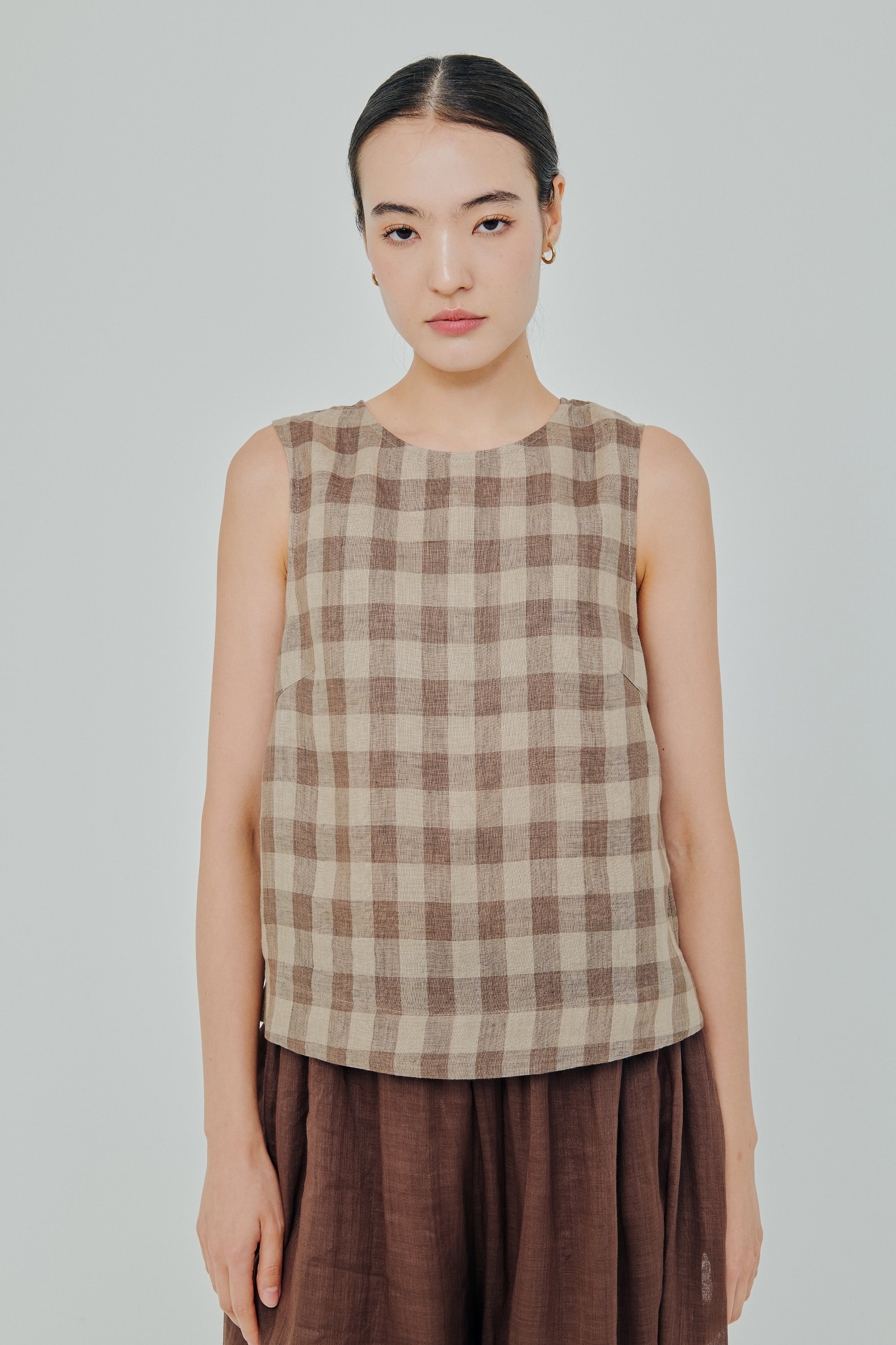 Midtown Linen Top in Brown Gingham