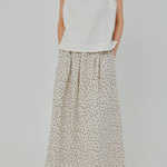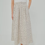 Curator Linen Pleated Maxi Skirt in Polka Dot