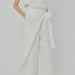 Wide-leg trousers, with a side zip and tie closure. Rendered in linen, and lined in cotton.