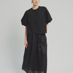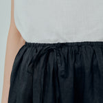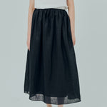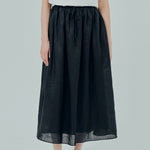 A-line midi skirt with an elastic drawstring waistband. Rendered in ramie, and lined in cotton.