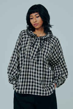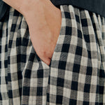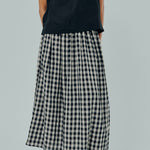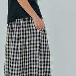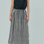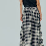 A-line midi skirt with an elastic drawstring waistband. Crafted in gingham cotton gauze.