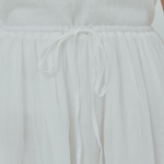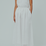 A-line midi skirt with an elastic drawstring waistband. Rendered in ramie, and lined in cotton.