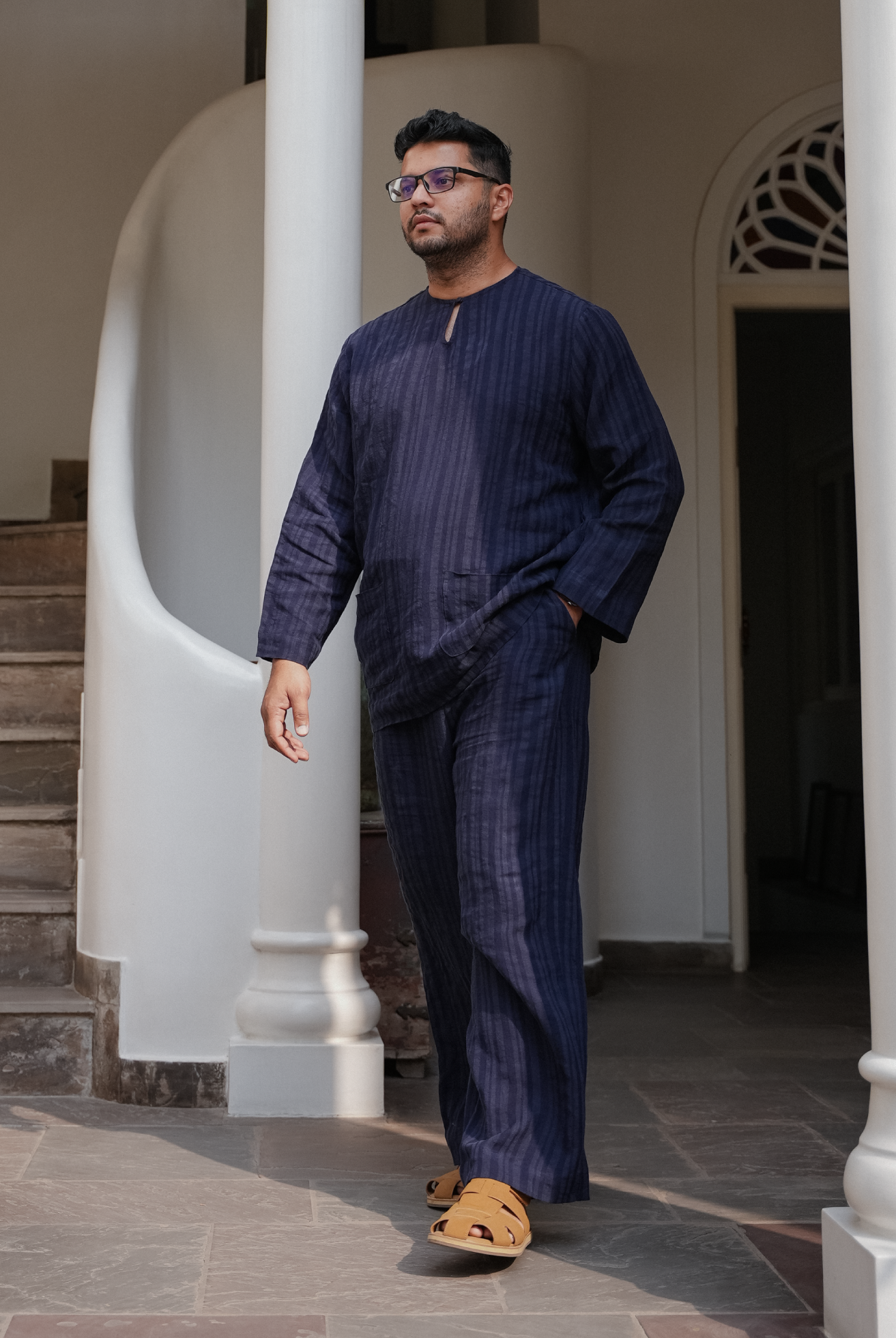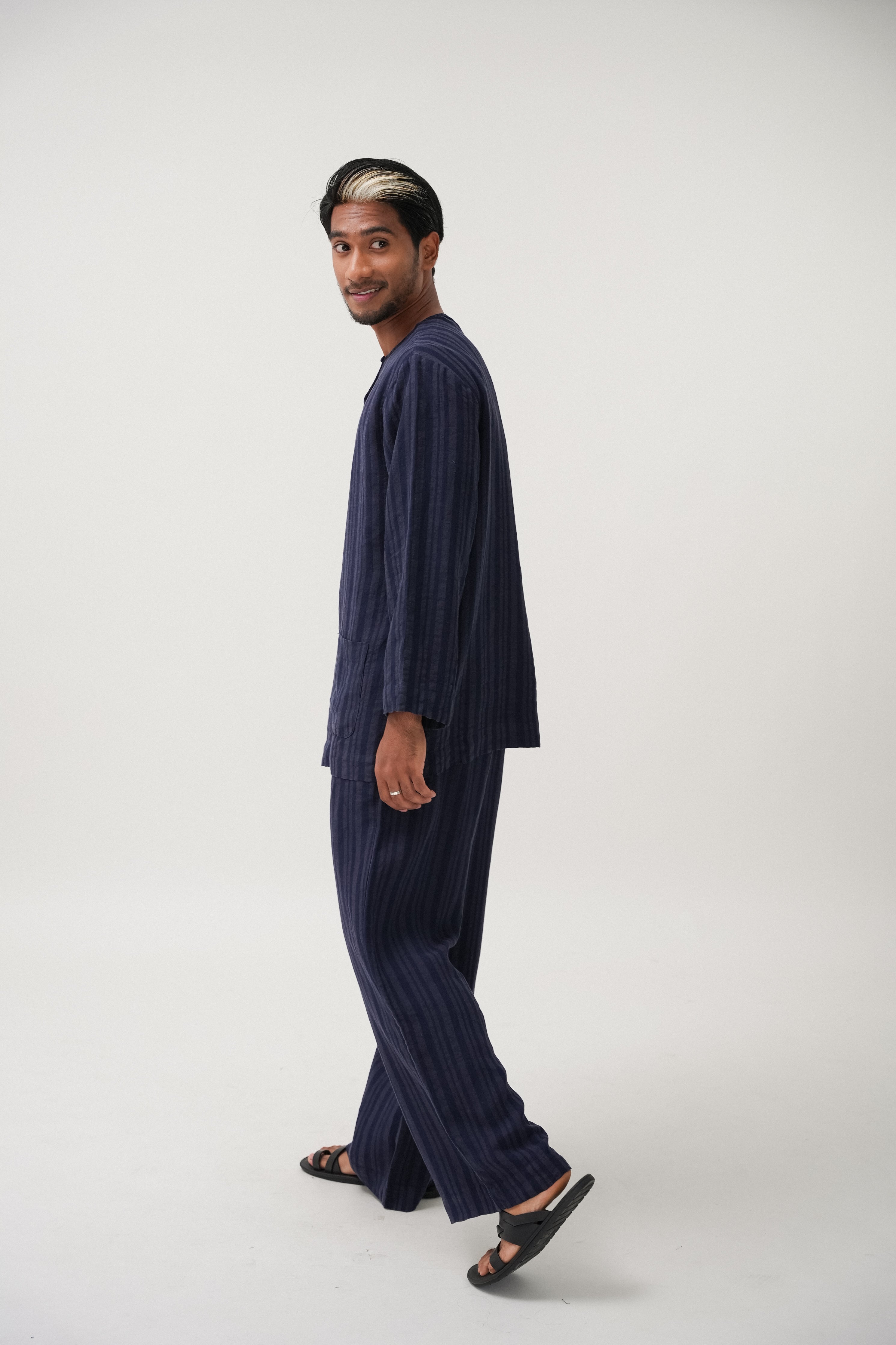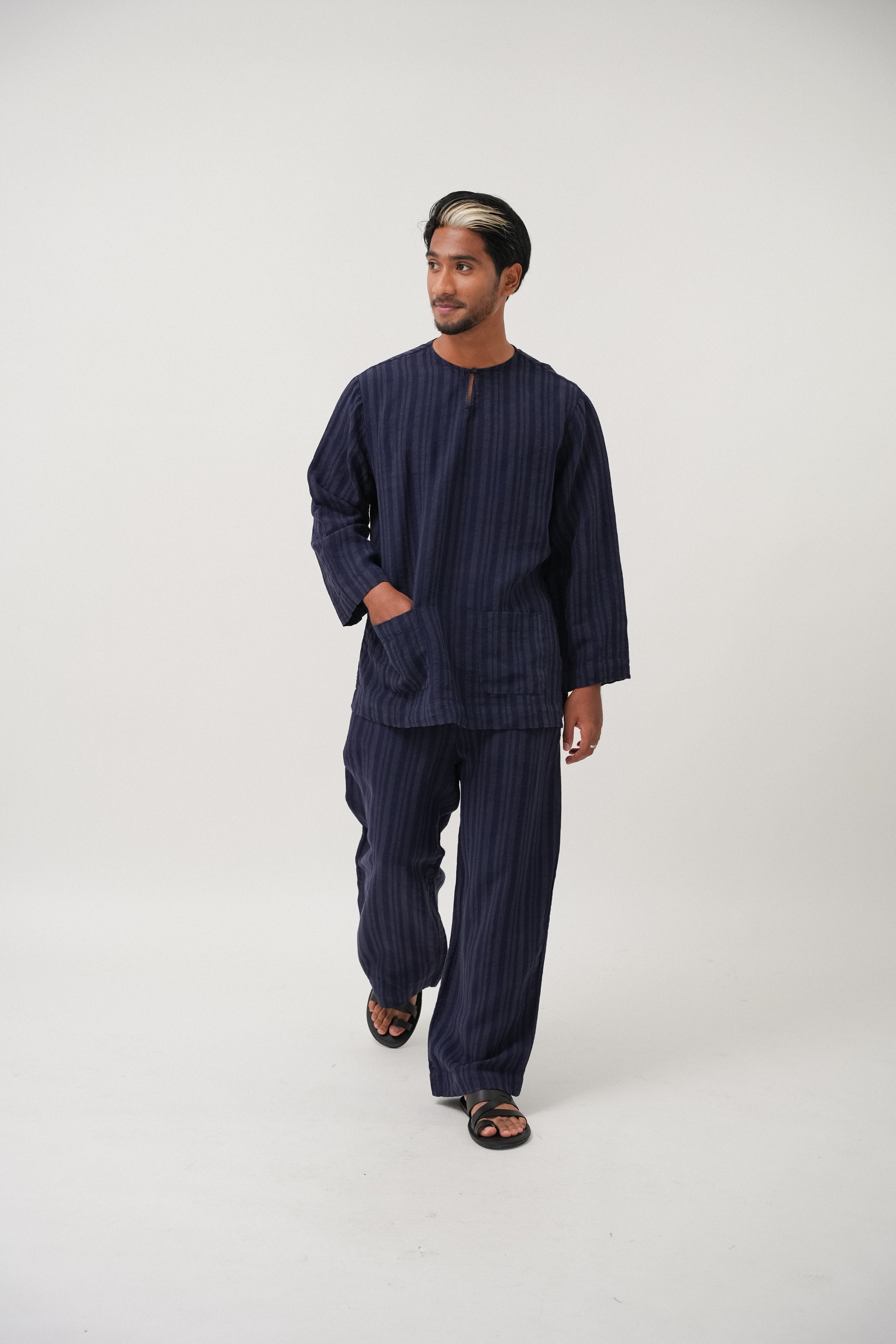 Our Gadis Luar Biasa has met her match – introducing a linen set for our Jejaka Luar Biasa! Made from 100% linen with a stripes pattern, the top features a self-covered button front opening with long sleeves.
