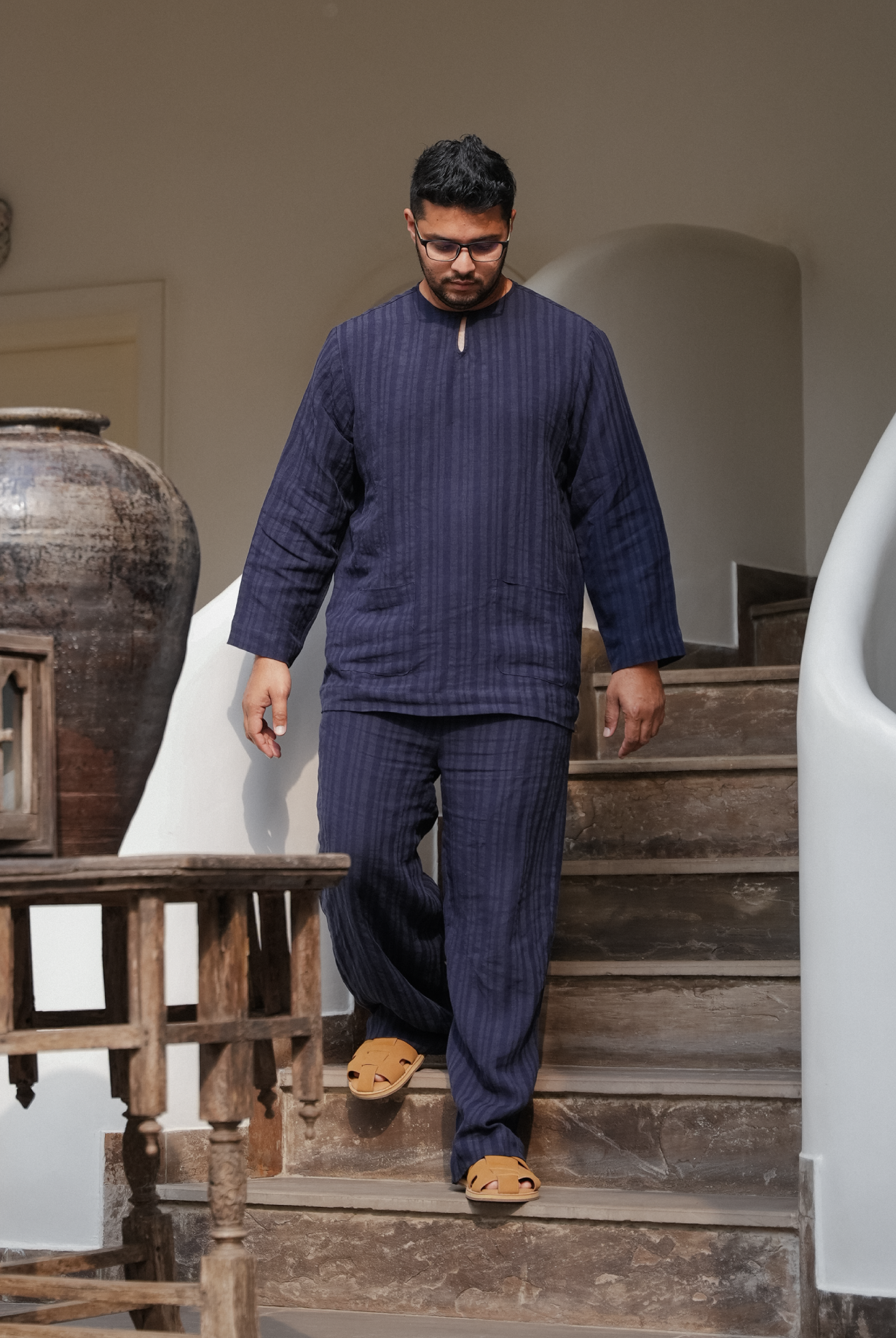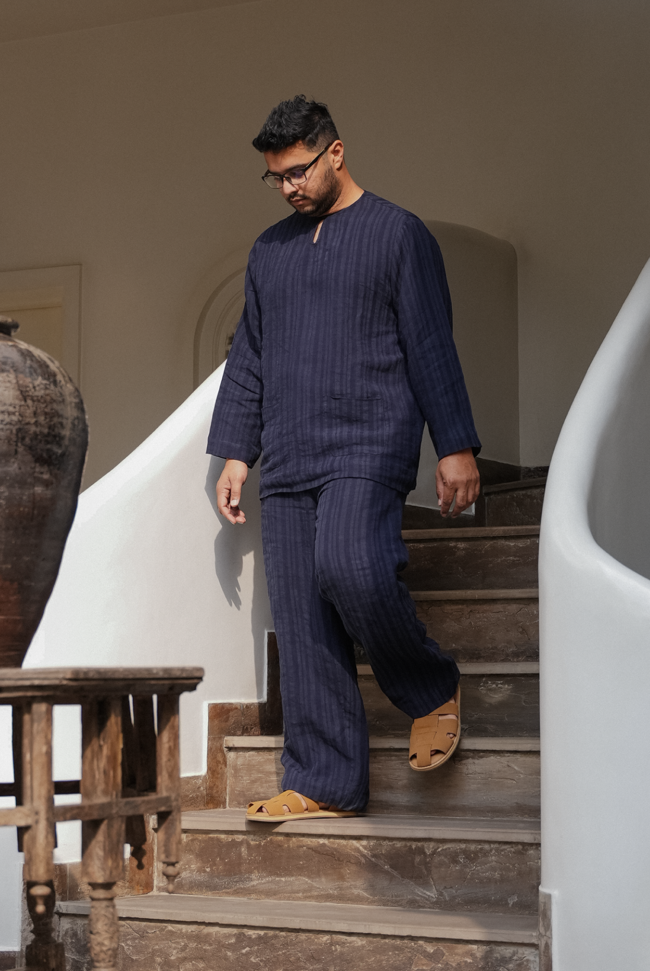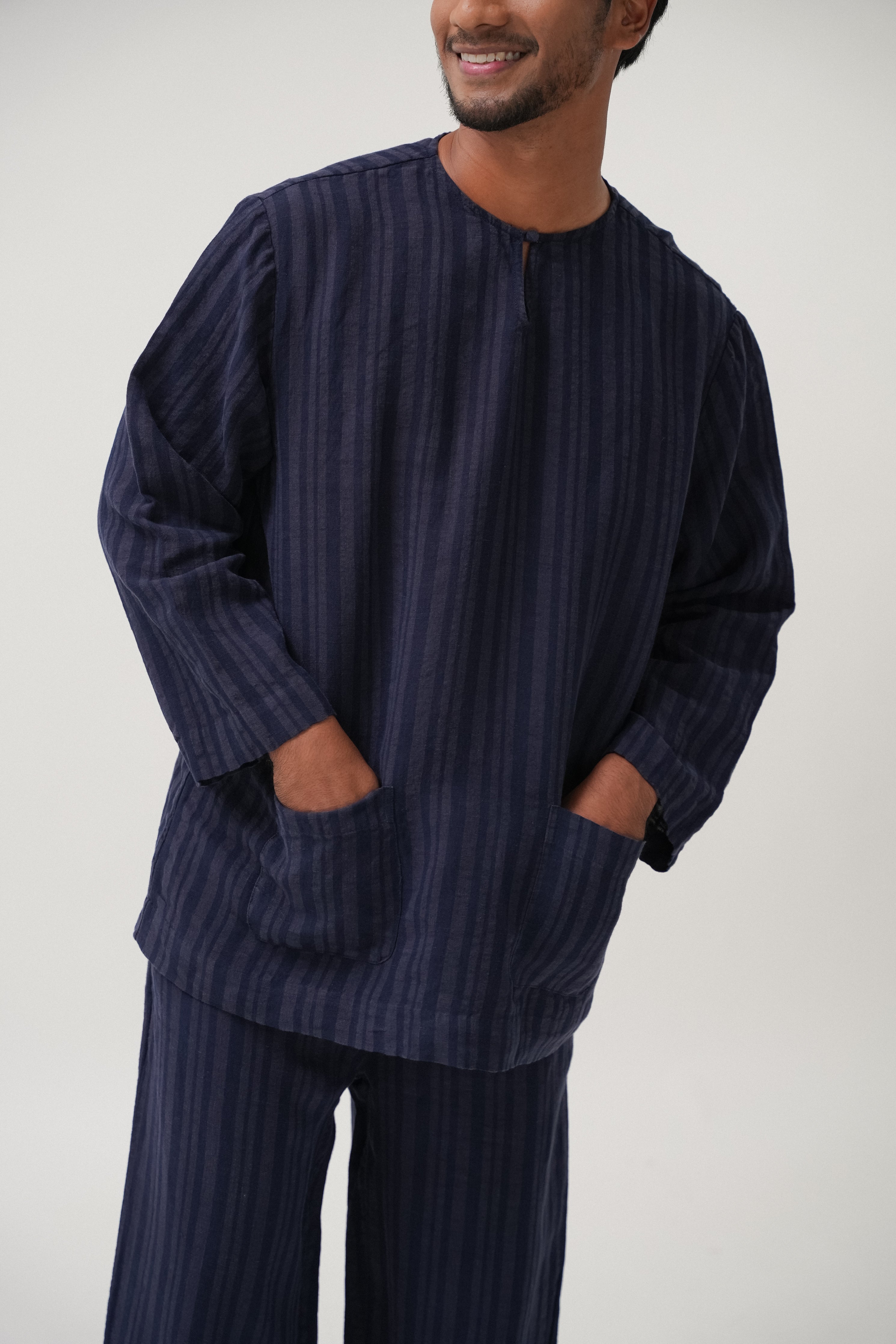 Our Gadis Luar Biasa has met her match – introducing a linen set for our Jejaka Luar Biasa! Made from 100% linen with a stripes pattern, the top features a self-covered button front opening with long sleeves.