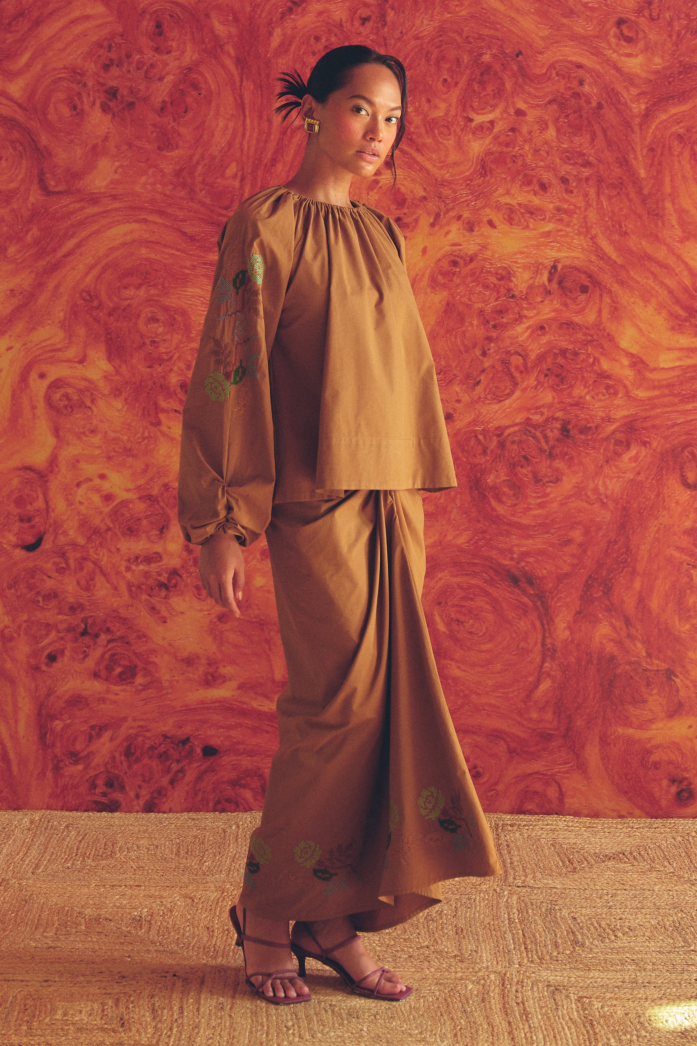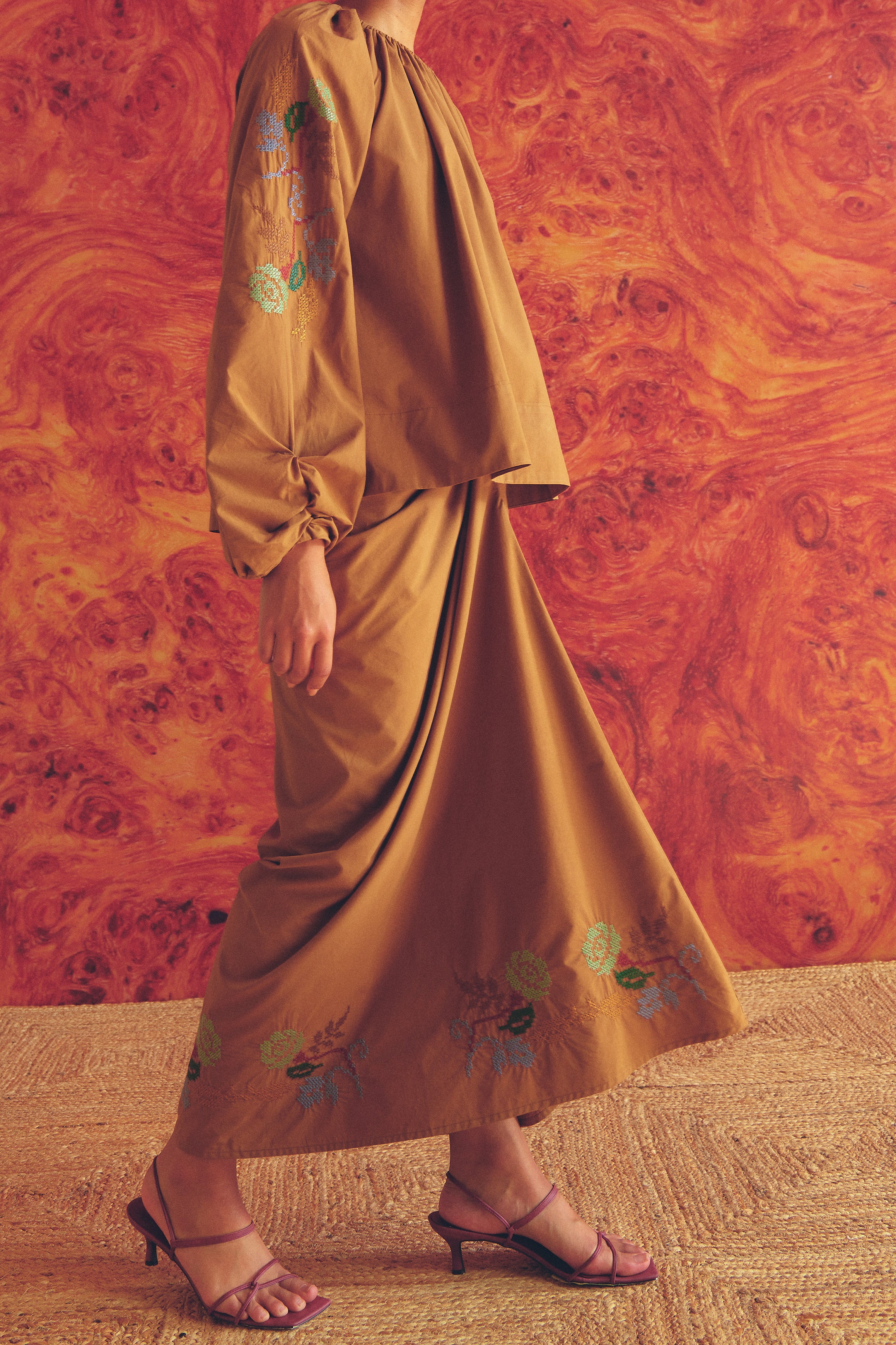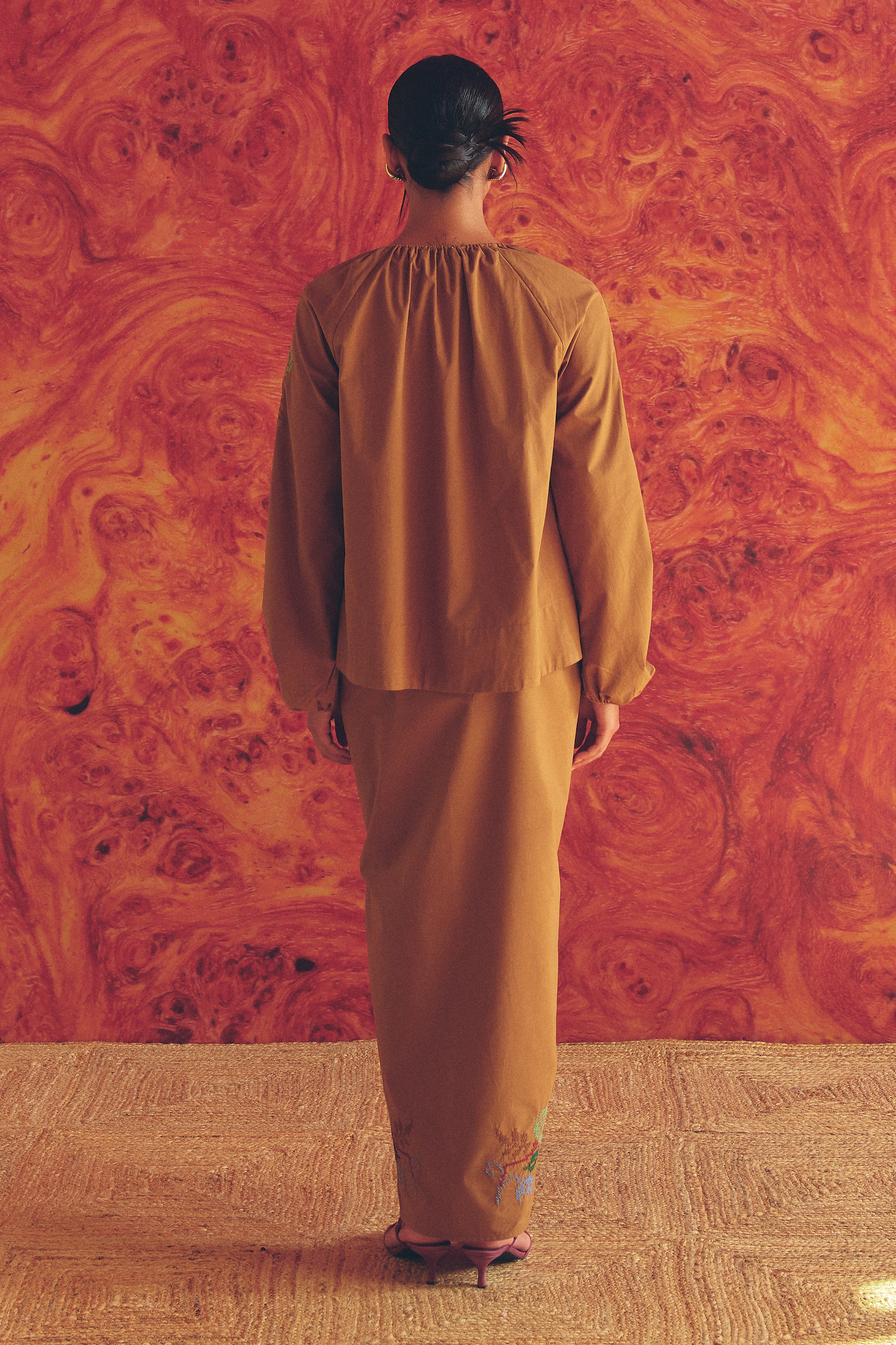 Frida Poplin Knot Skirt in Caramel