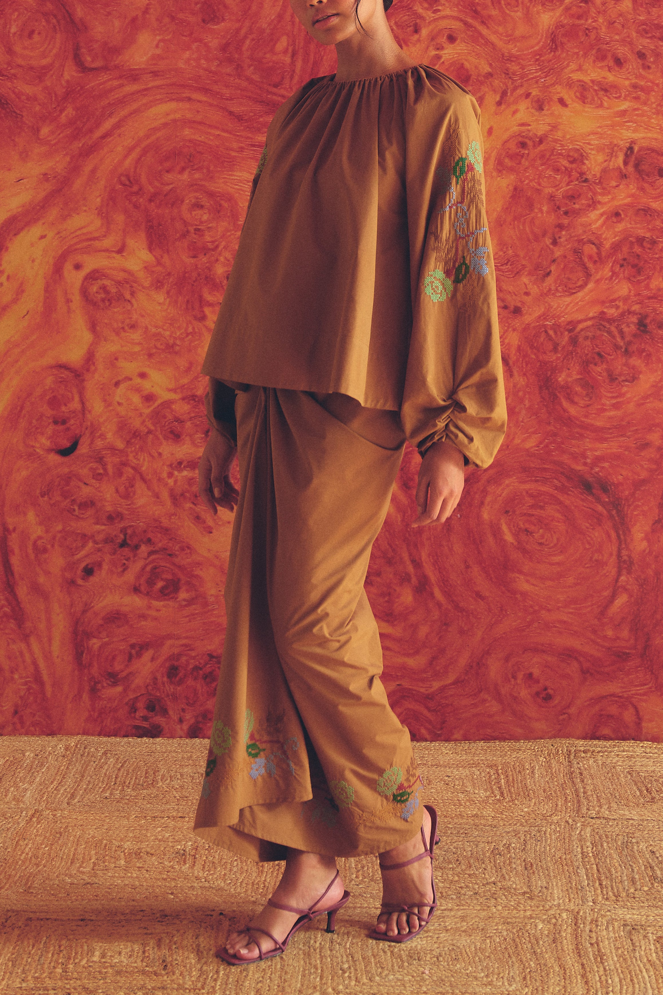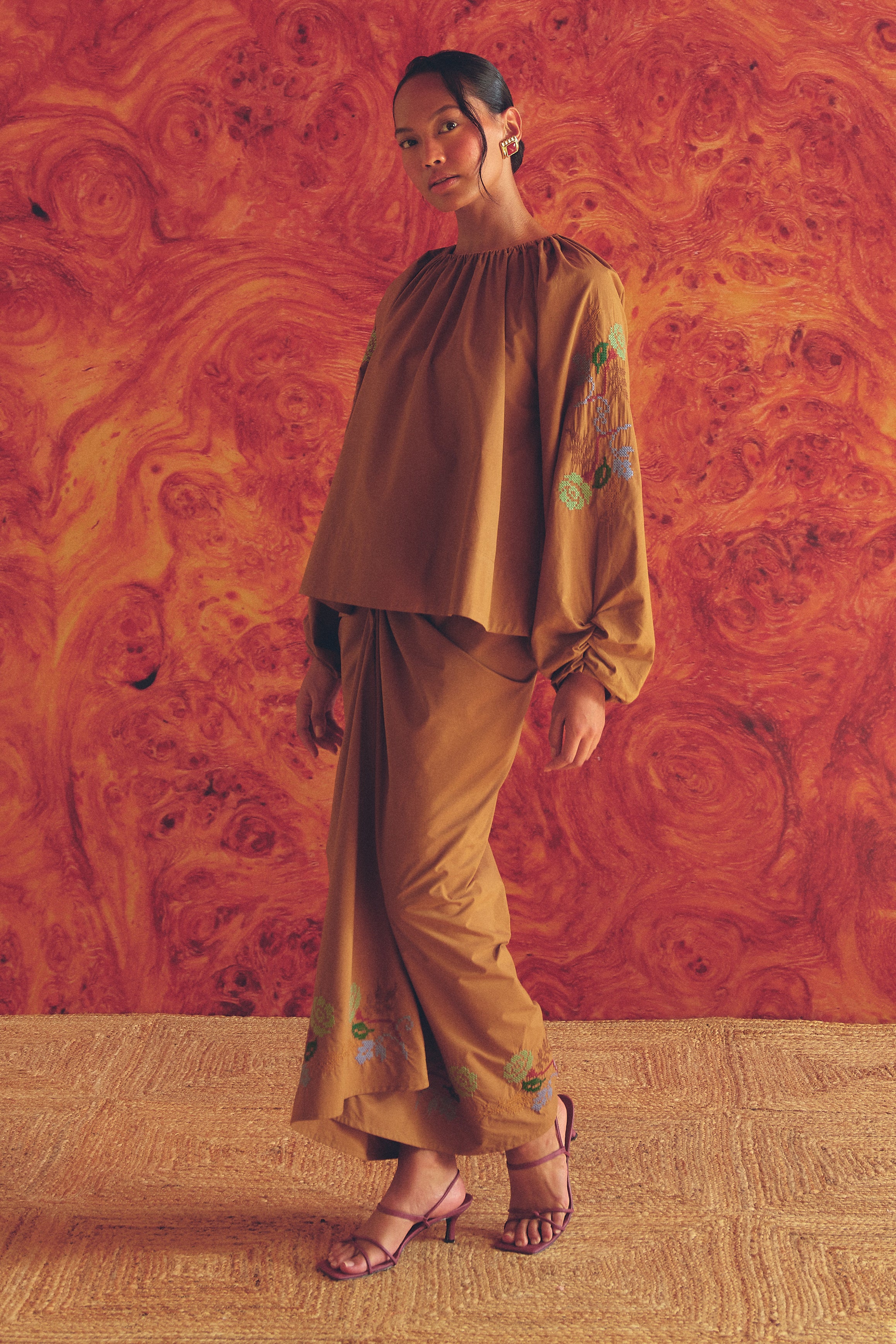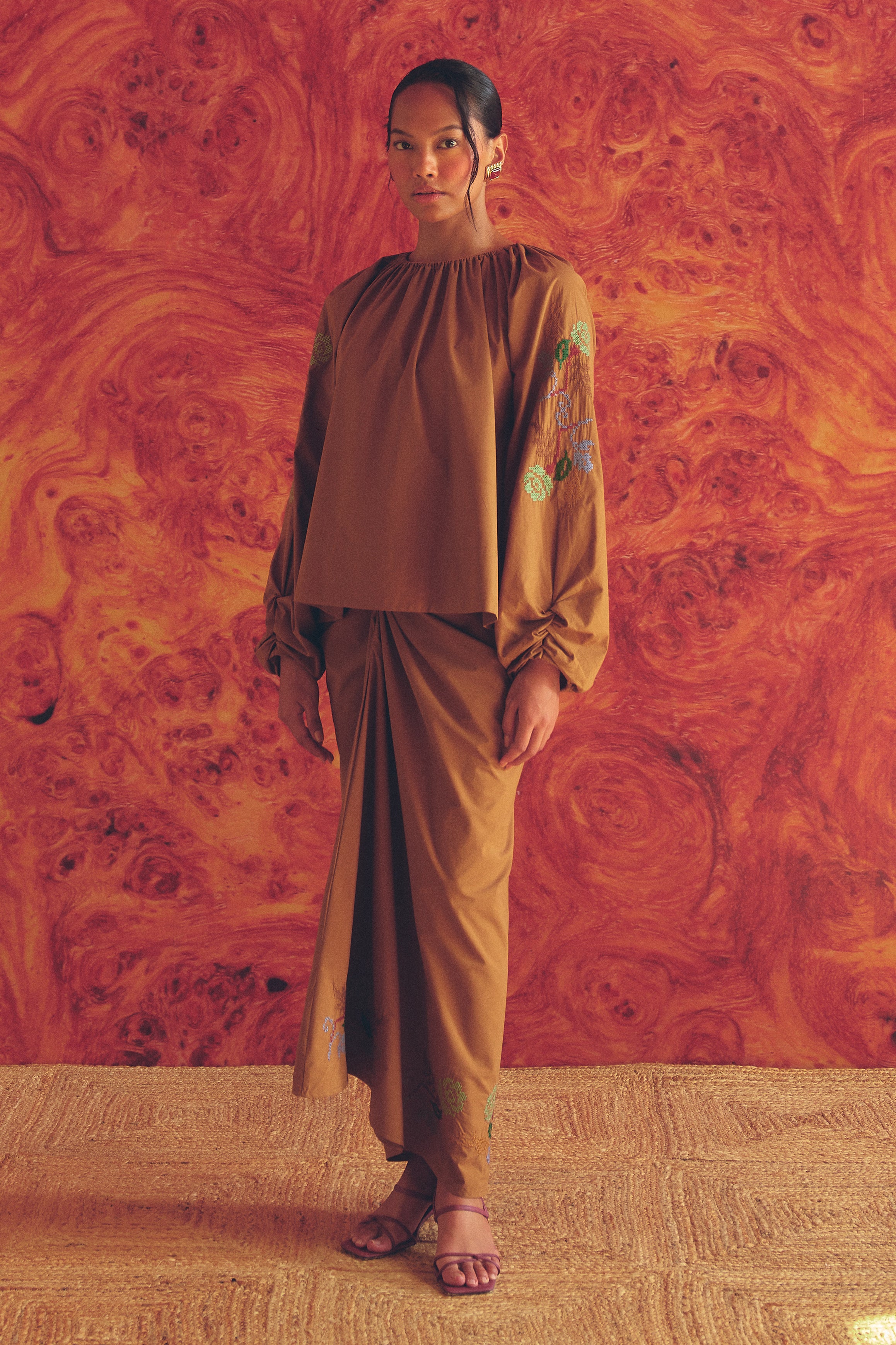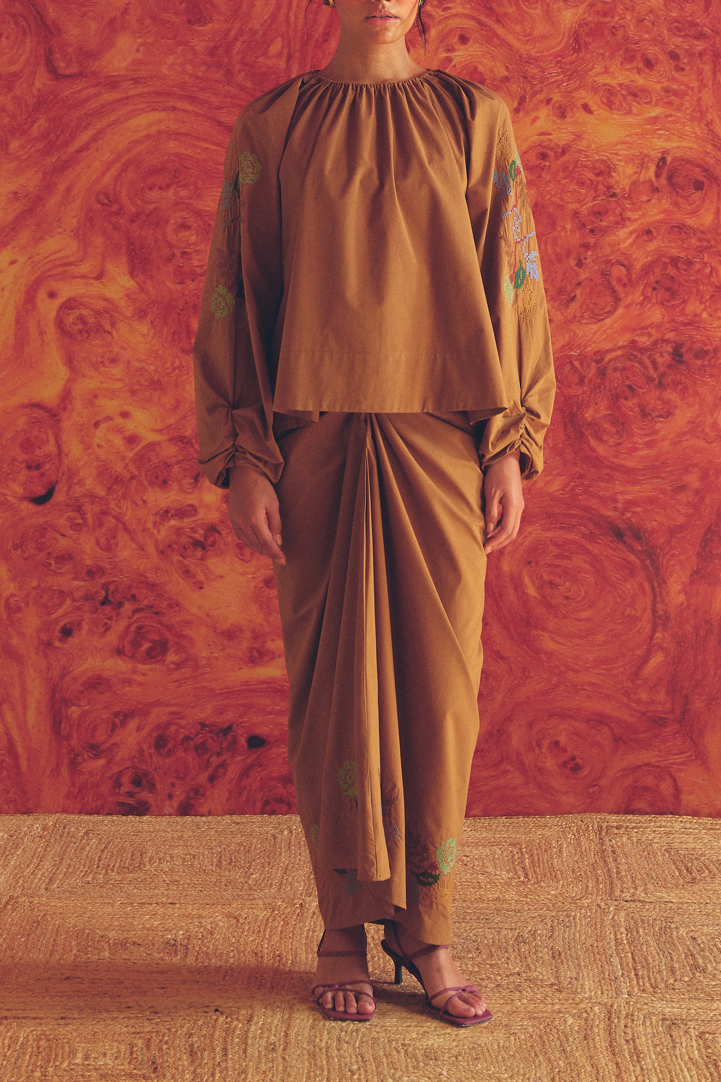Frida Poplin Knot Skirt in Caramel