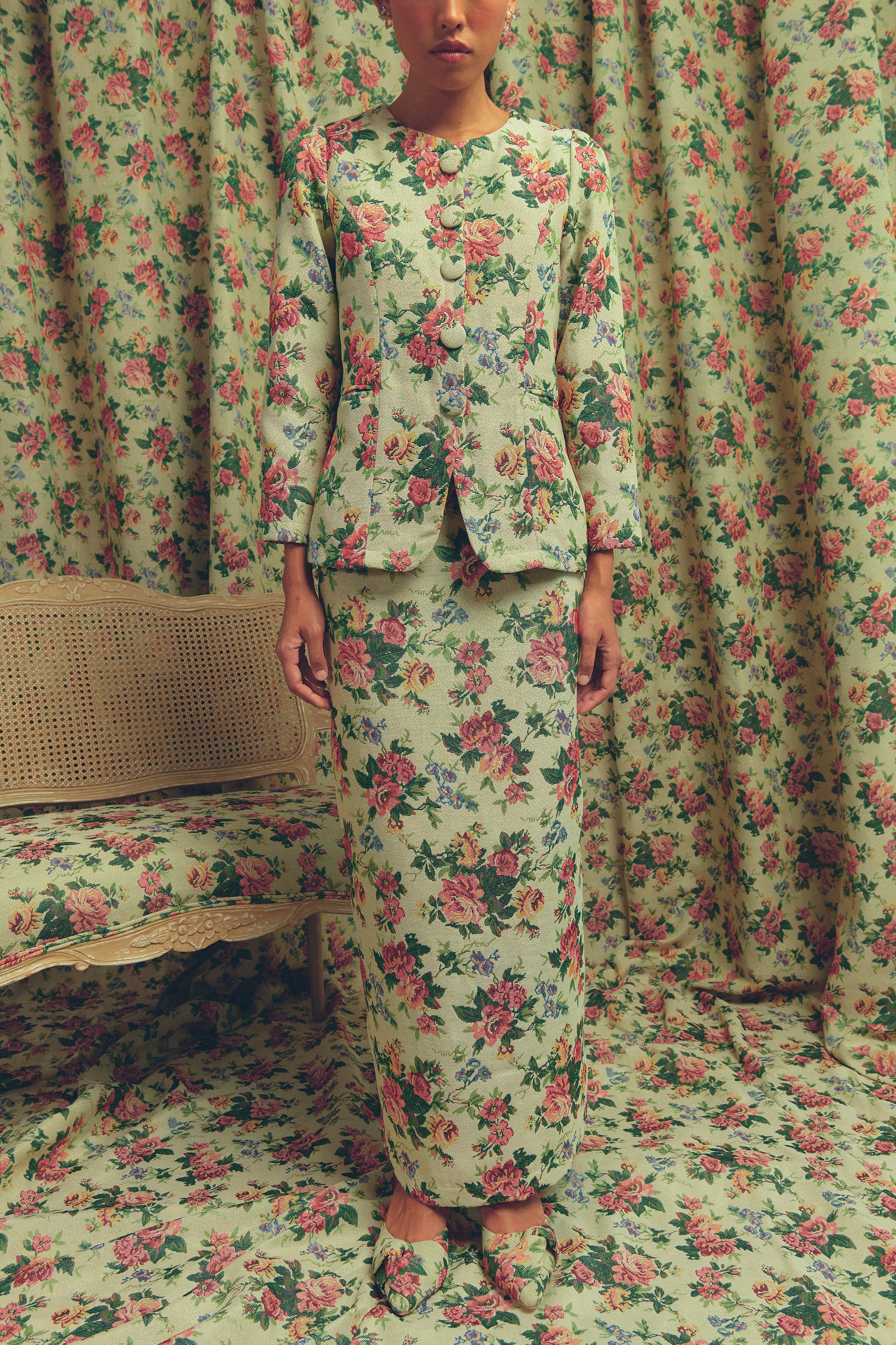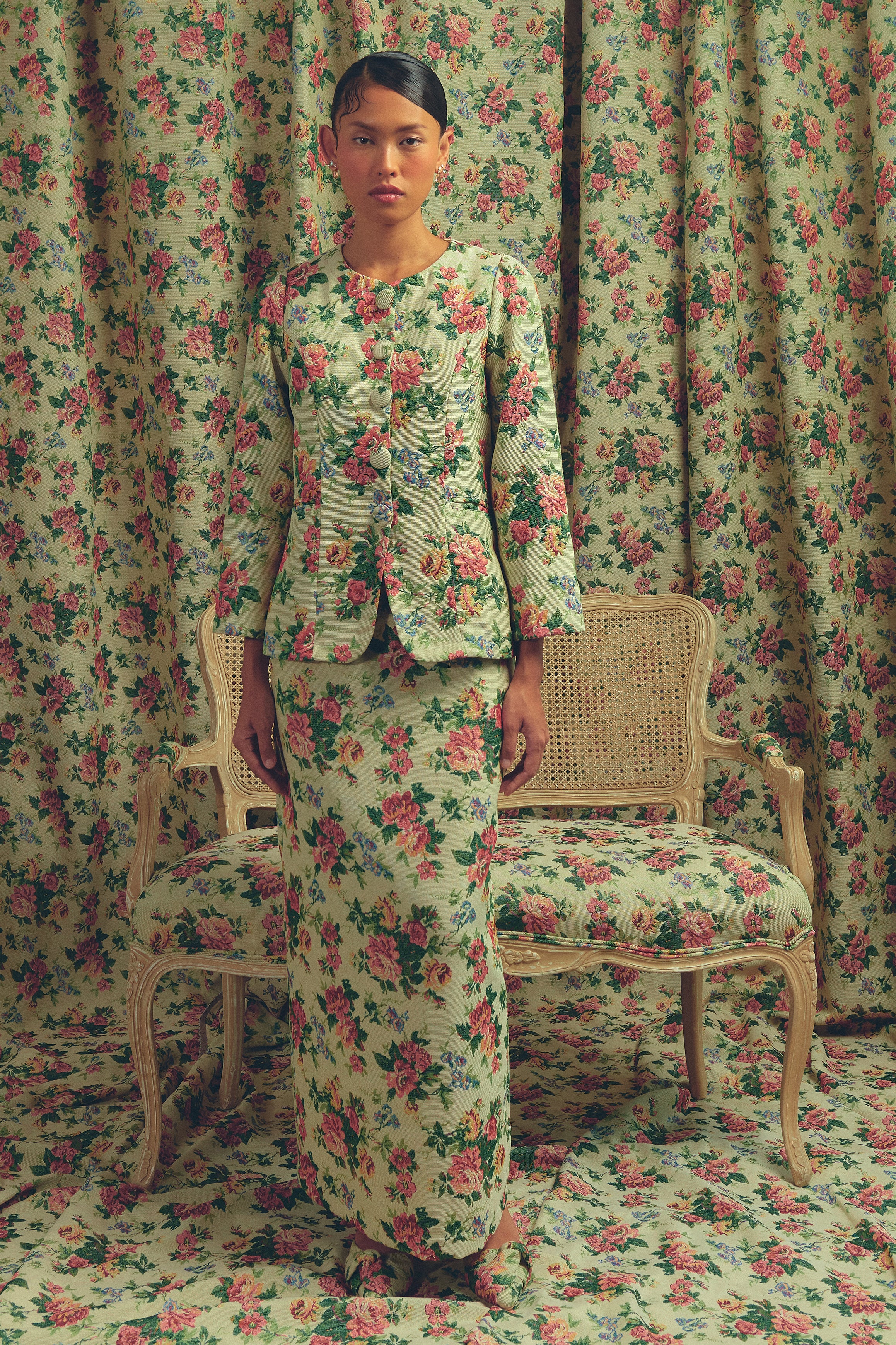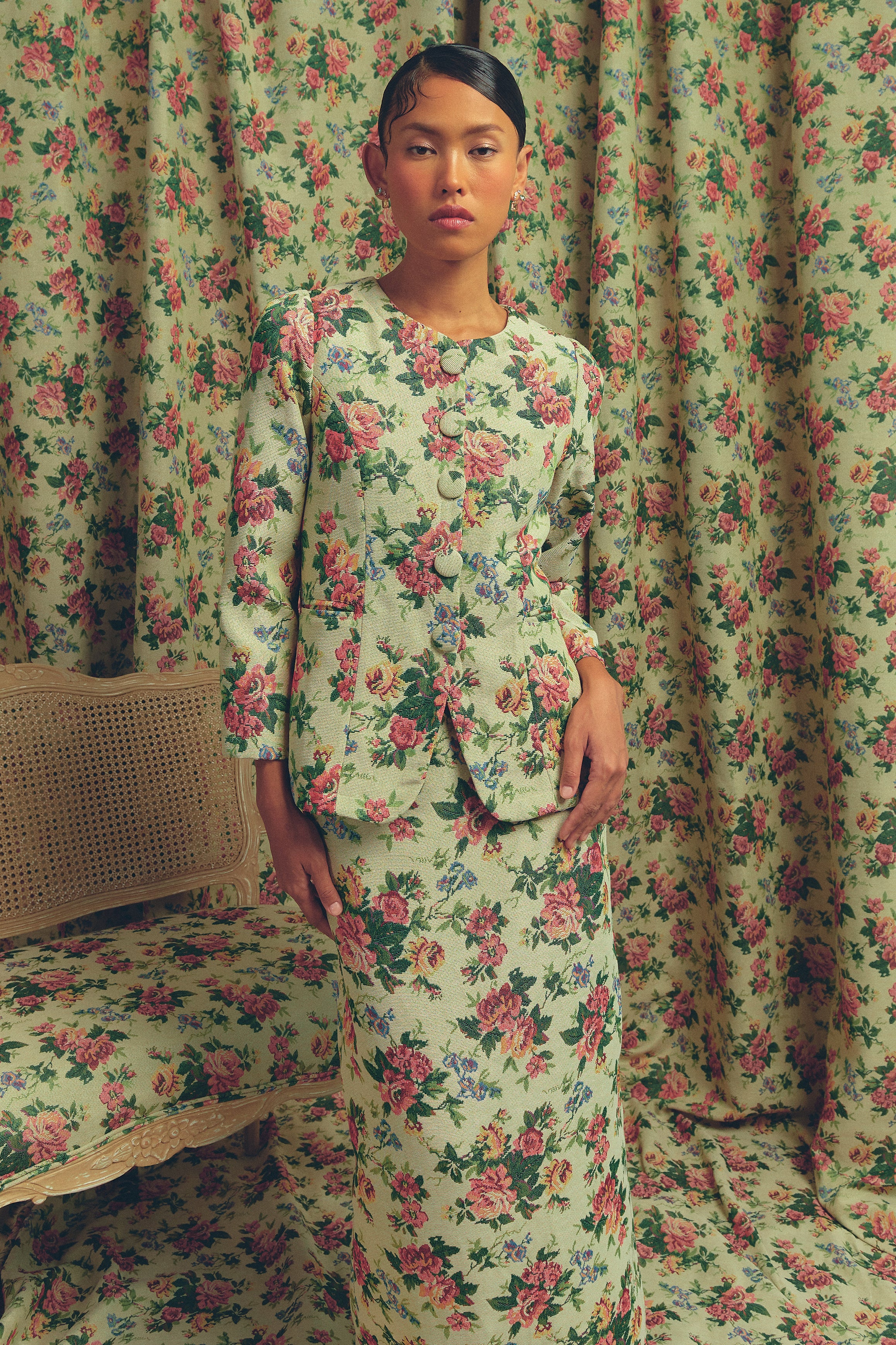A contemporary take on a classic waistcoat. A tulip-cut button-down that creates a defined silhouette. Rendered in Cotton Brocade.