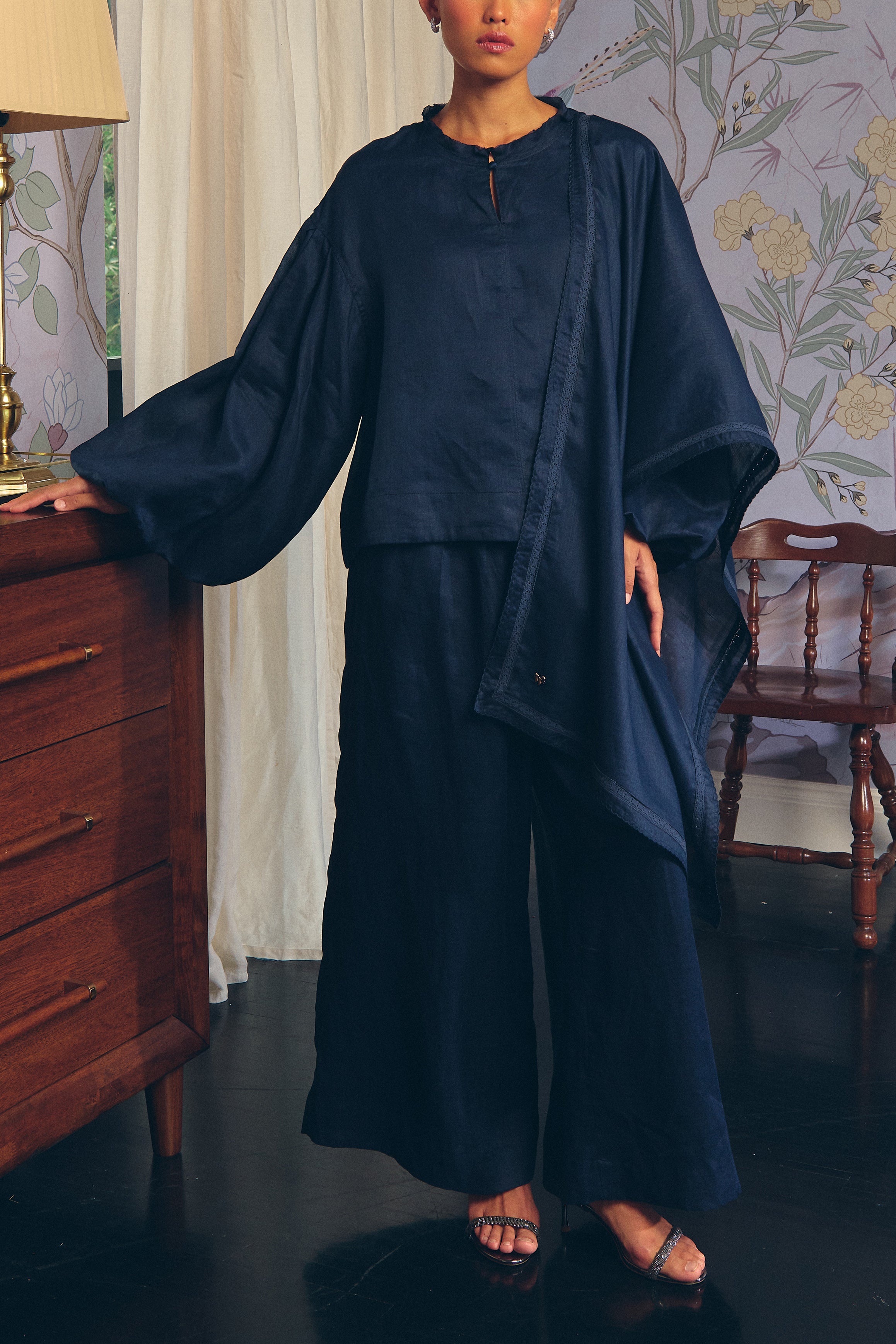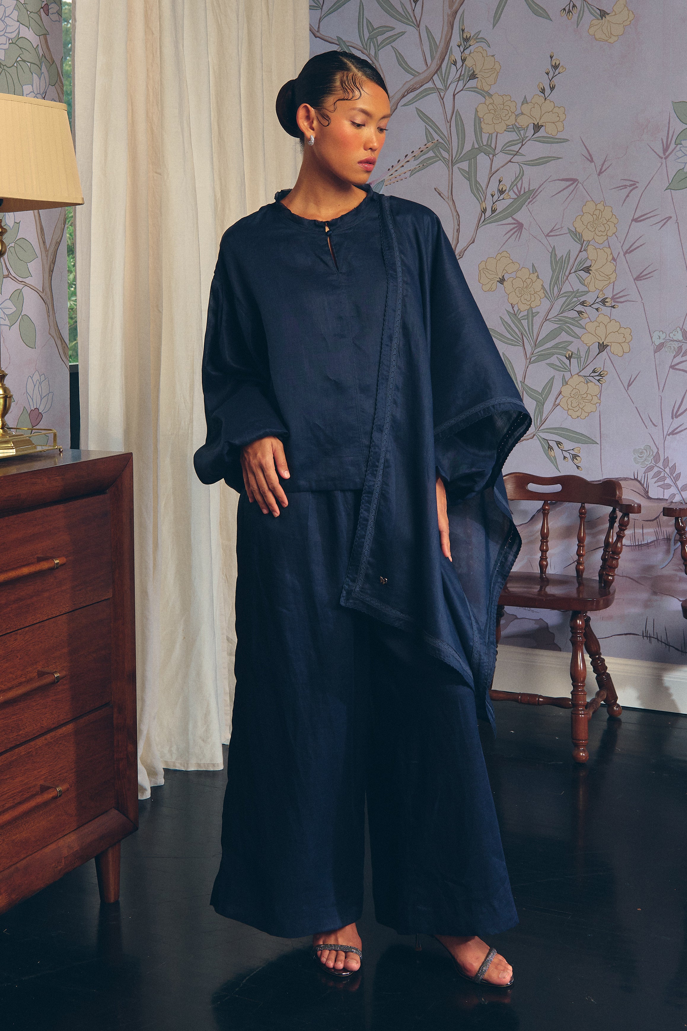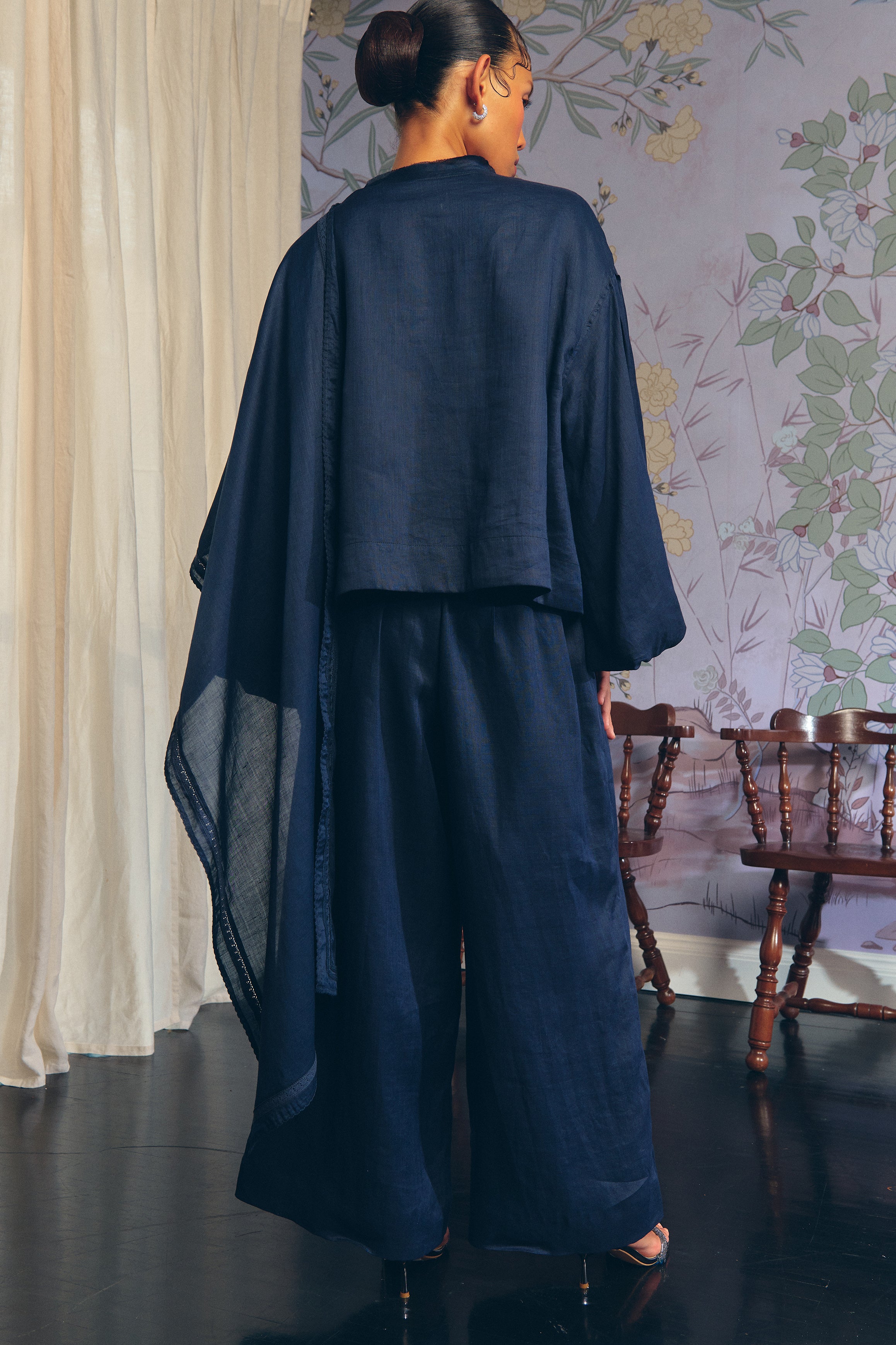 Flared high-waisted trousers, rendered in Ramie. Fully lined in cotton. Finished with side pockets, and a side zip closure.