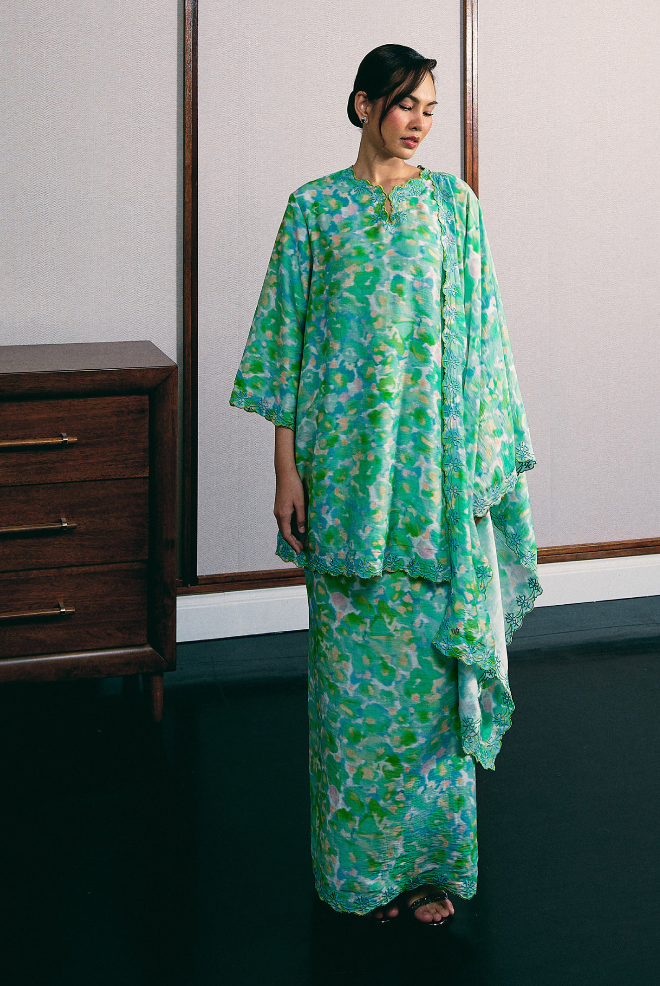 Serene Kurung Set with Selendang in Meadow