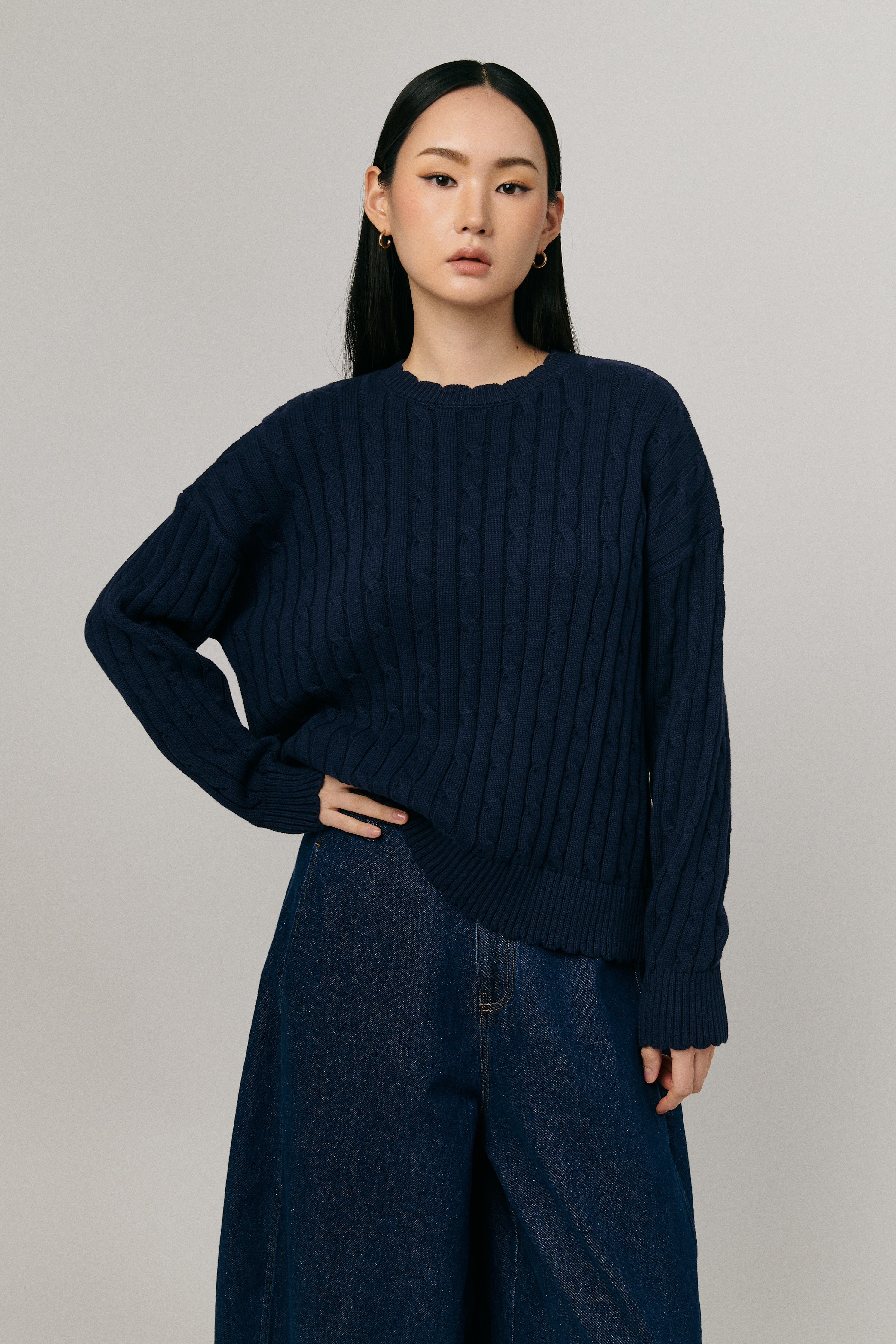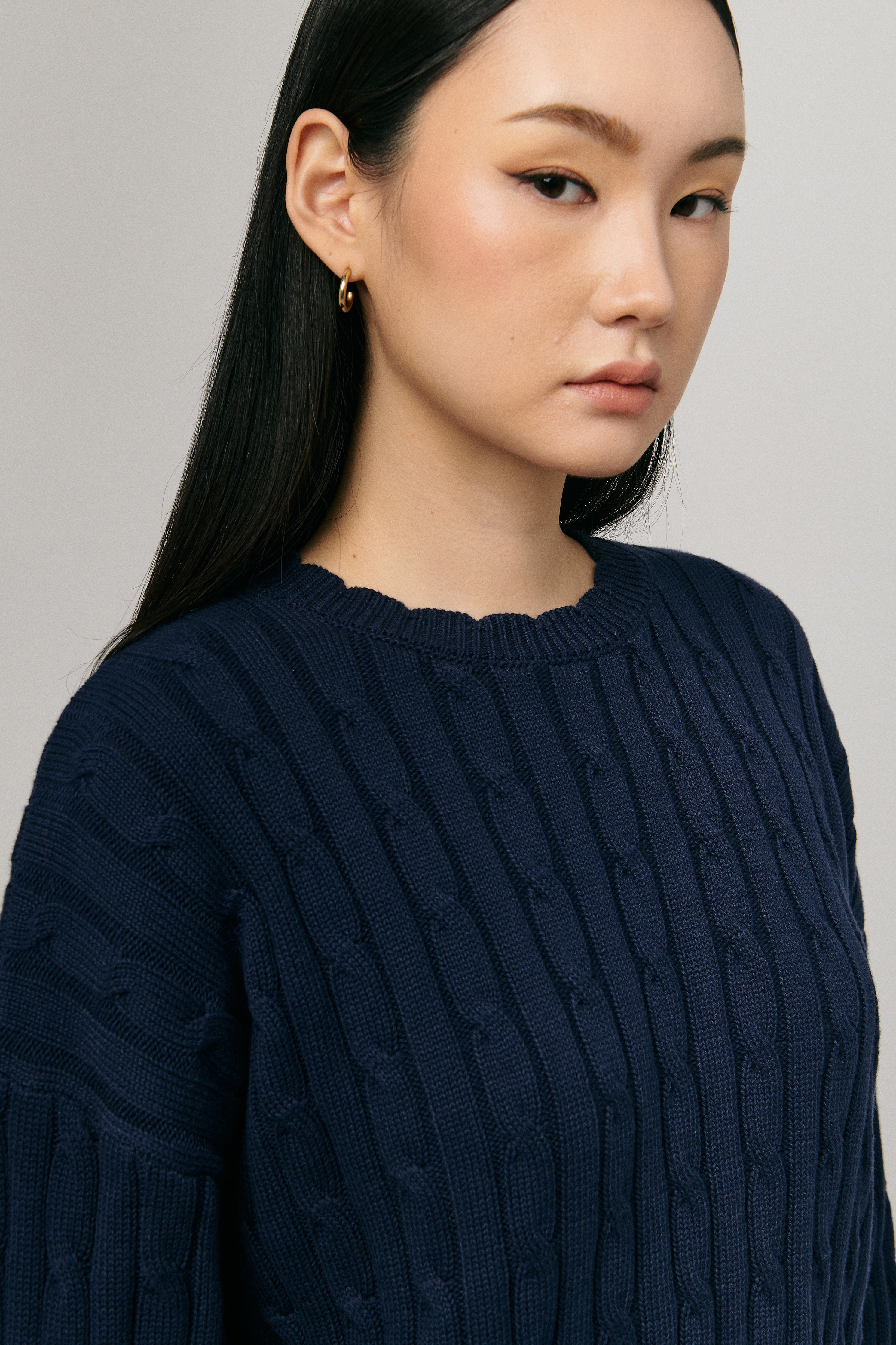 A plush slip-on, textured knit for warmth and comfort. Rendered in cotton, with scallop ribbing. A true-to-size fit.