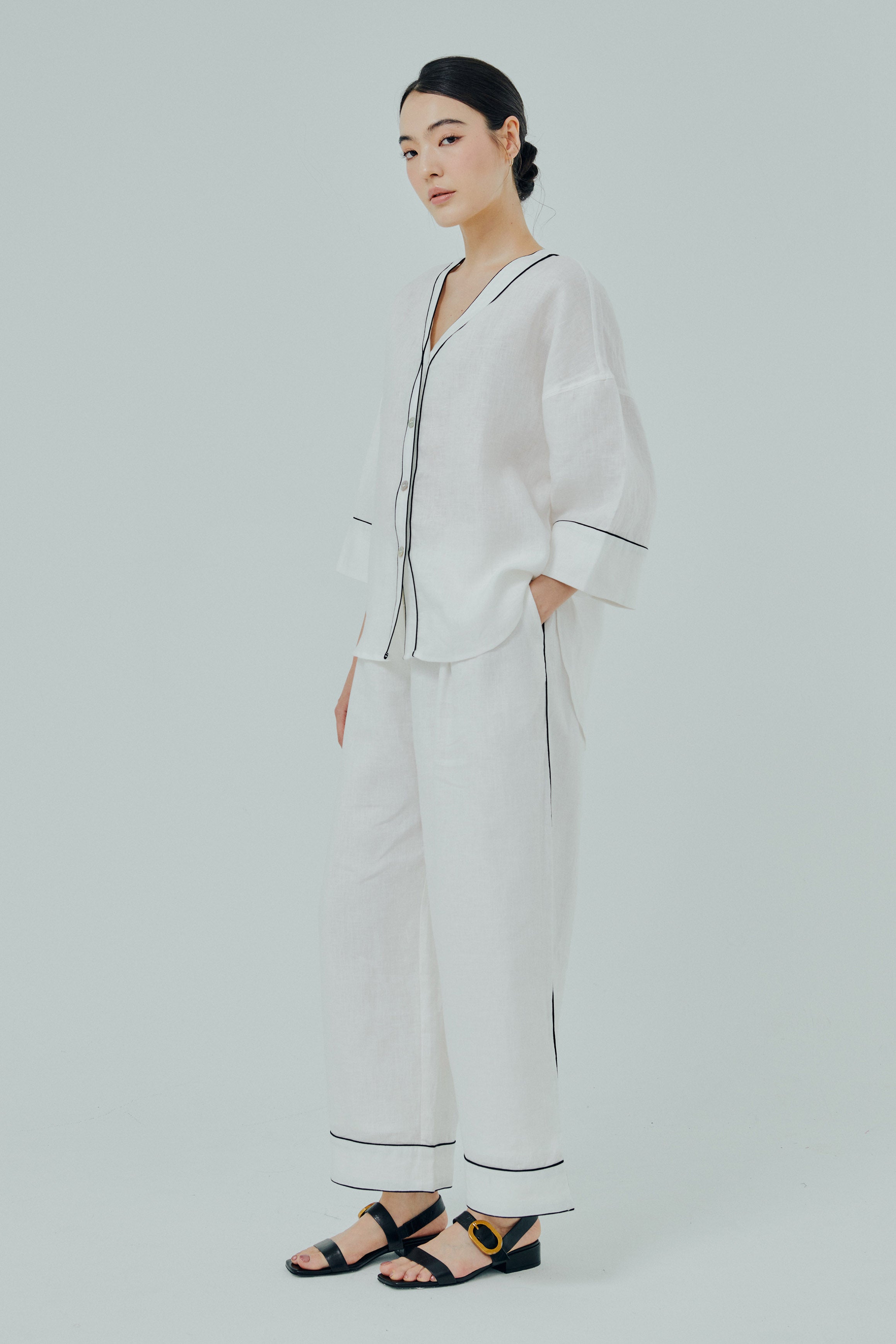 Due to linen’s natural charm, there will be variations in the texture of the fabric. Linen garments may experience slight shrinkage (3%-4%) after the first wash.