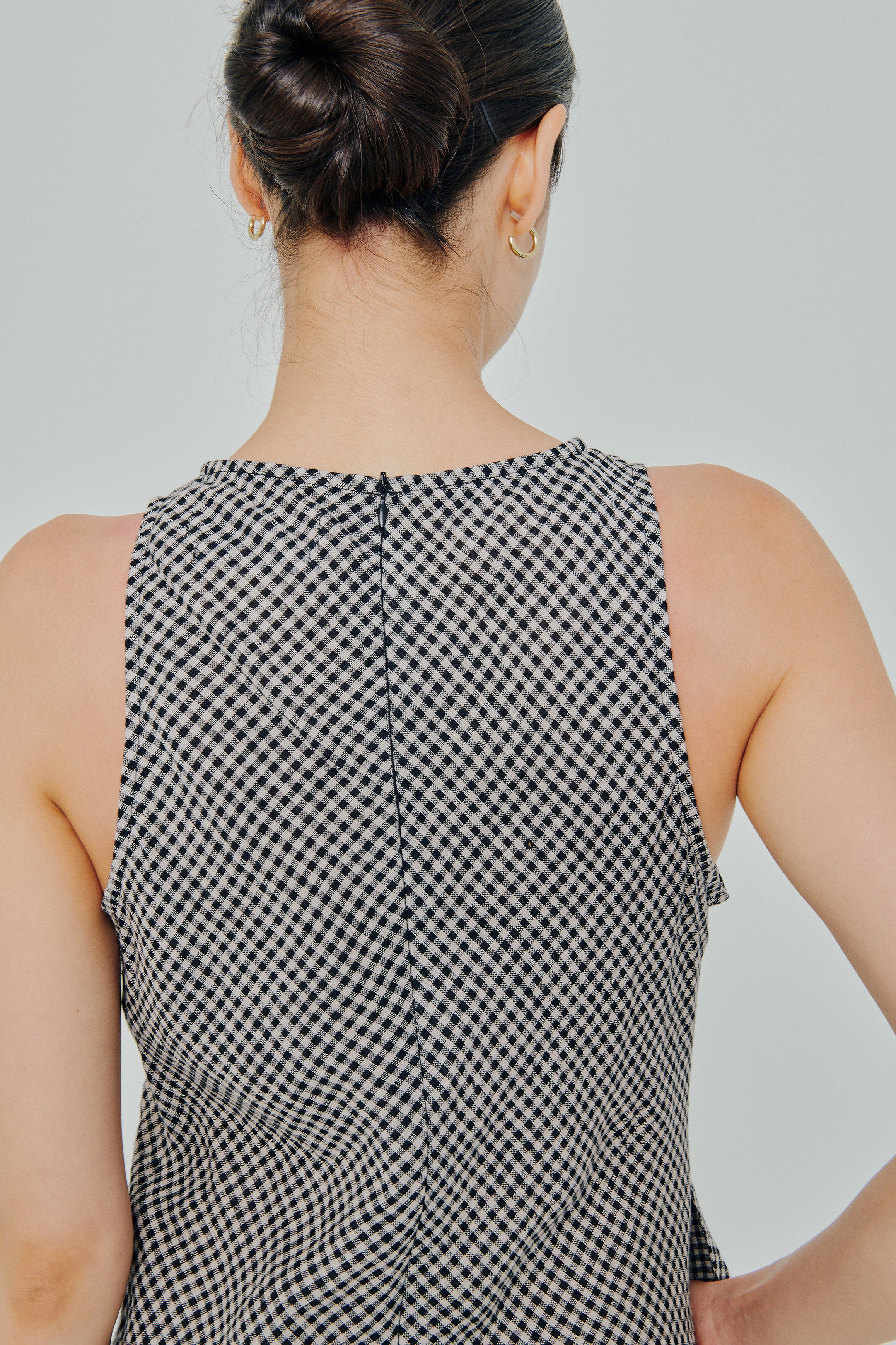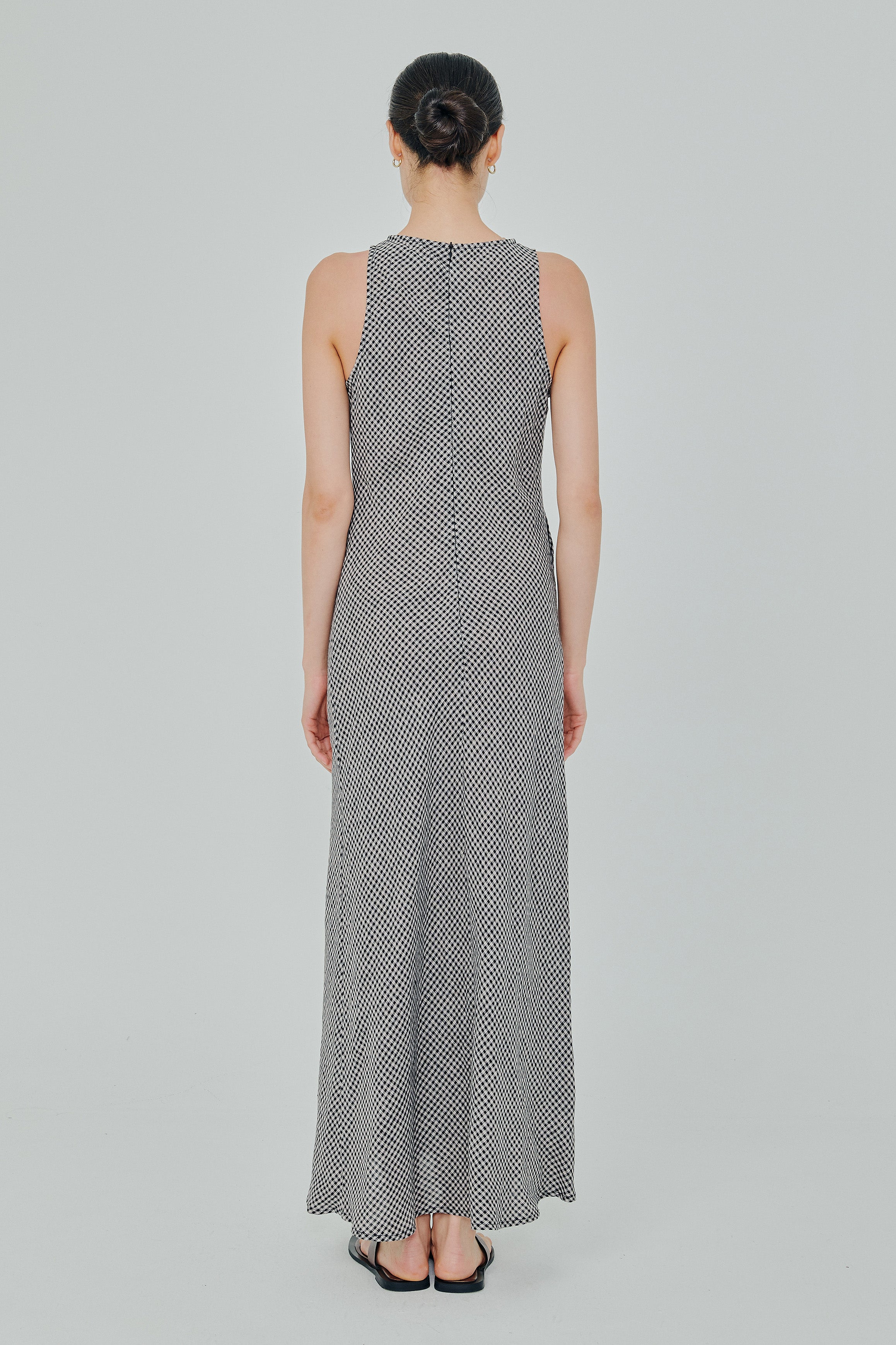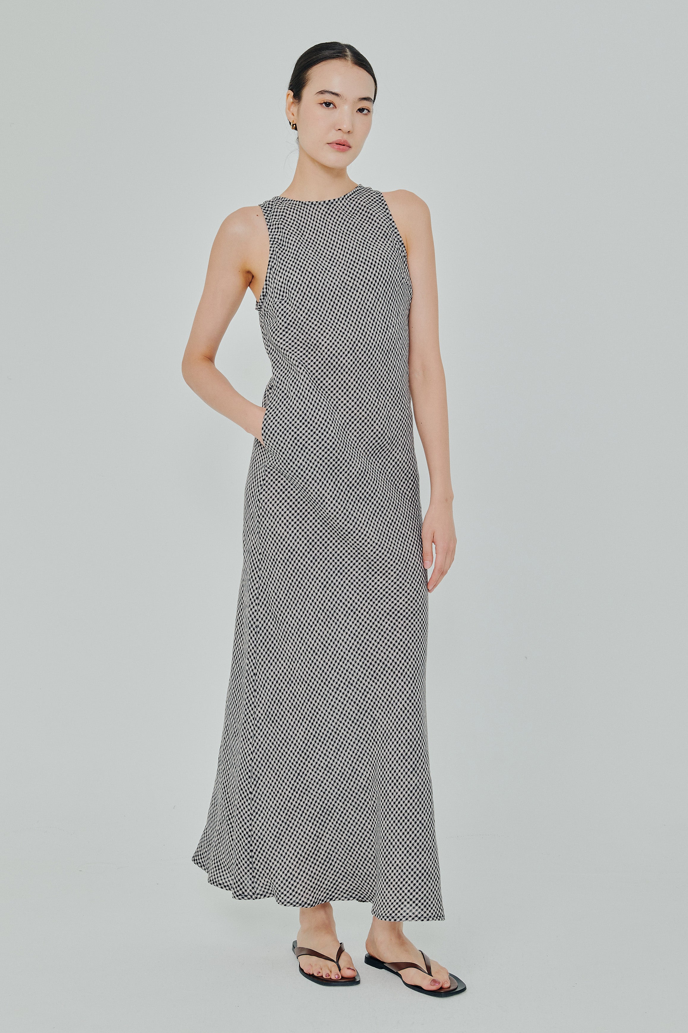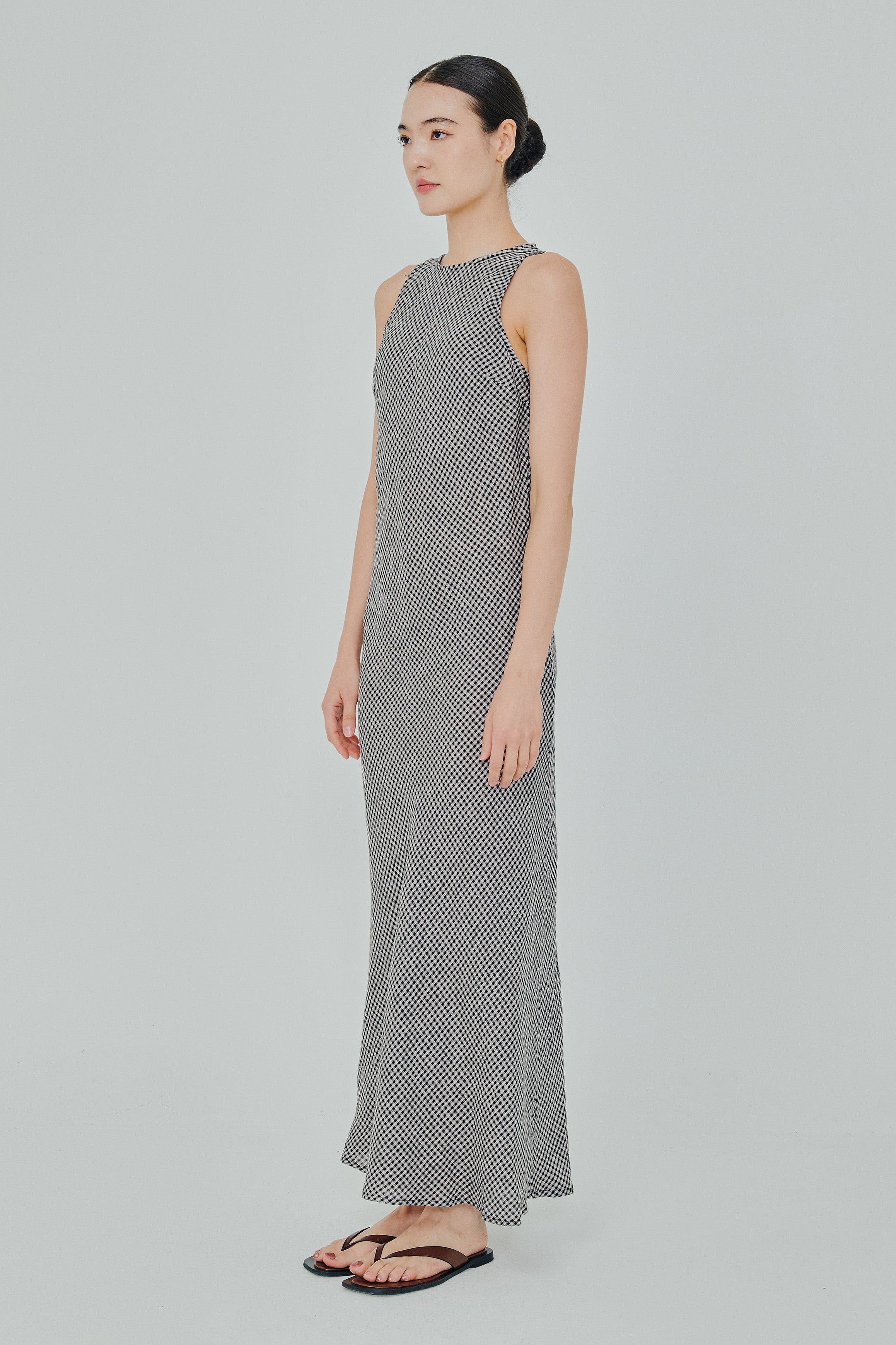 Regular fit sleeveless dress, cut on the bias for a flattering drape. Rendered in linen.