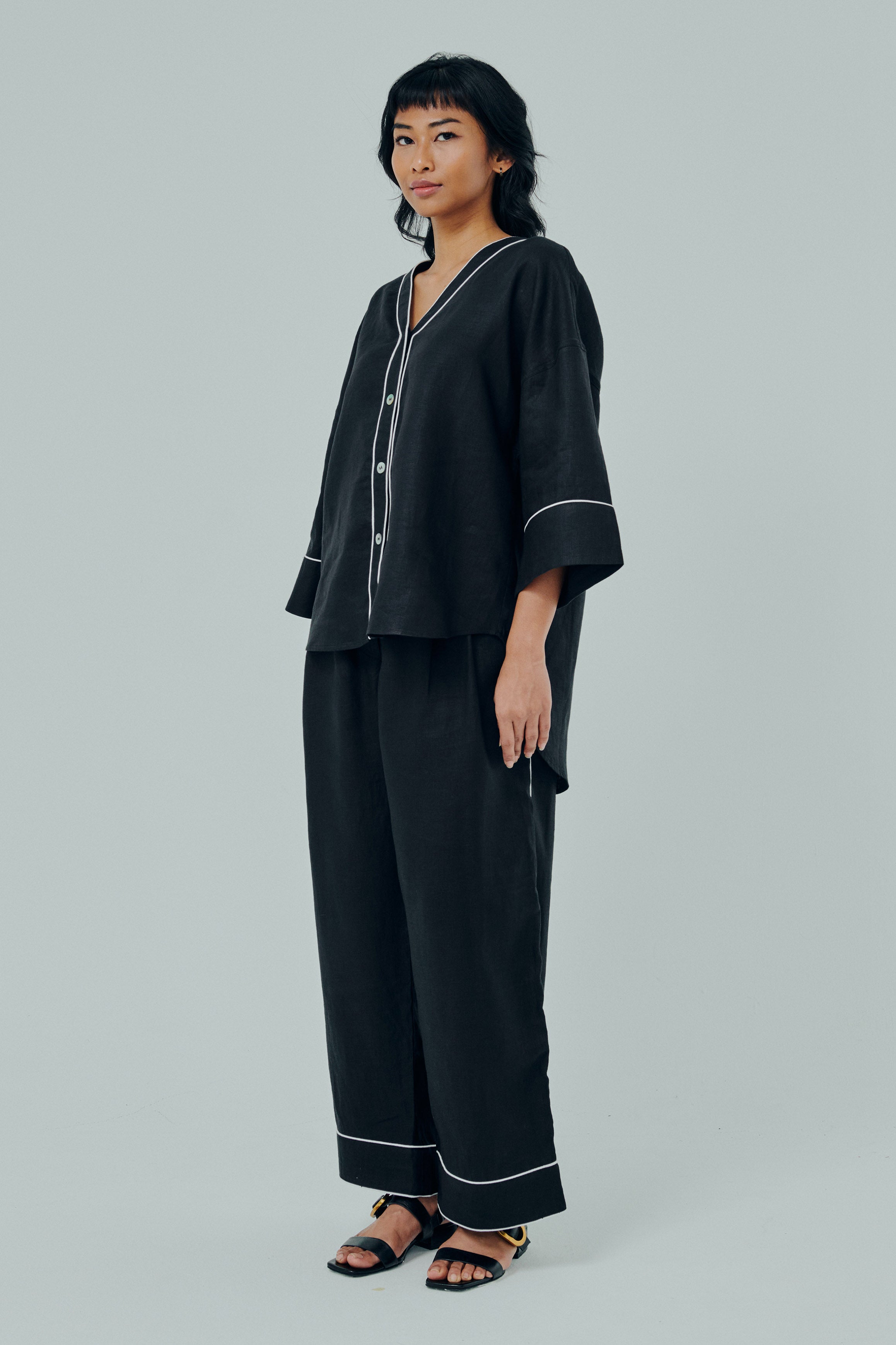 Sculptor Linen Outline Shirt in Black