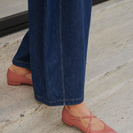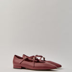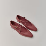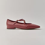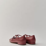A cross-strap ballerina flat, reimagined in genuine matte leather. Designed with slim criss-cross straps and secured with a gold-finish hook and buckle closure. Finished with a textured anti-slip outsole for everyday stability. Best suited for narrow feet.