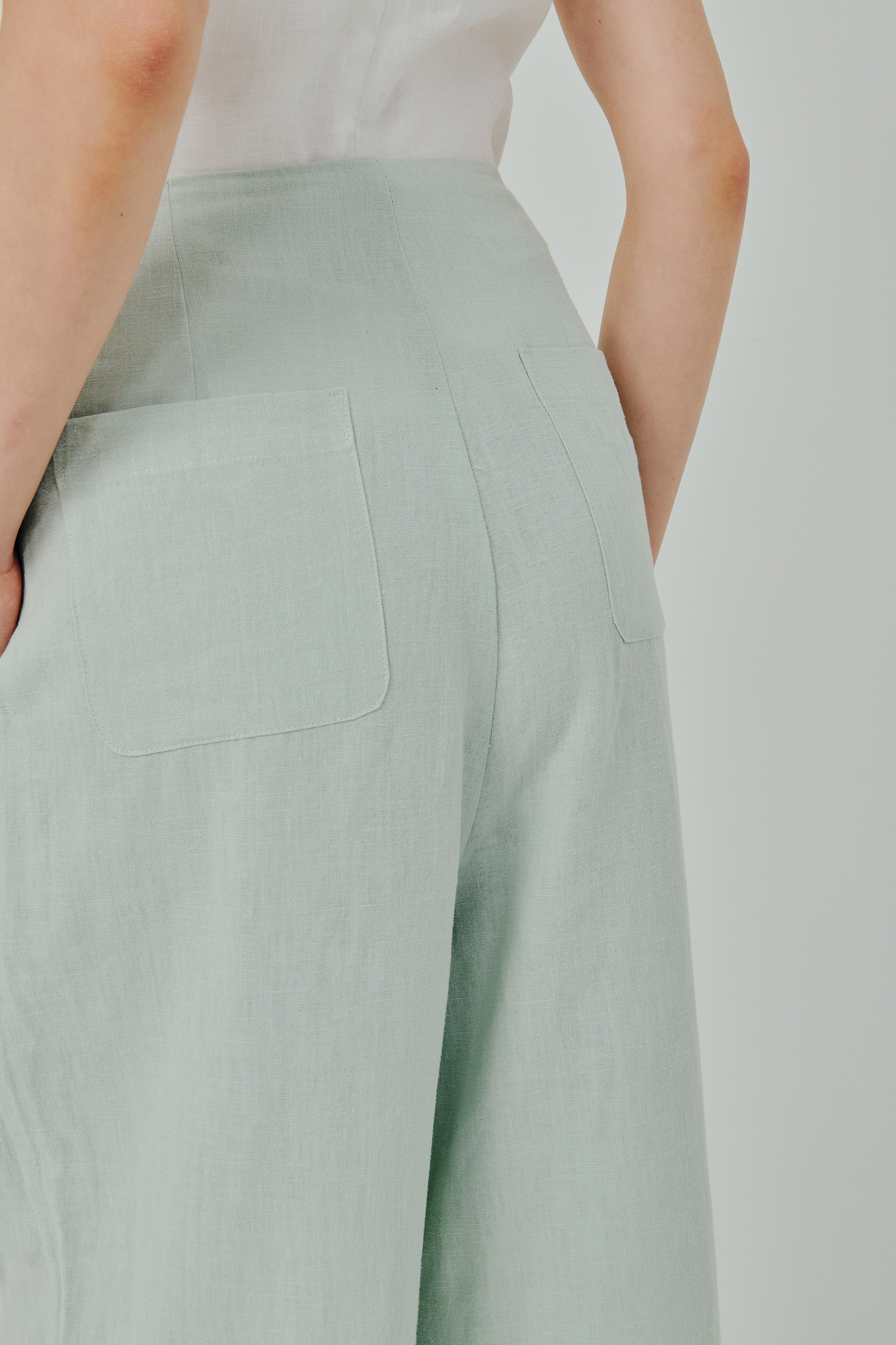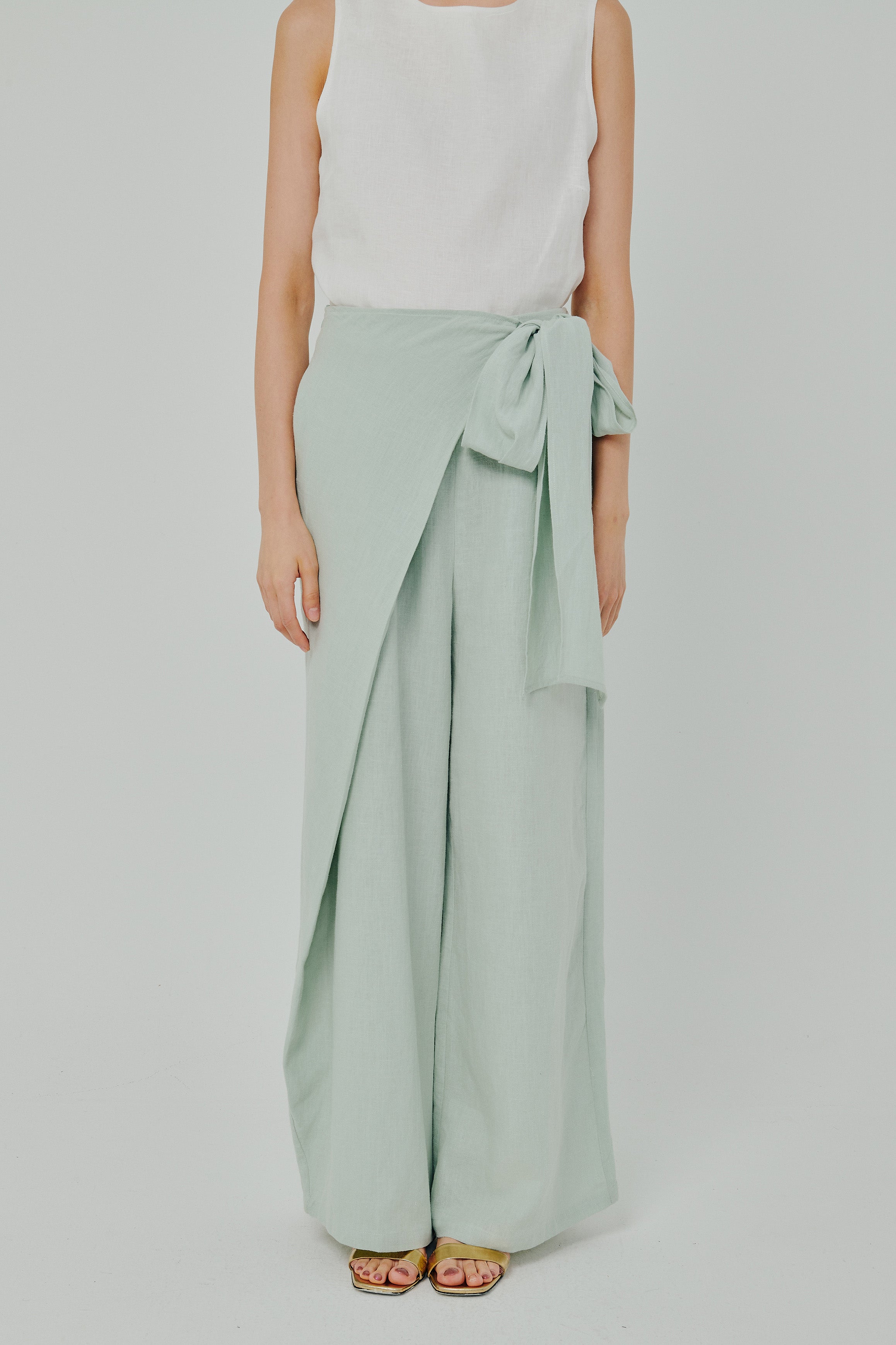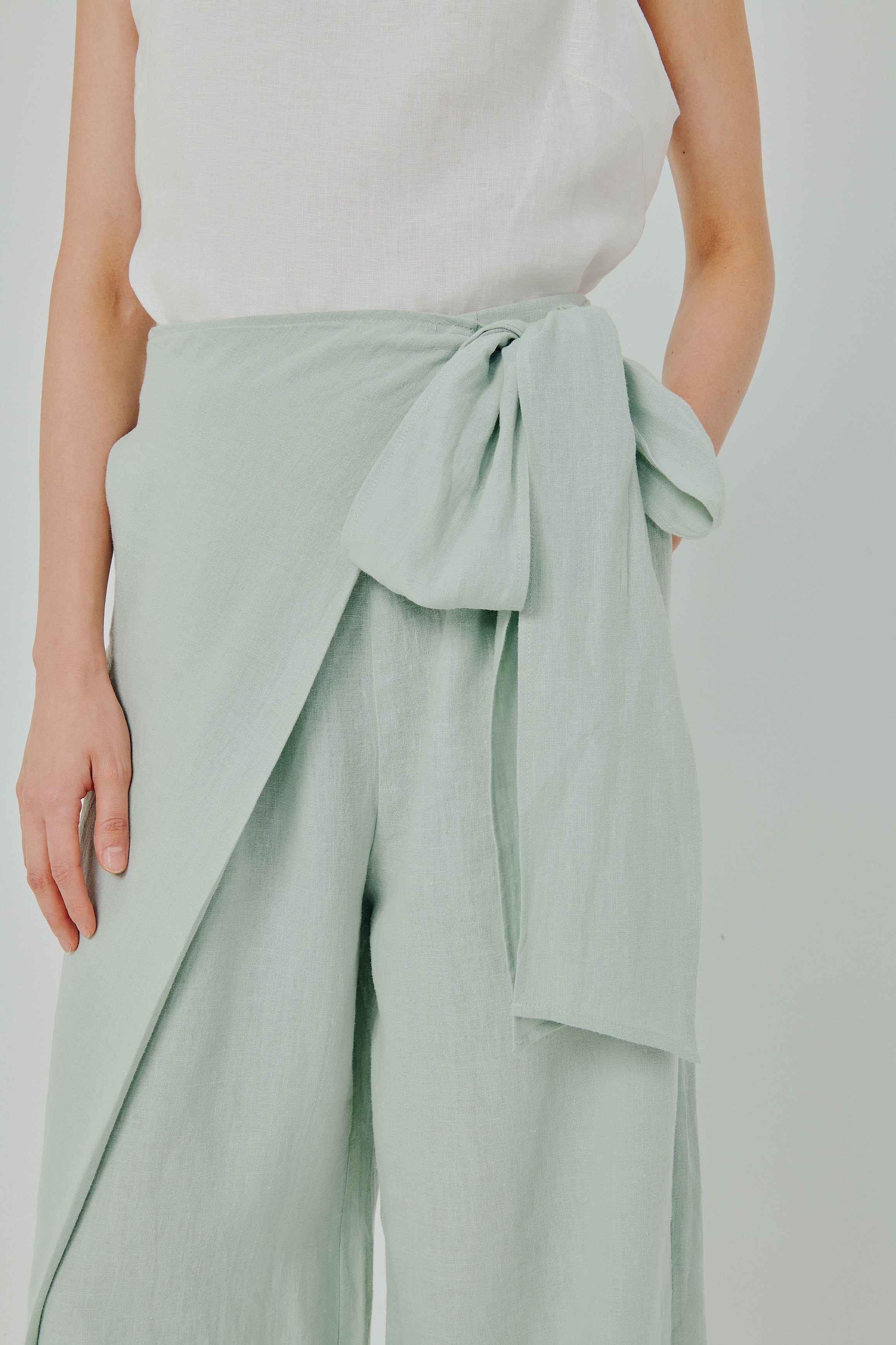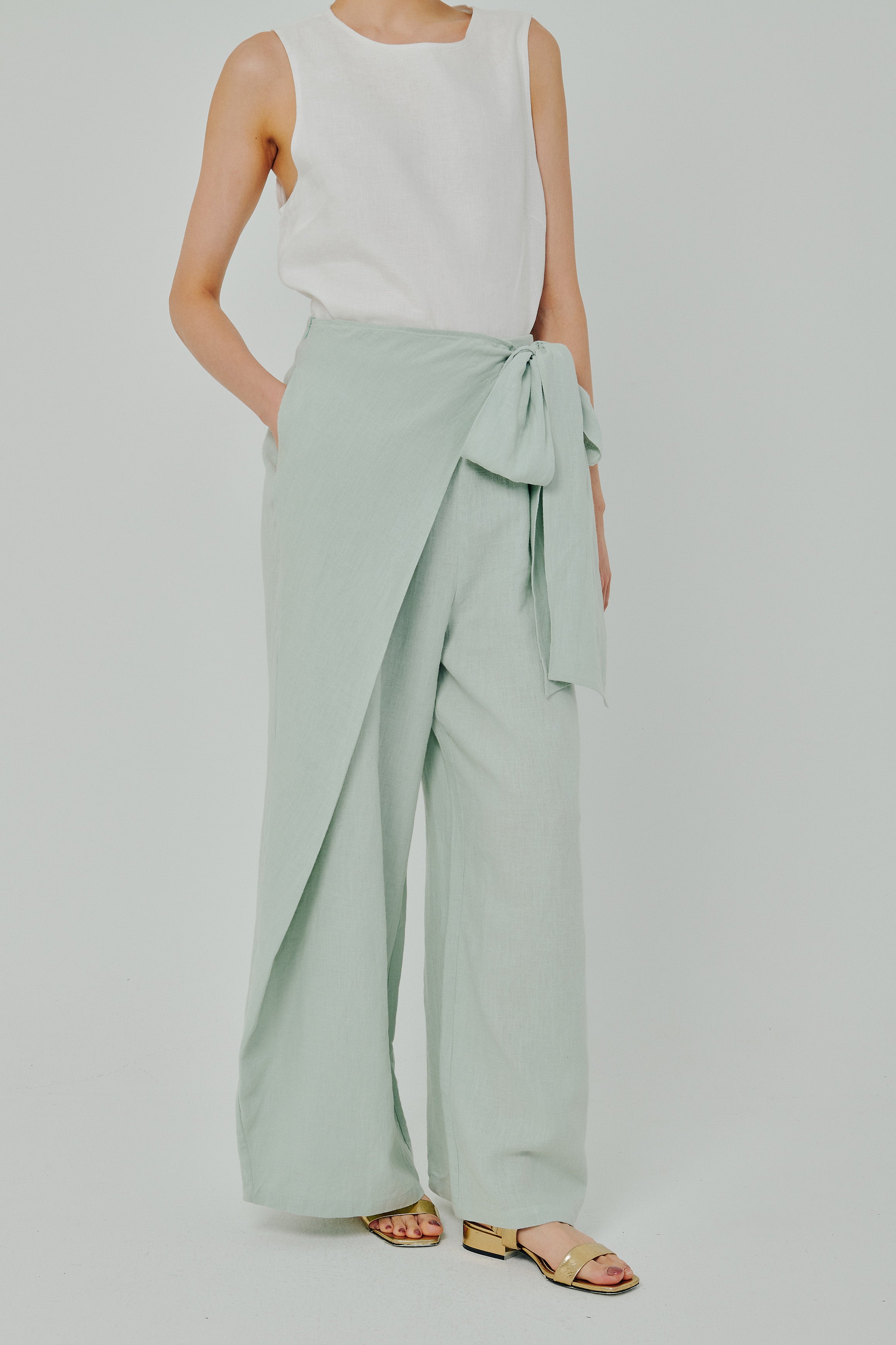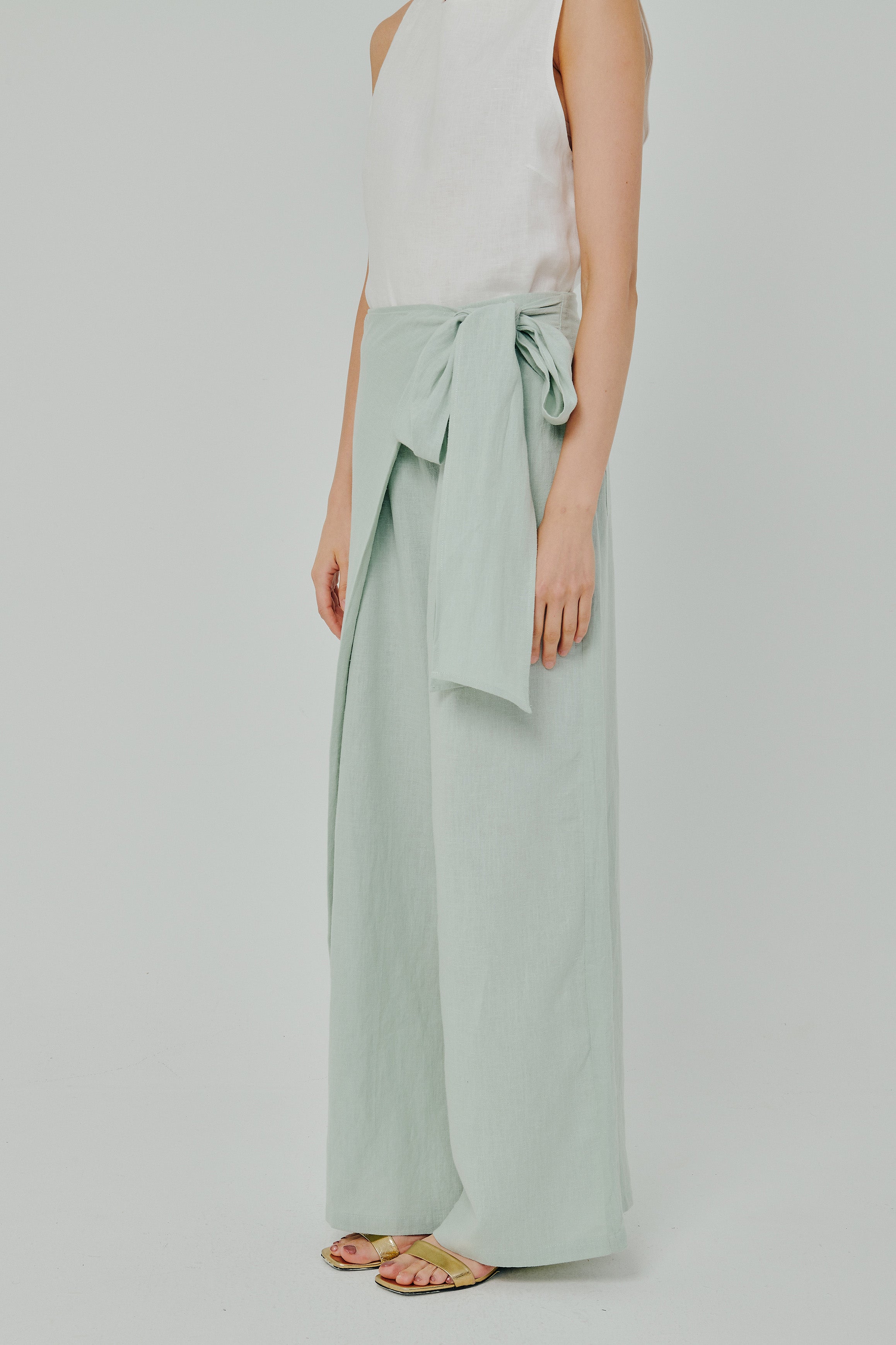 Wide-leg trousers, with a side zip and tie closure. Rendered in linen, and lined in cotton.