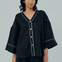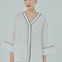 An oversized fit with an open V-neck and pointed collar, complemented by drop shoulders for an easygoing silhouette. Rendered in linen.