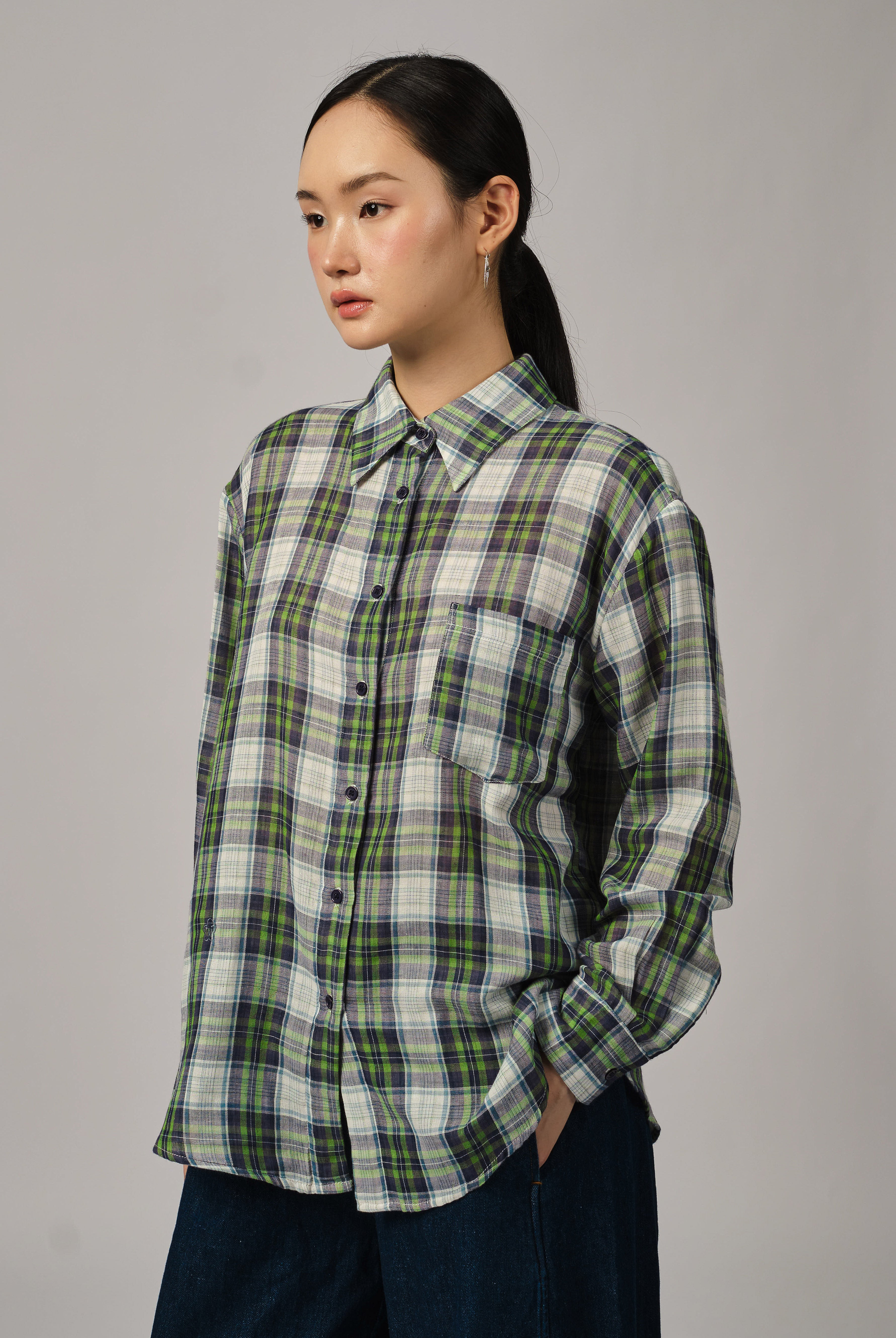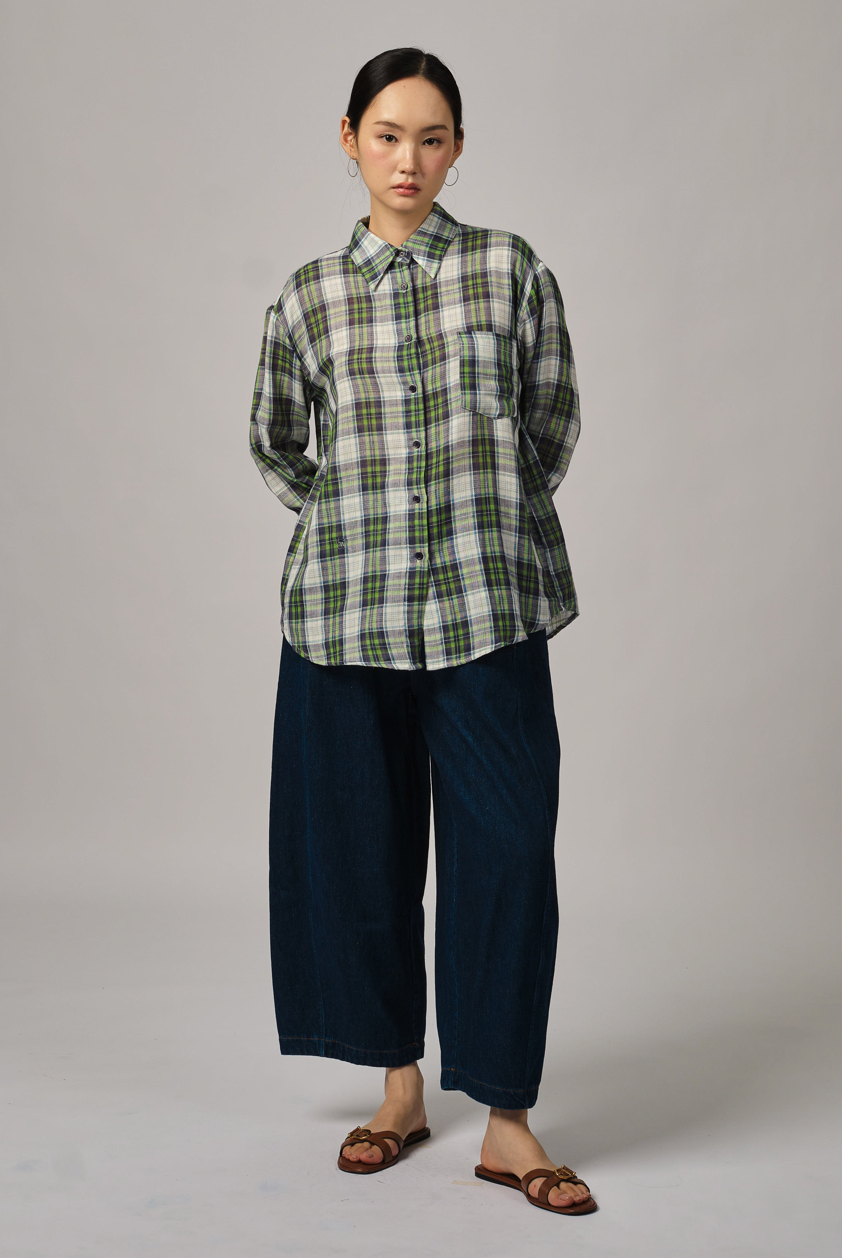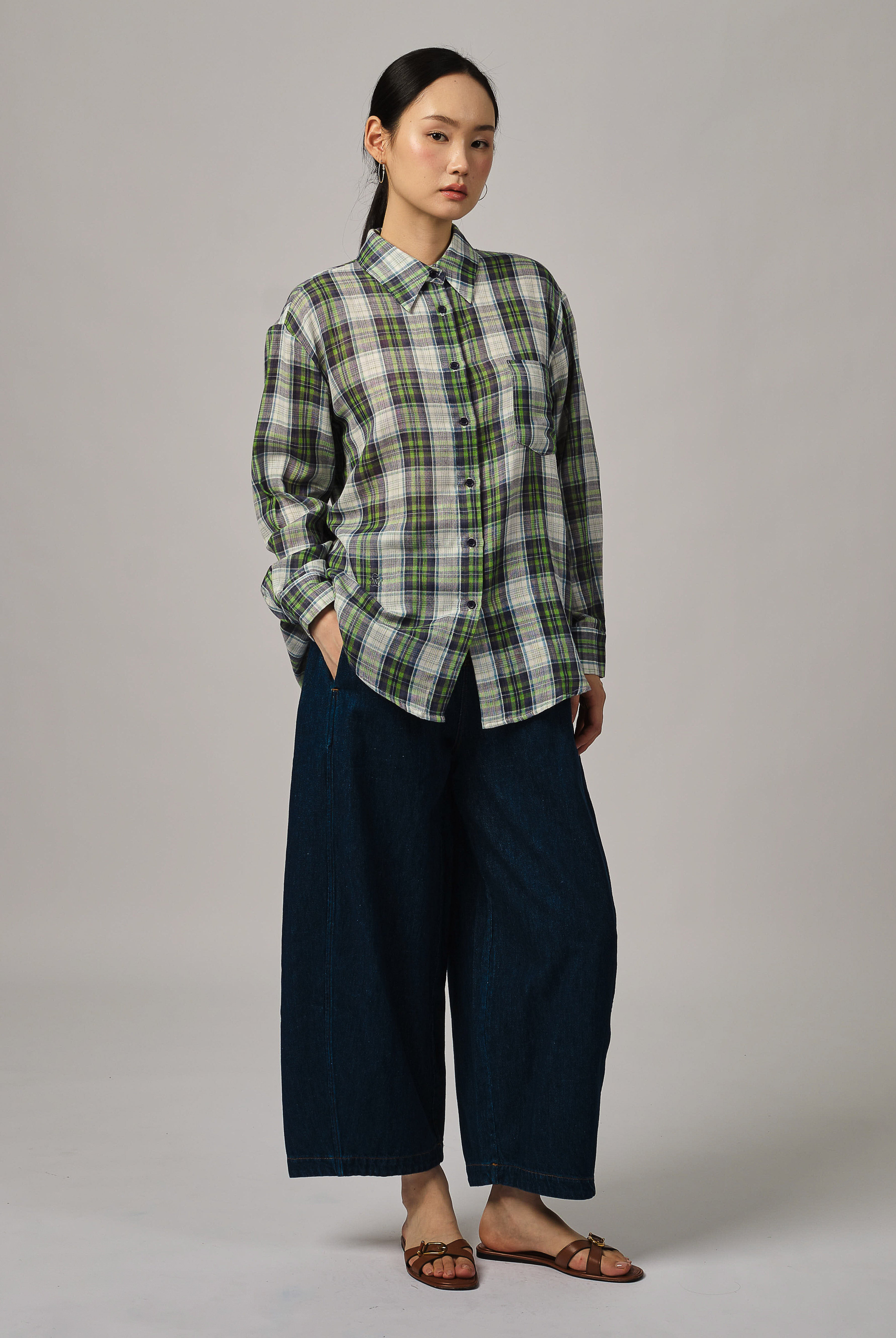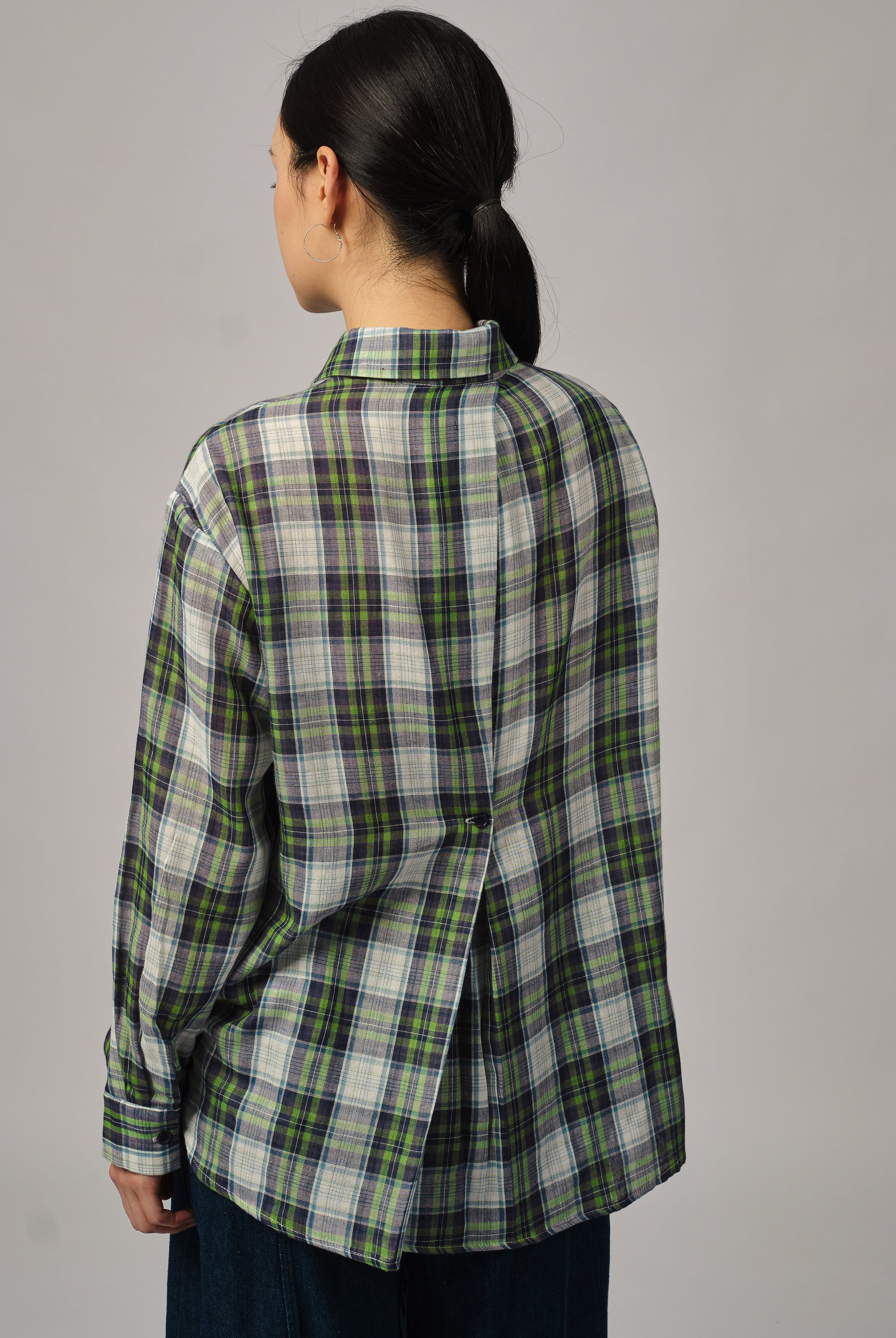 An oversized fit rendered in cotton, with a button-back design and chest pocket.