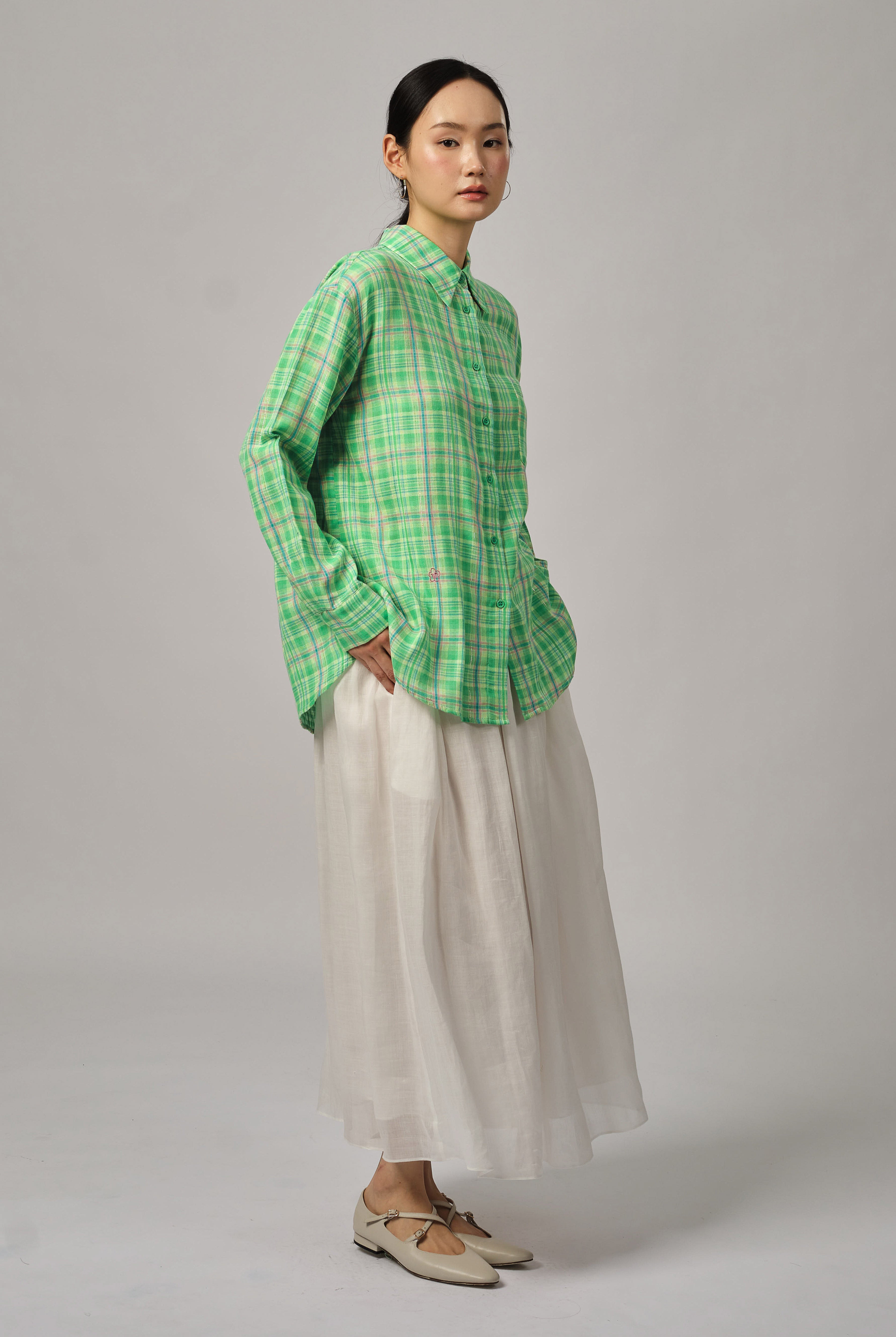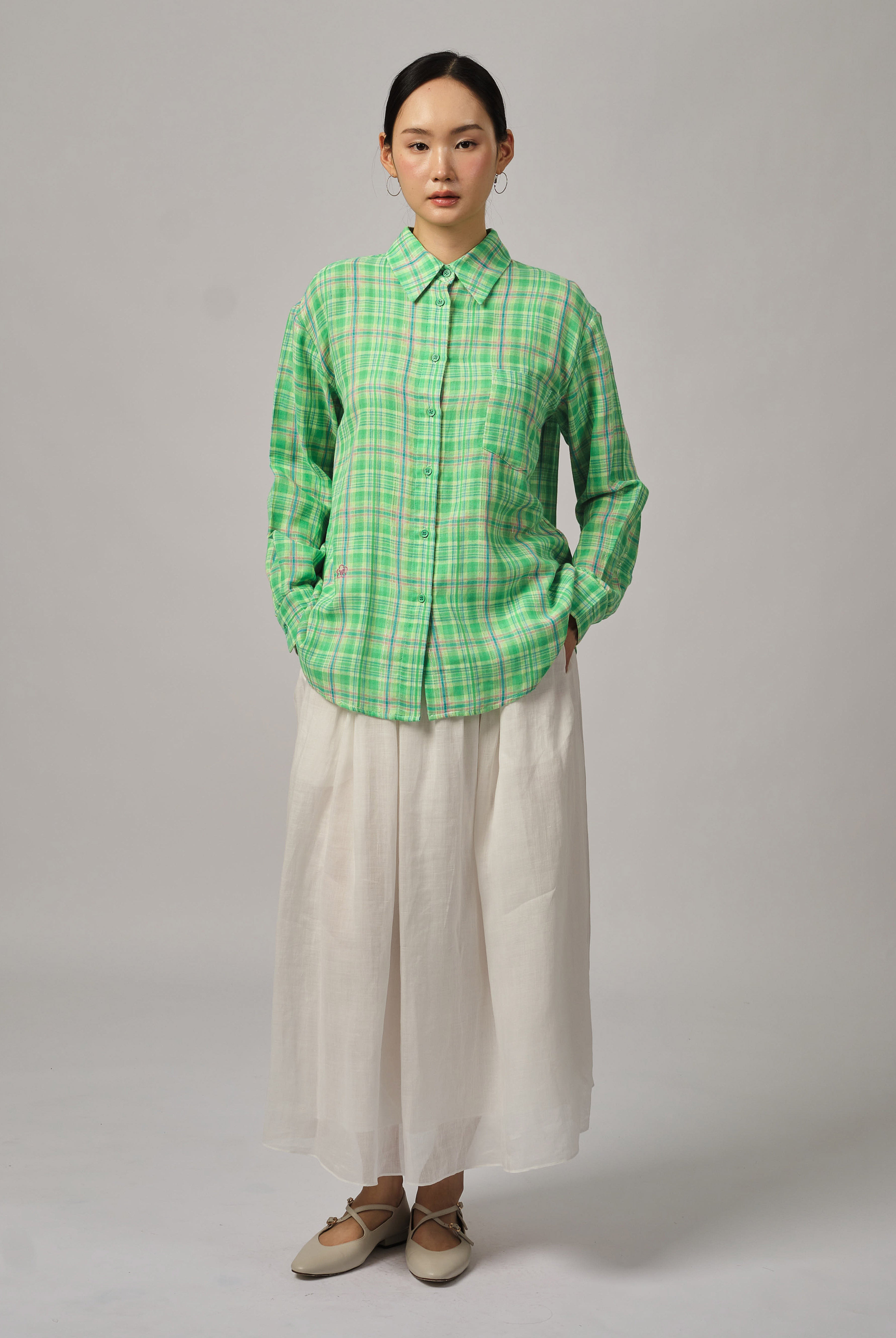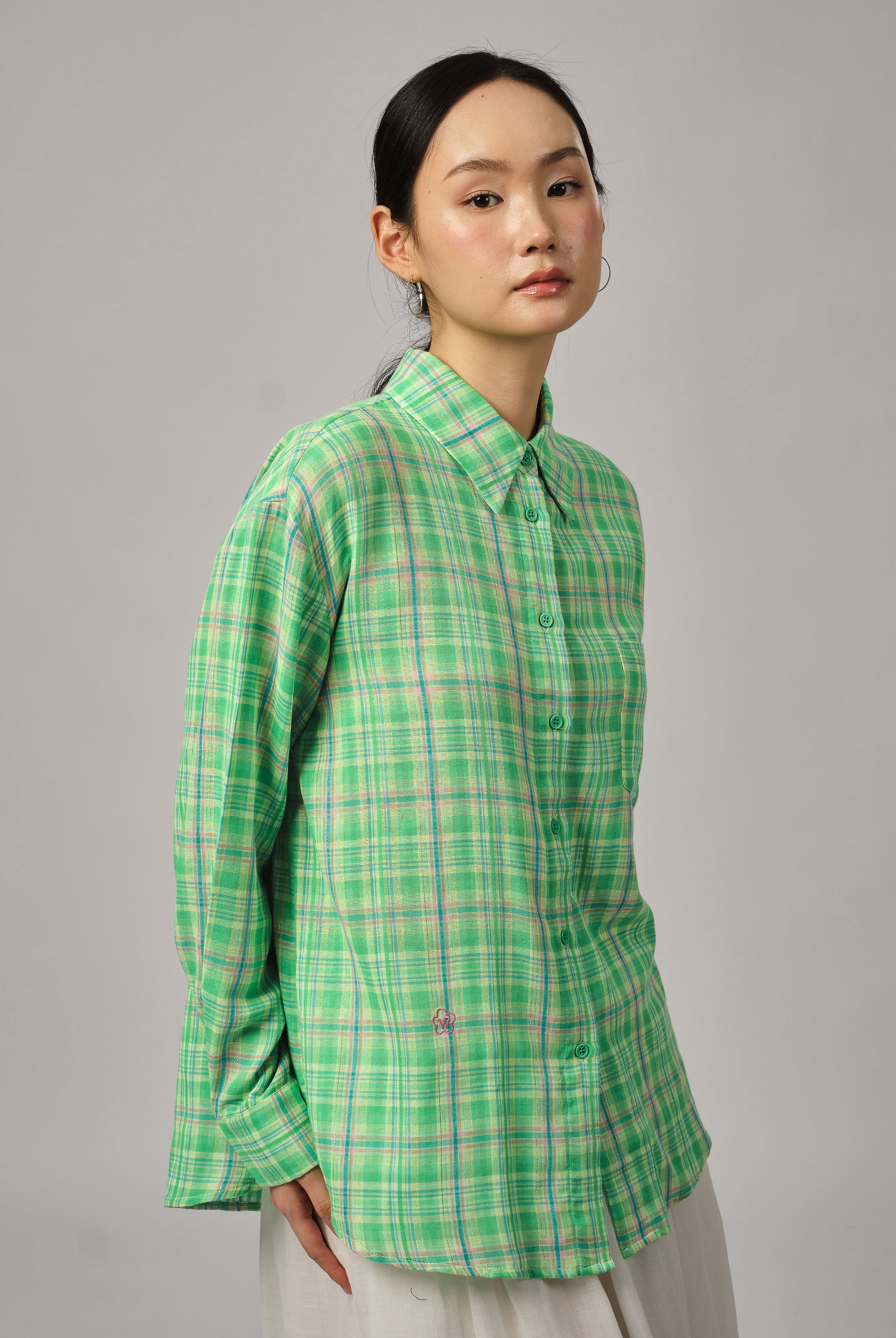 An oversized fit rendered in cotton, with a button-back design and chest pocket.