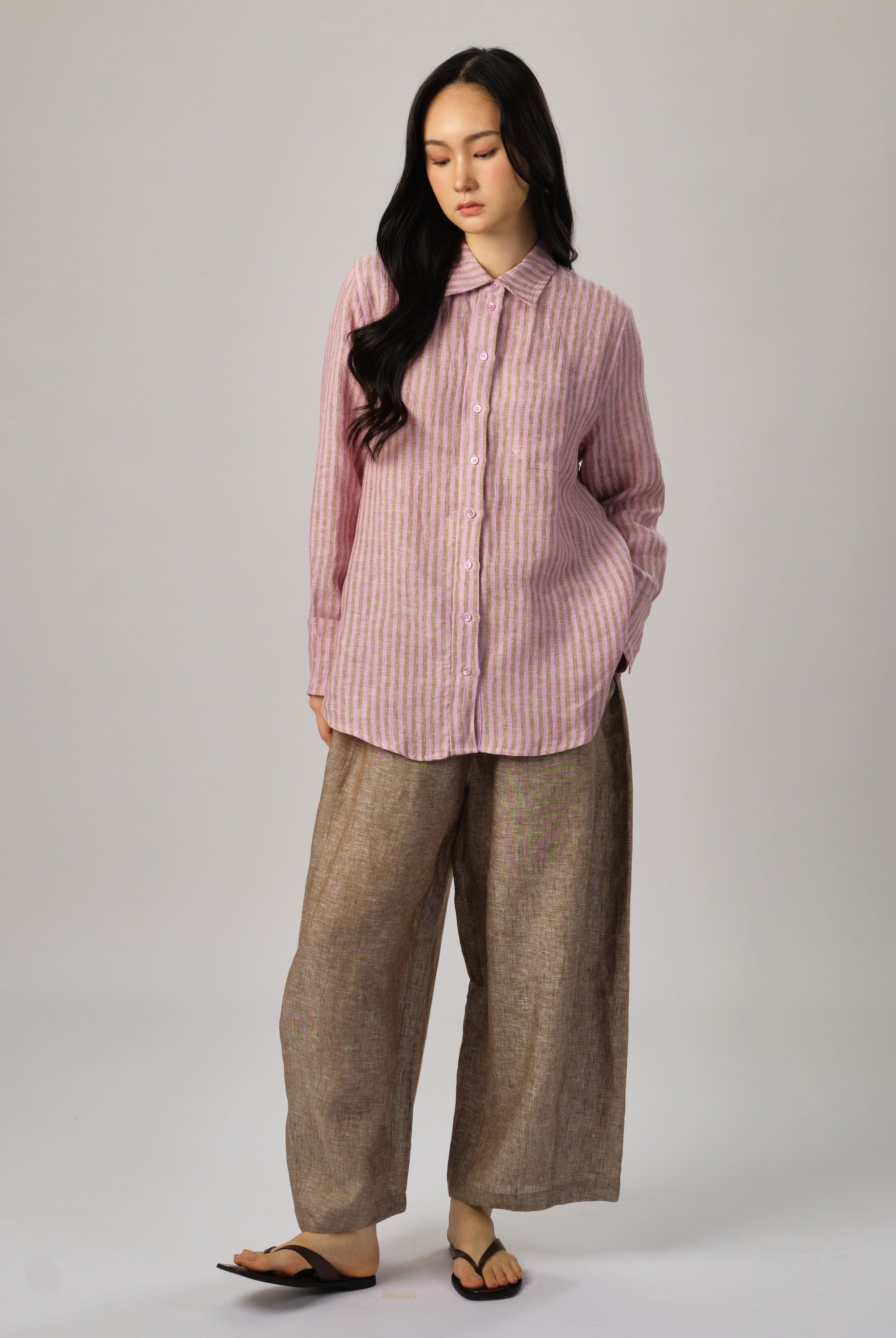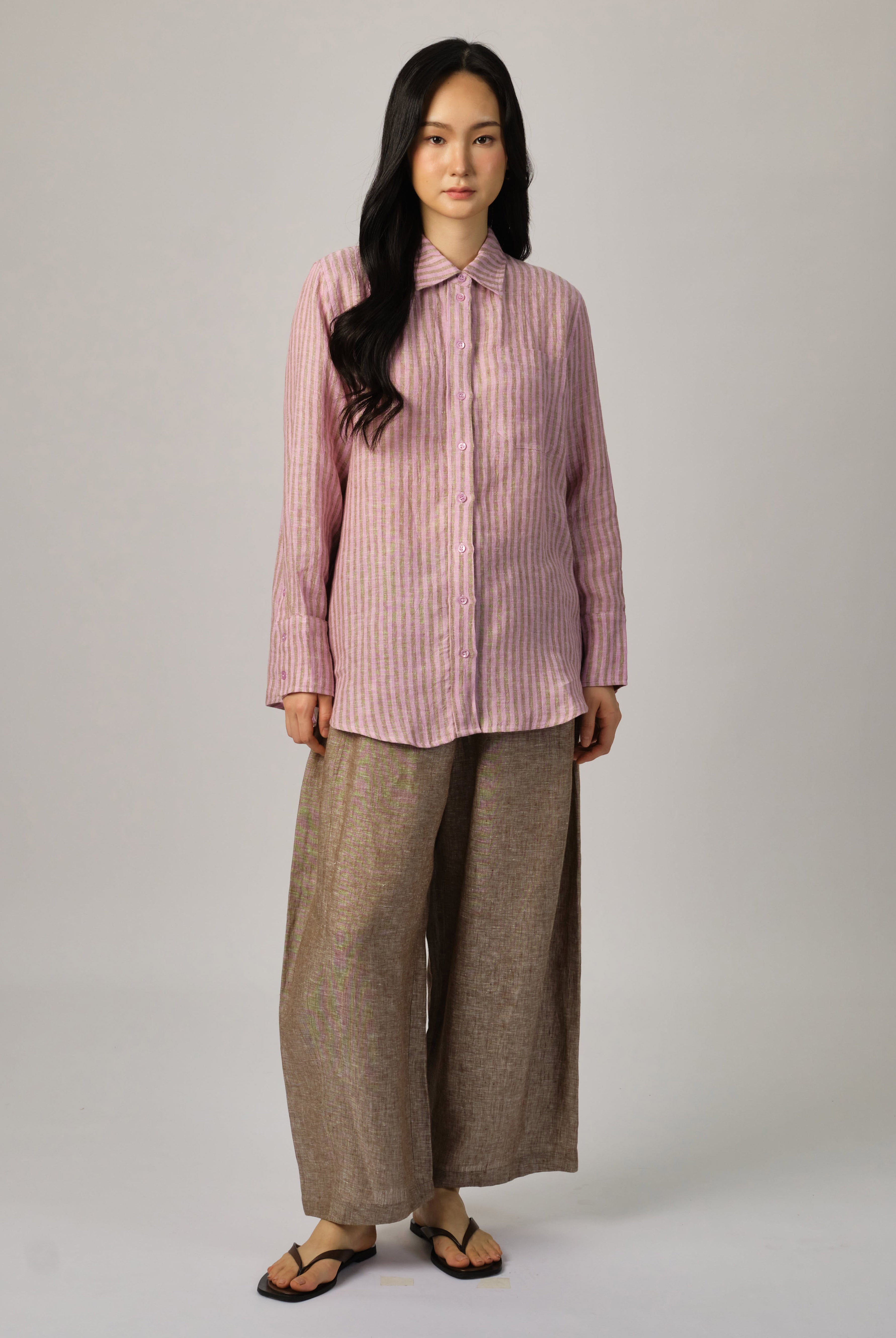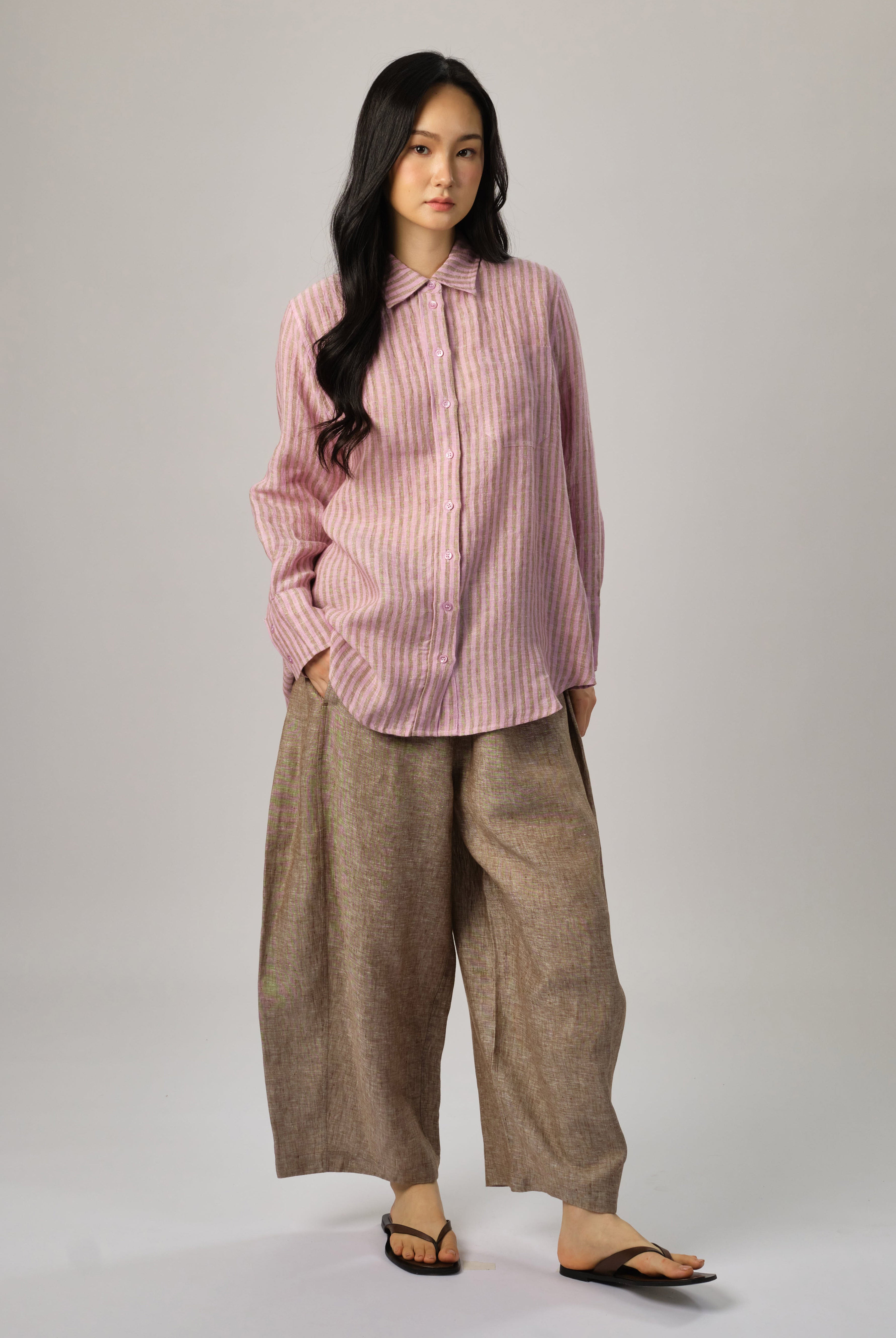 Due to linen’s natural charm, there will be variations in the texture of the fabric. Linen garments may experience slight shrinkage (3%-4%) after the first wash