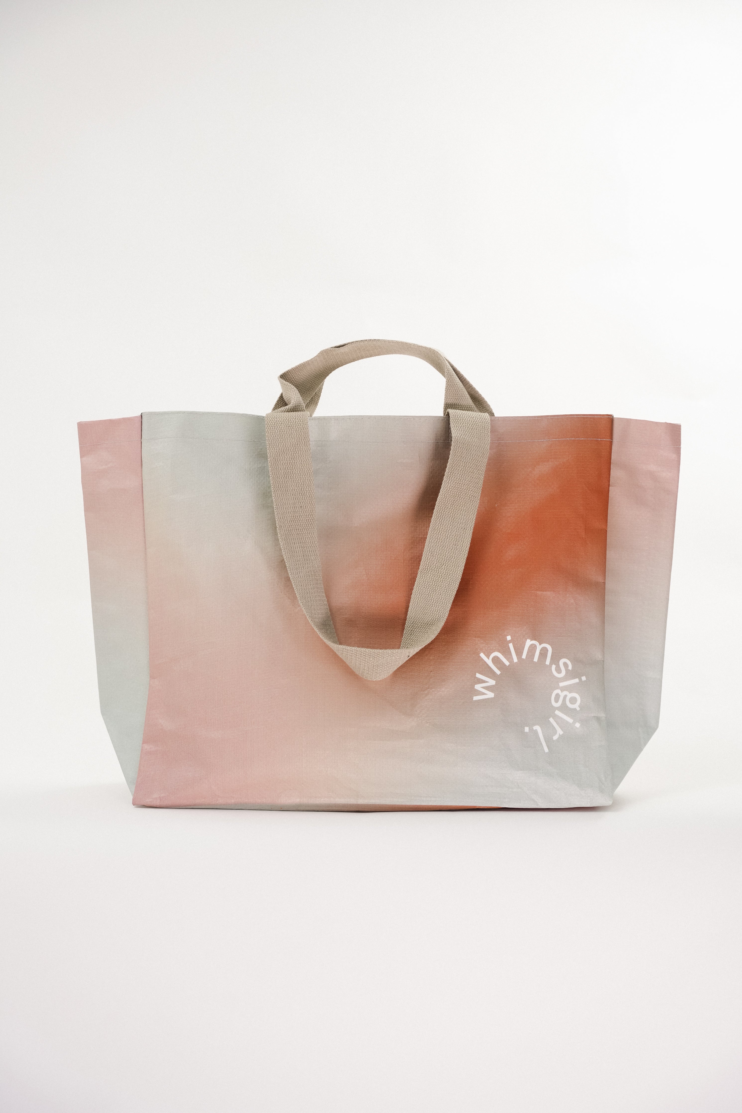 The Pick- Me-Up Tote Bags are made of woven polypropylene, a durable material suitable for everyday use. It features a cool, rectangular shape with modern details of contrasting logo inside and out and treated with full matte lamination.