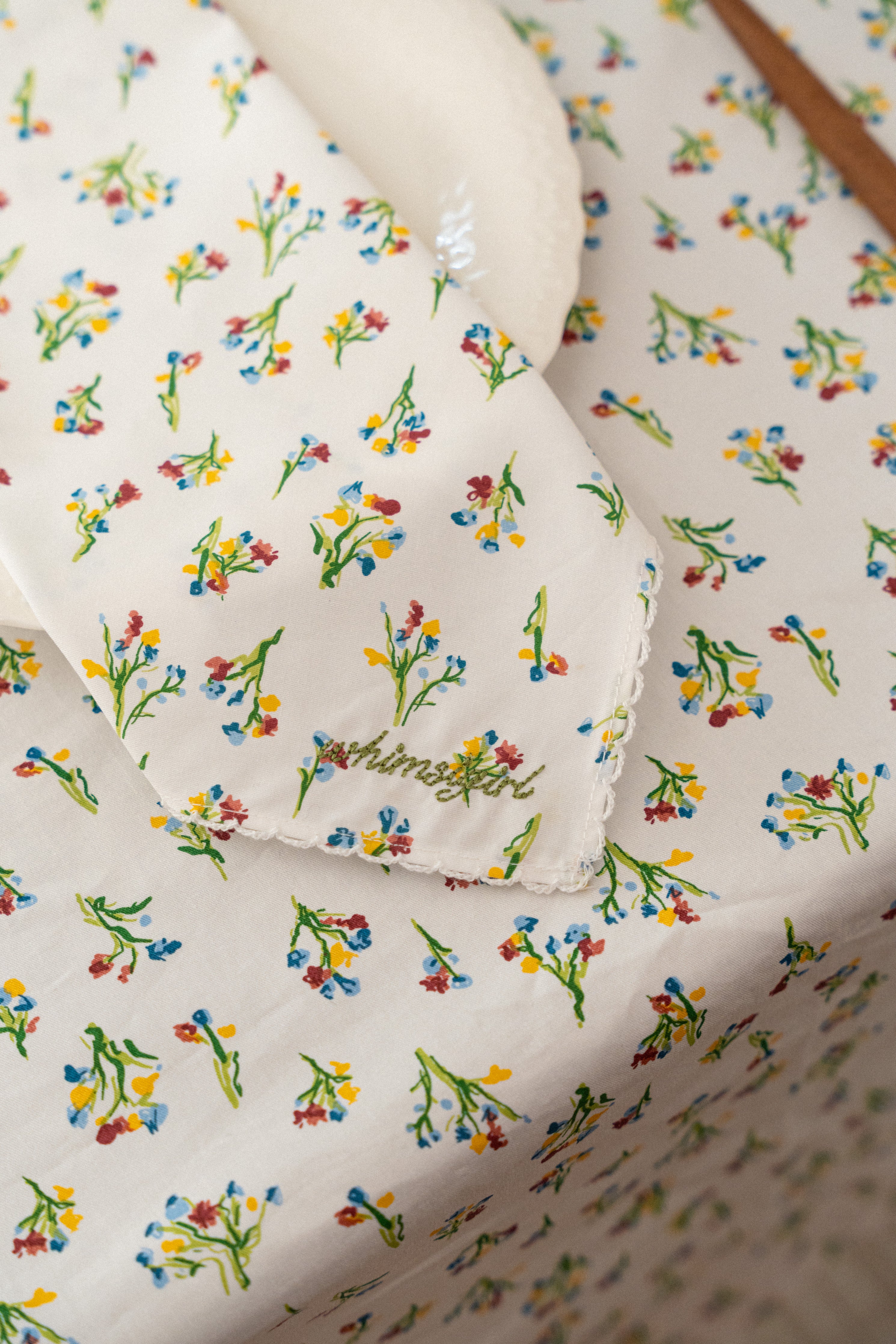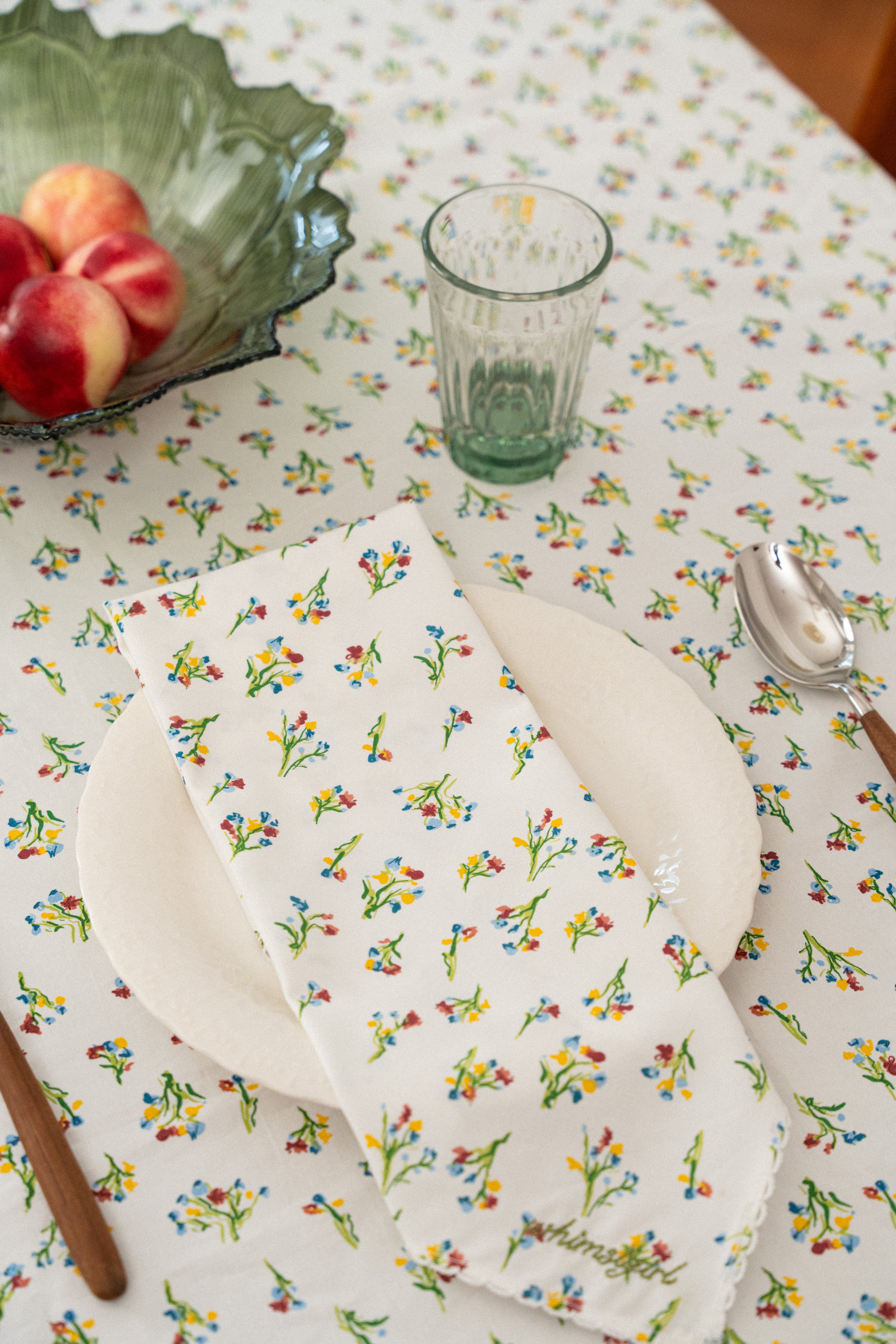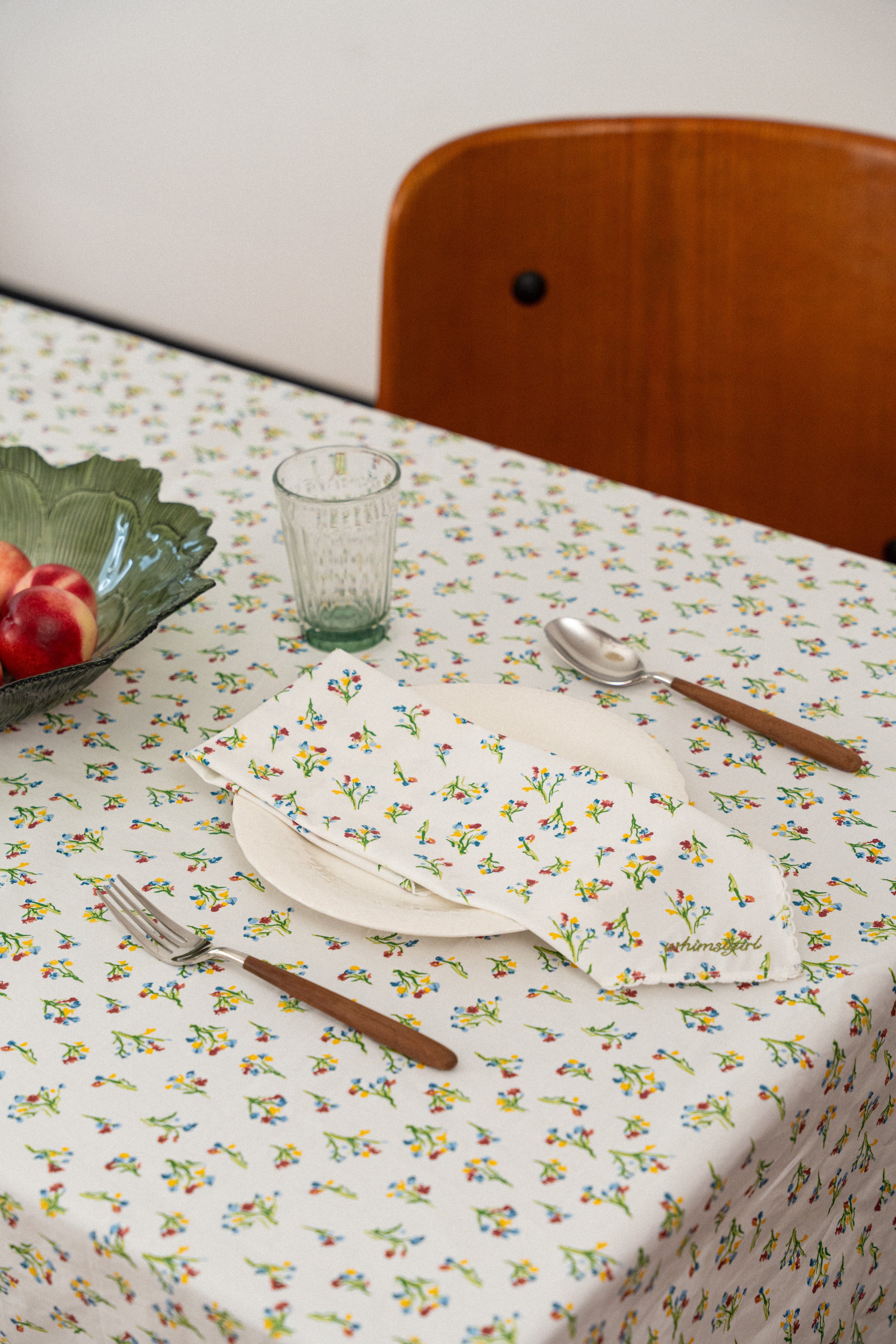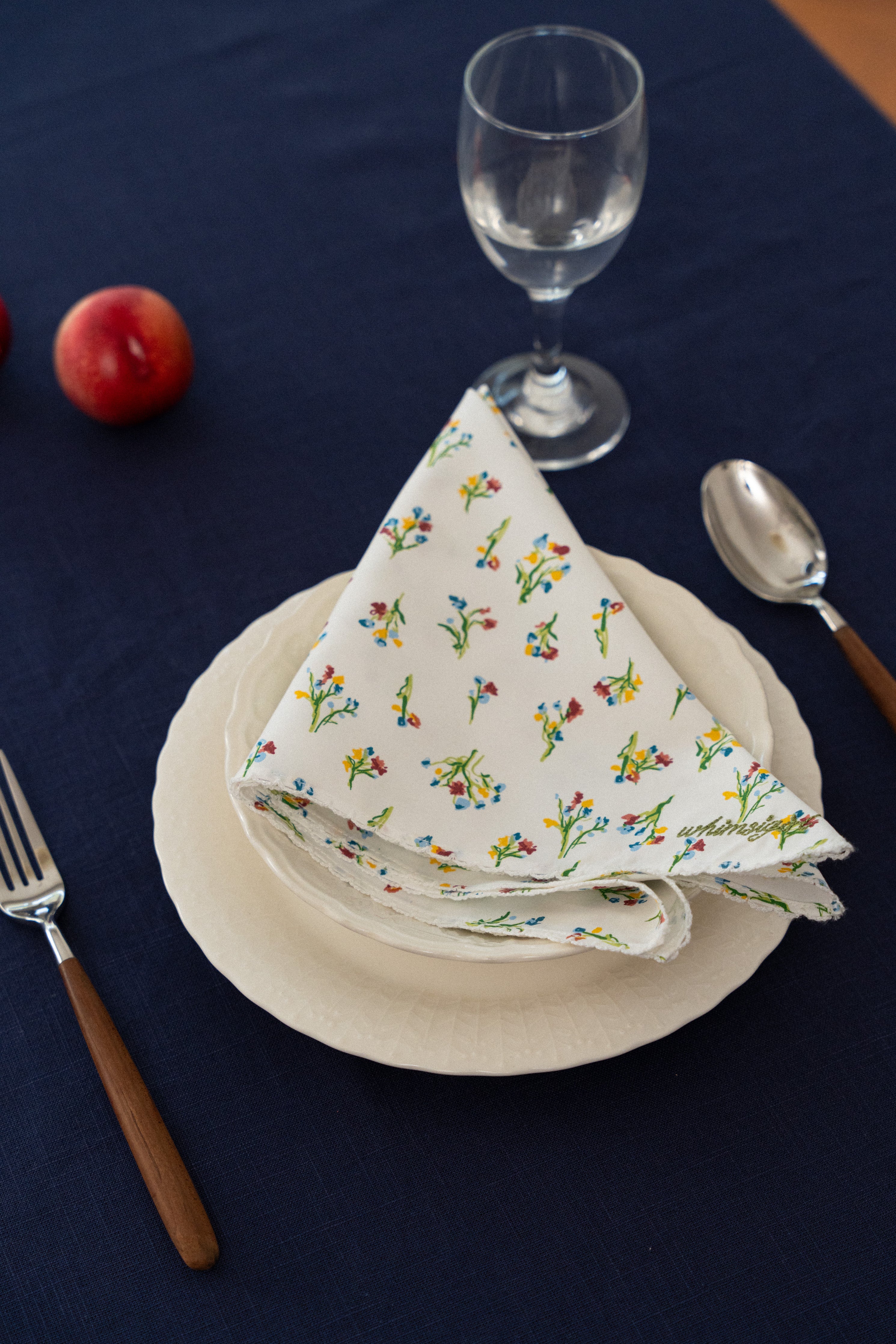 Square shaped napkins that feature a Whimsigirl original floral print and signature trimmings. Rendered in cotton, and finished with our embroidered logo in the corner. Sold in packs of two.