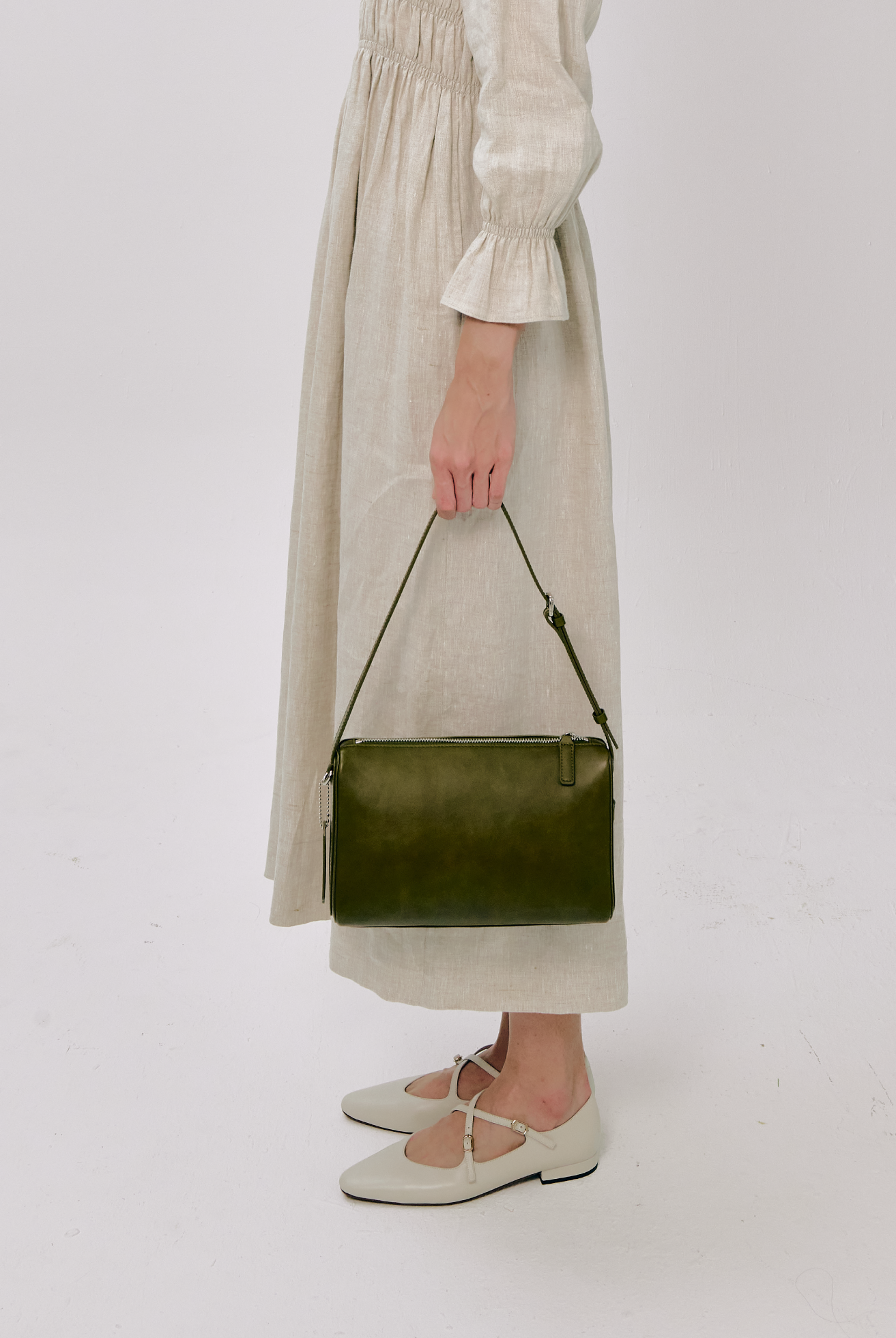 A shoulder bag, with adjustable straps, crafted from leather. Informed by the clean lines of the mid-century modern design philosophy. Built for everyday use, meant to get better with time. The leather’s unique character may show through with natural variations in shade and texture—embrace it.