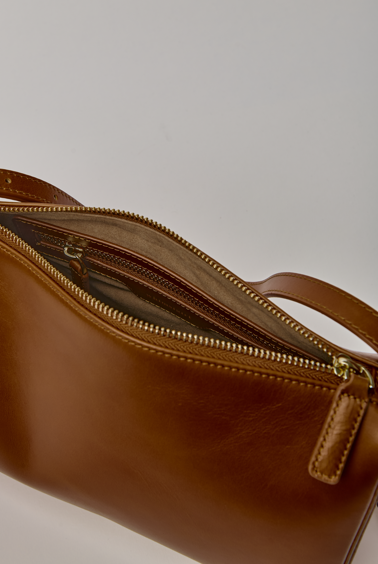 A shoulder bag, with adjustable straps, crafted from leather. Informed by the clean lines of the mid-century modern design philosophy. Built for everyday use, meant to get better with time. The leather’s unique character may show through with natural variations in shade and texture—embrace it.