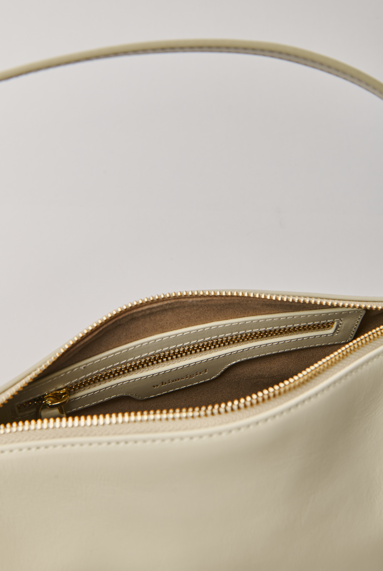 Interior zip pocket with a Whimsigirl debossed Gold foil logo
